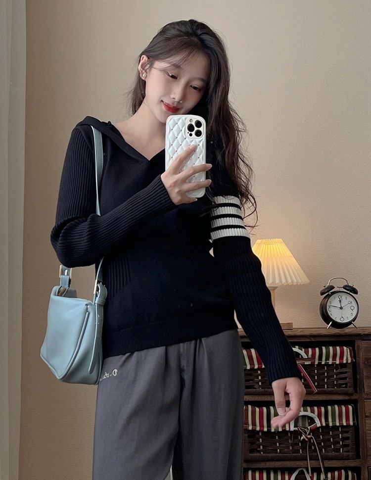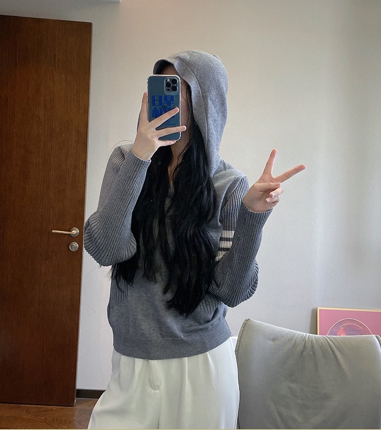 마이어 베이직 심플 후드 니트 - 퀄리티 좋아요