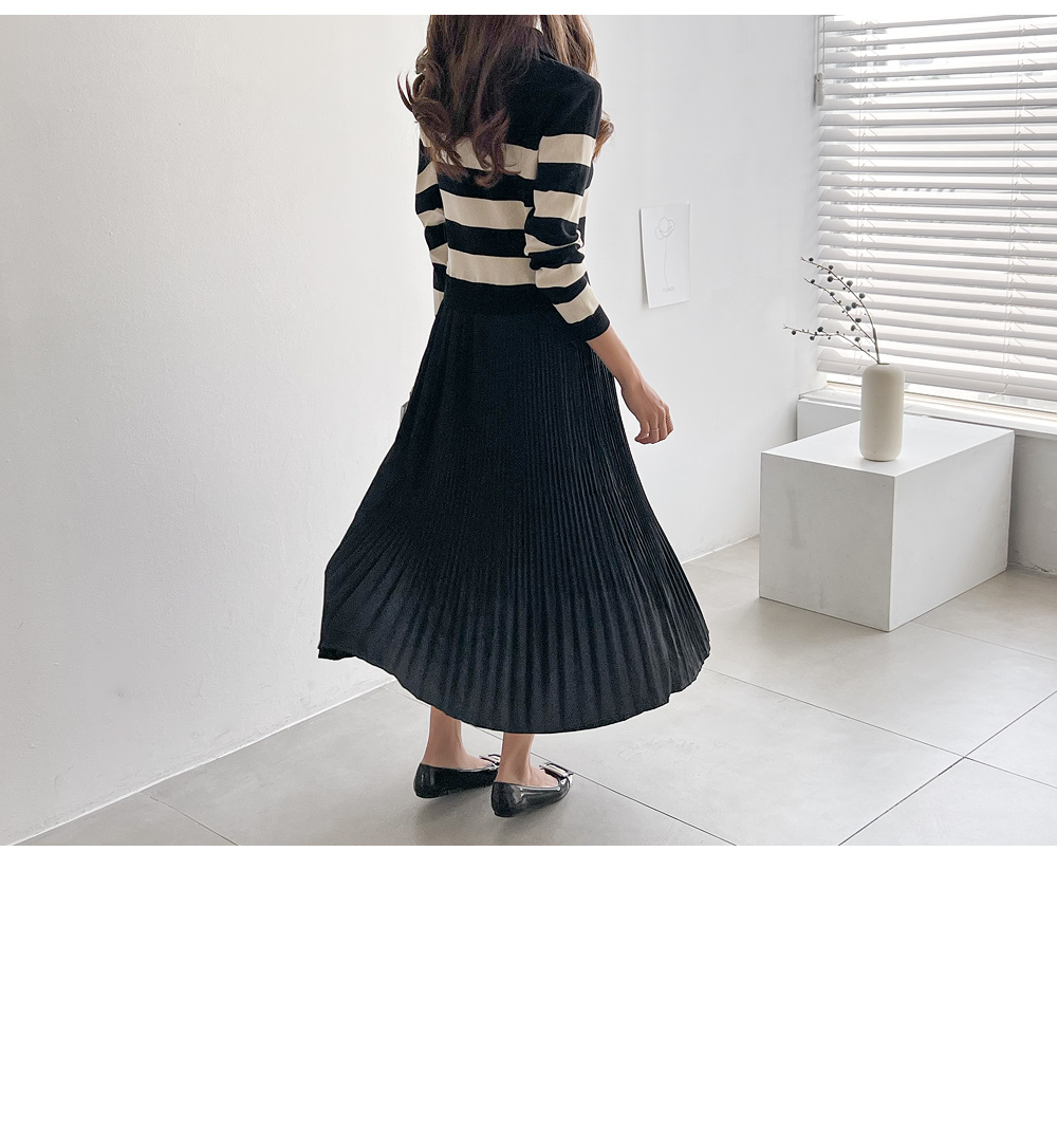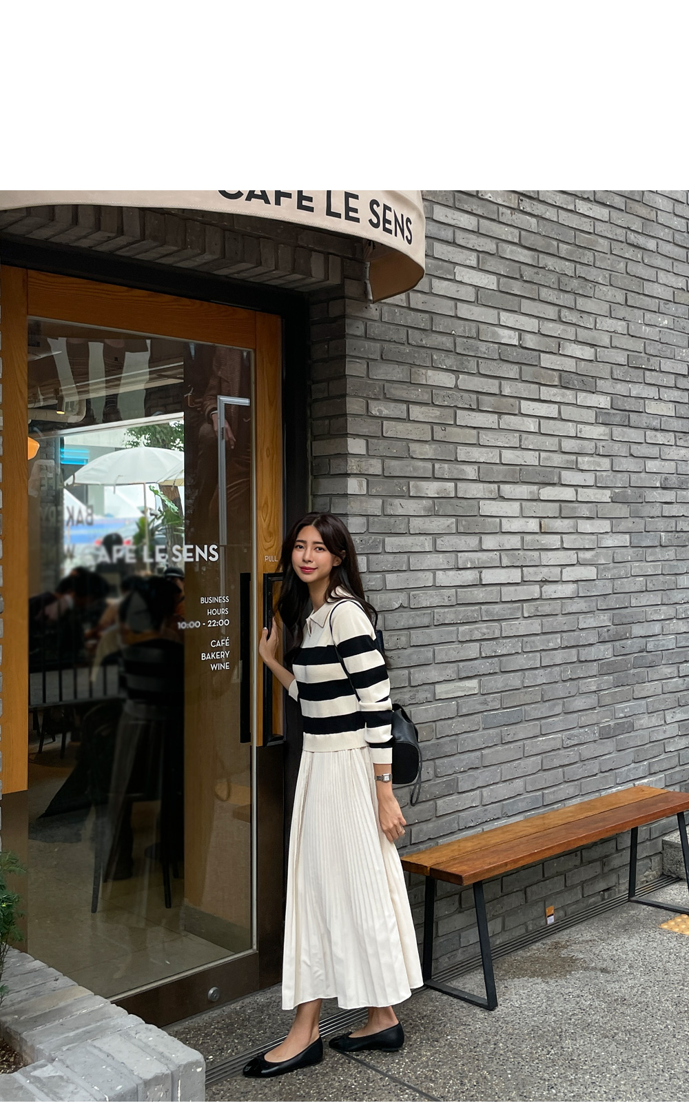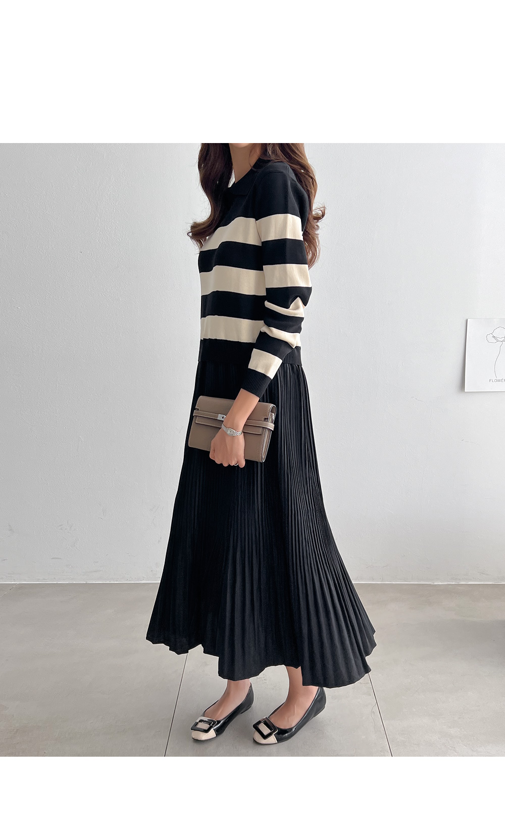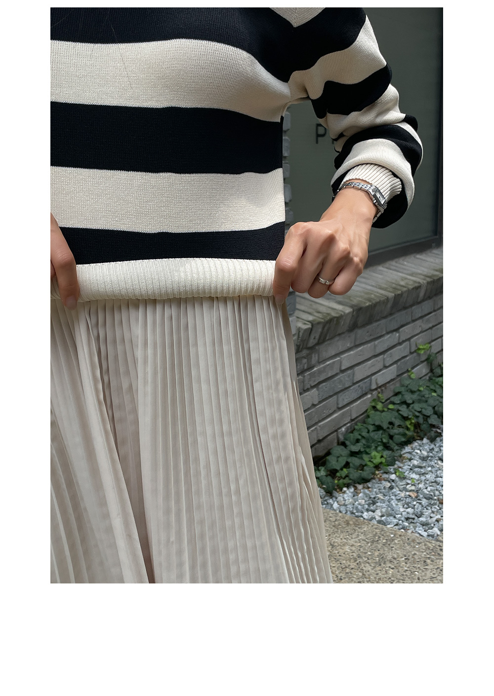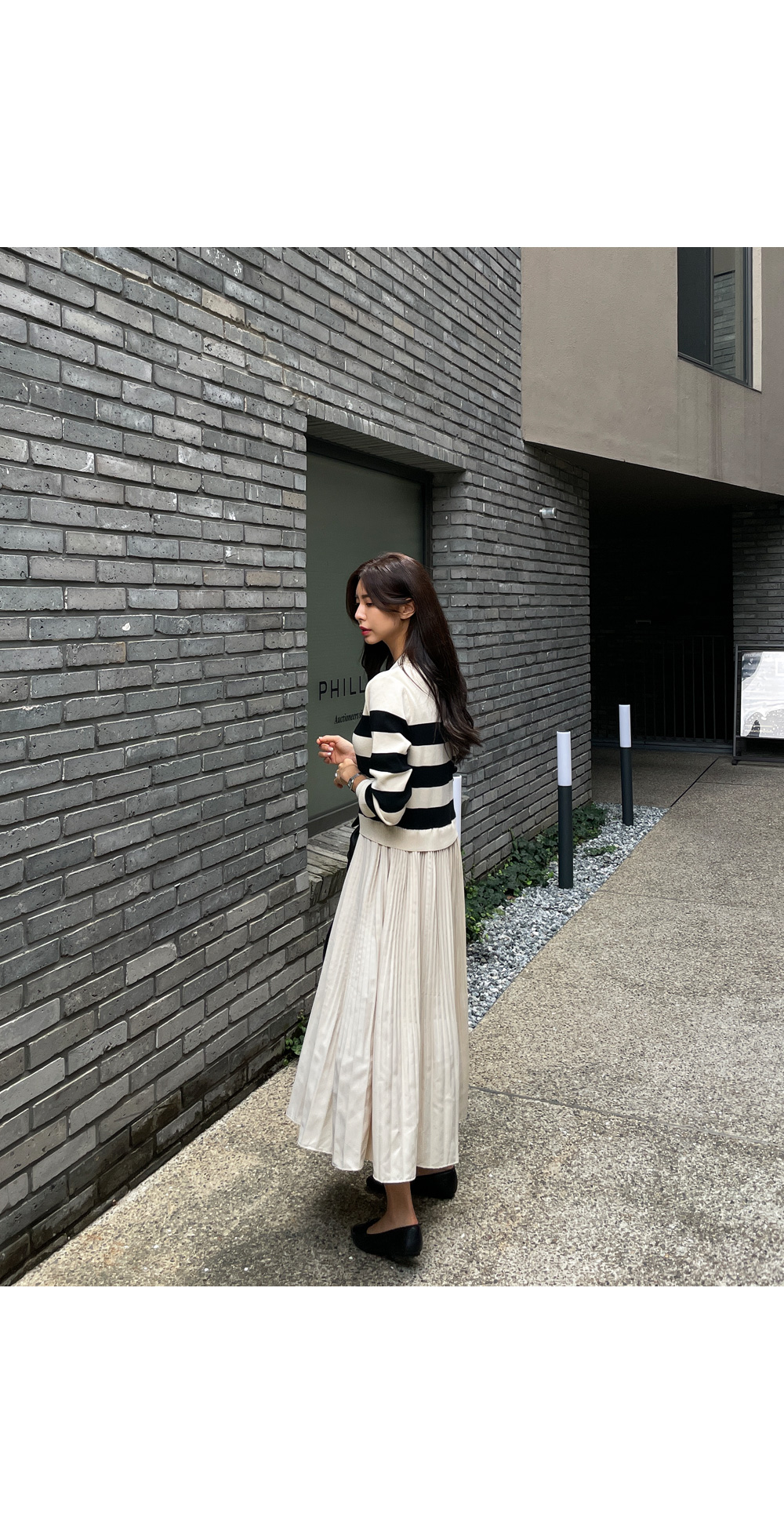 스트라이프 니트와 플리츠 롱 스커트를 입은듯~