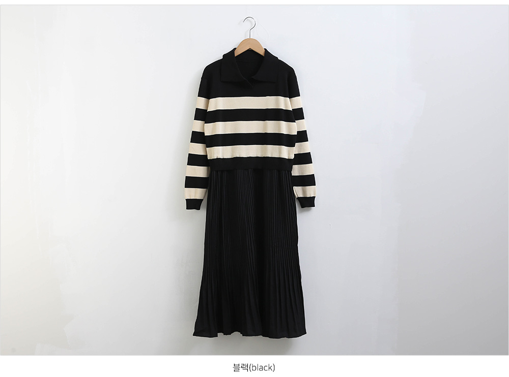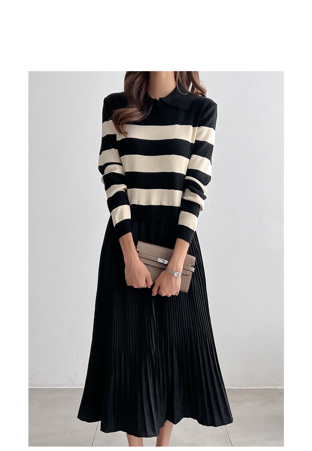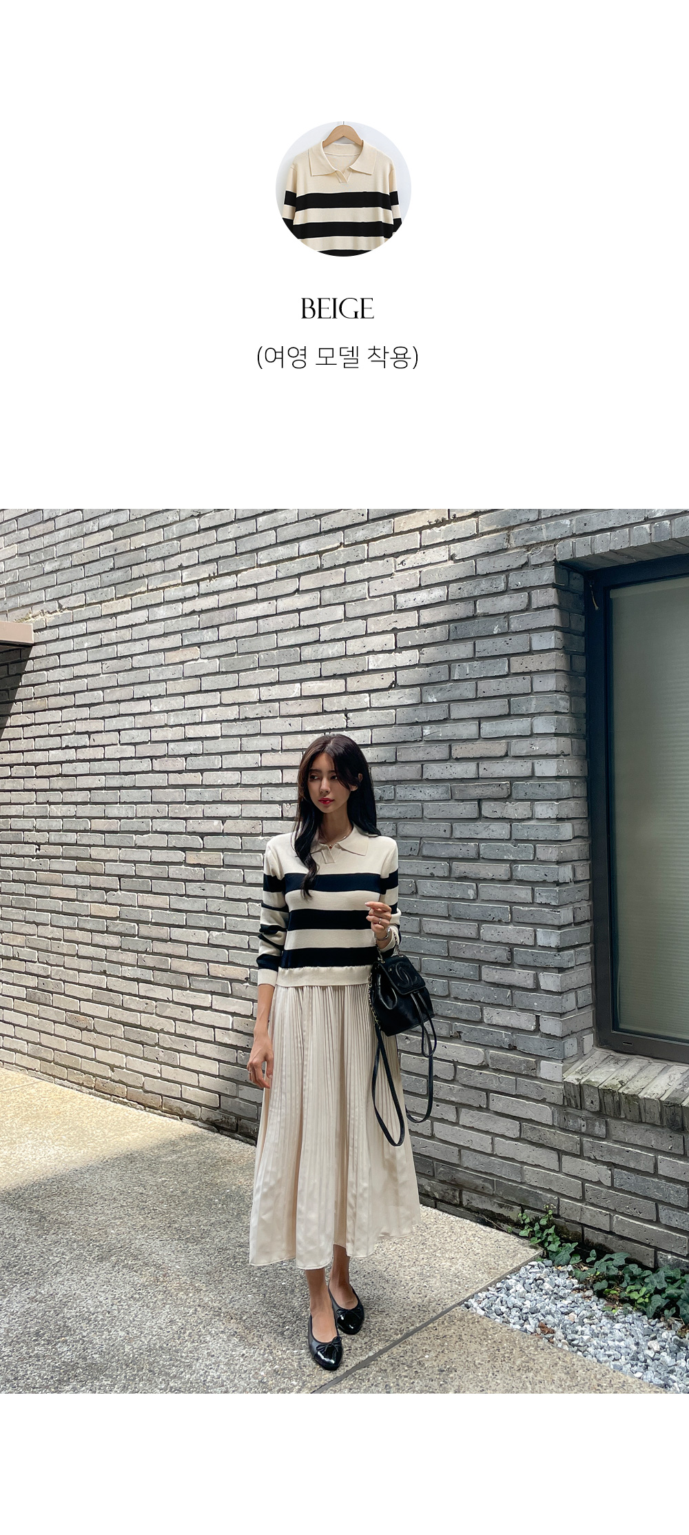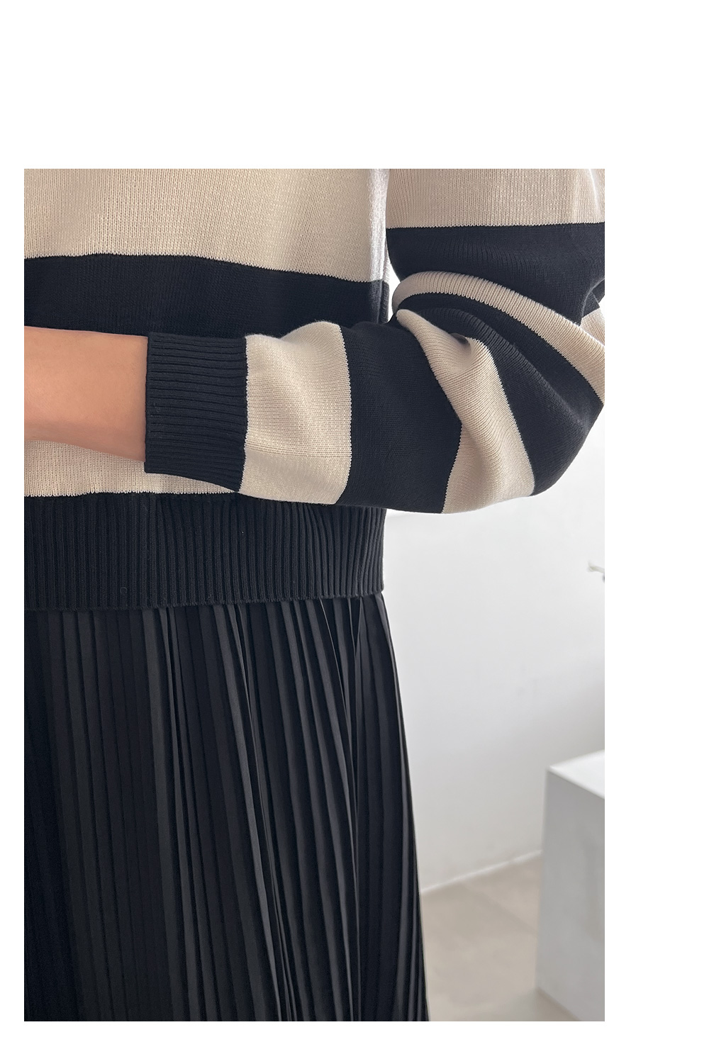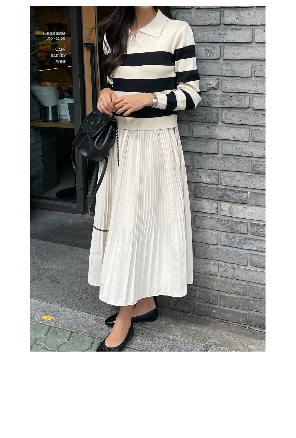 스트라이프 니트와 플리츠 롱 스커트를 입은듯~