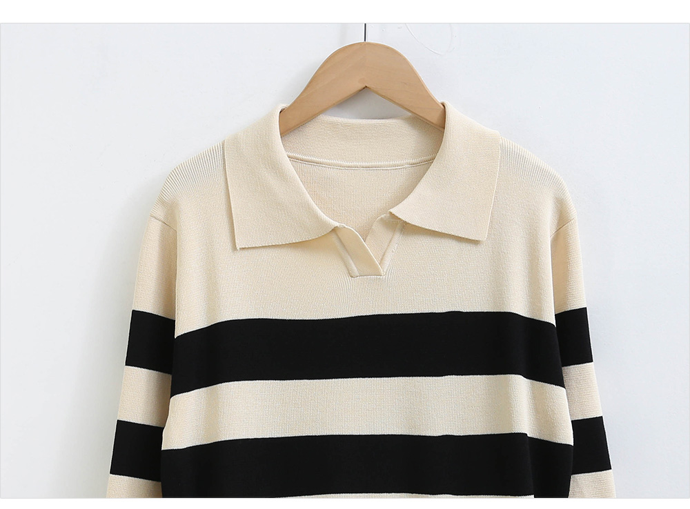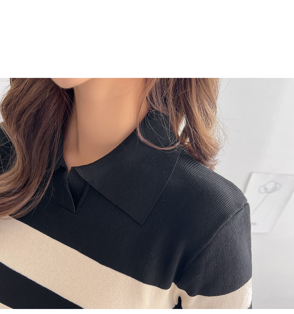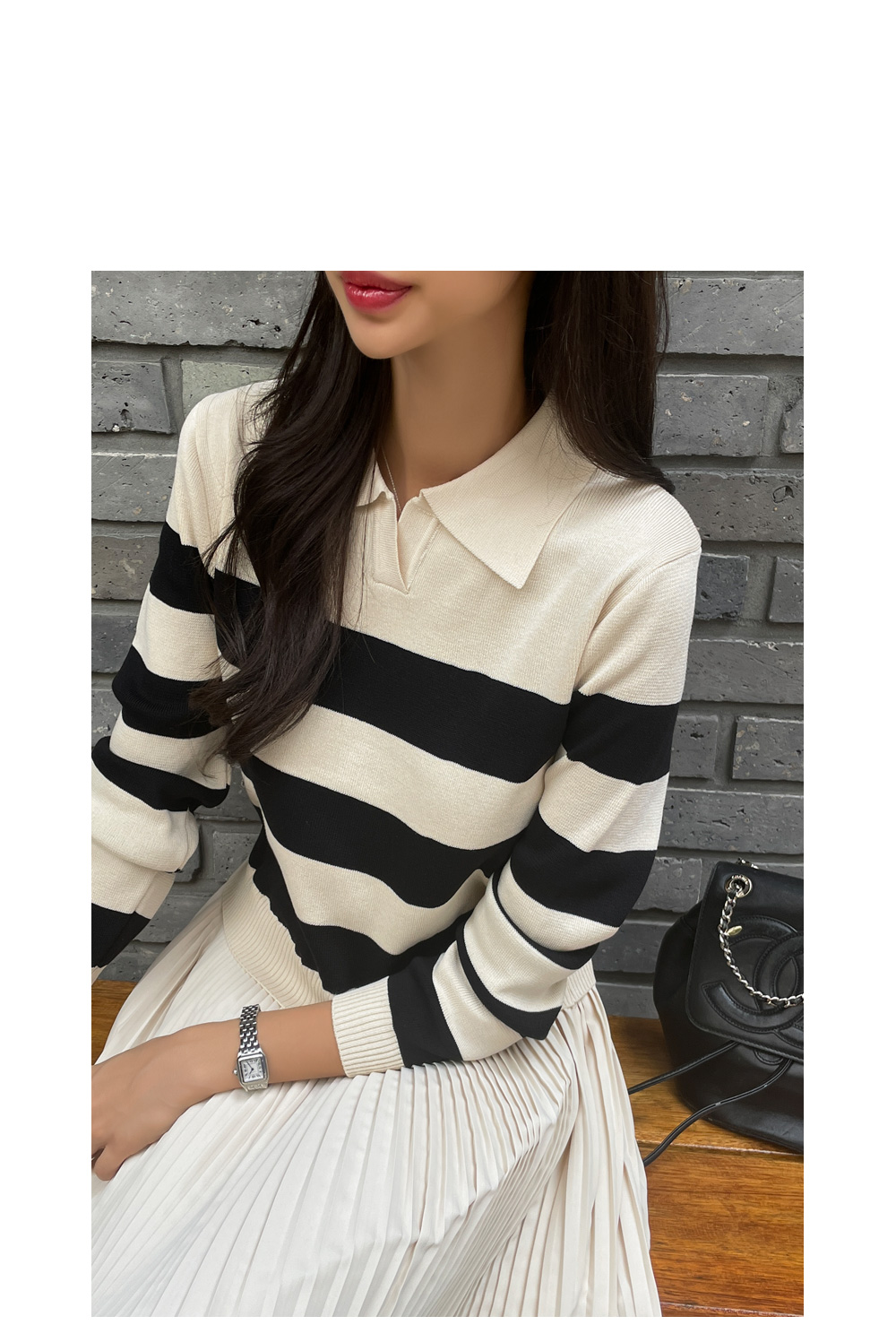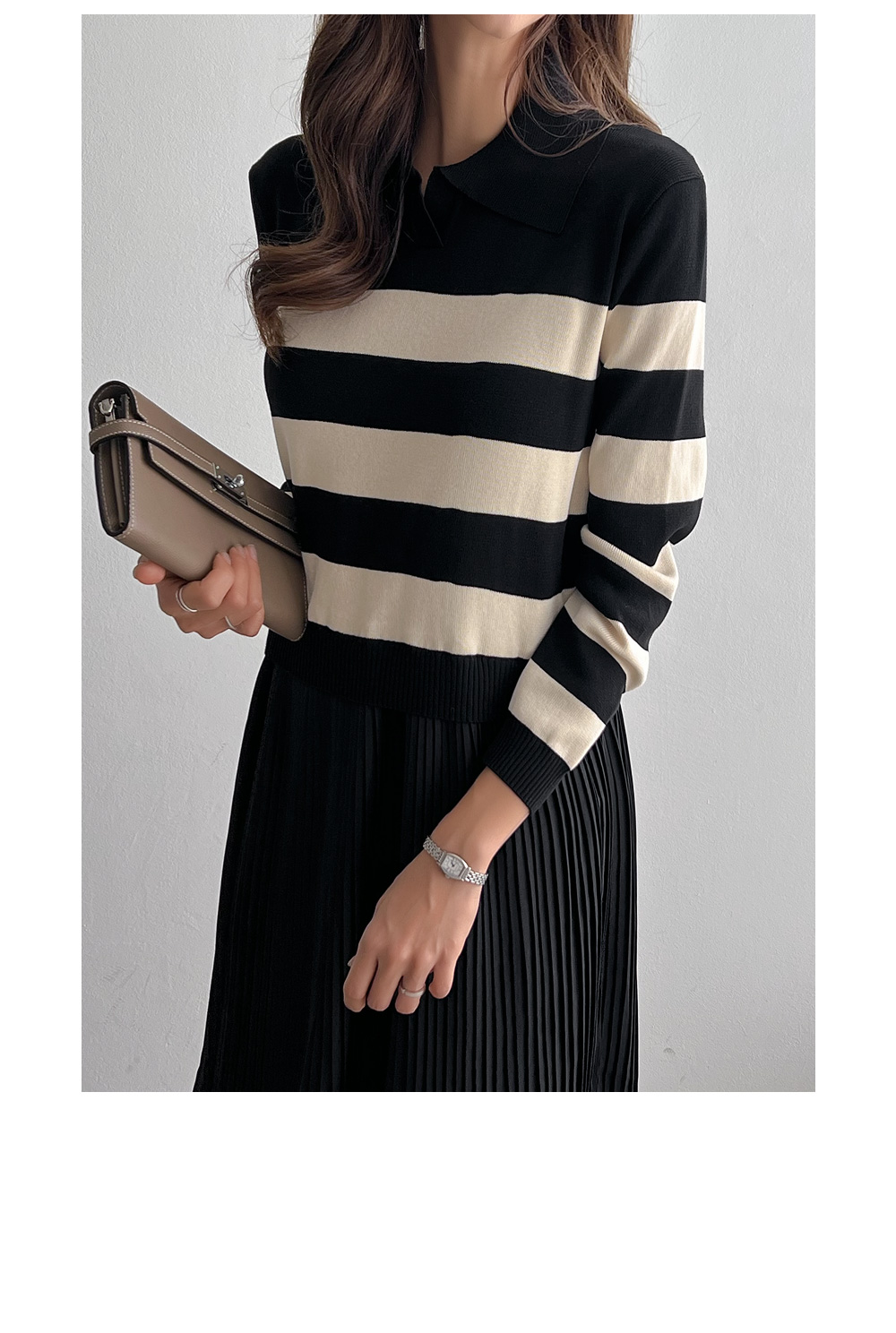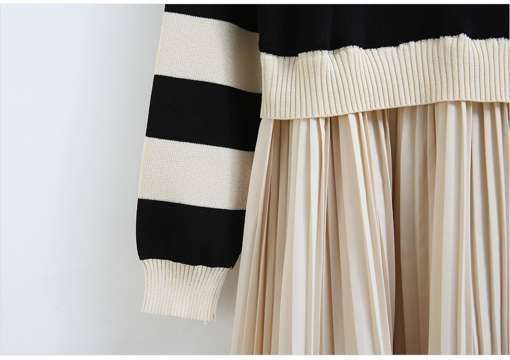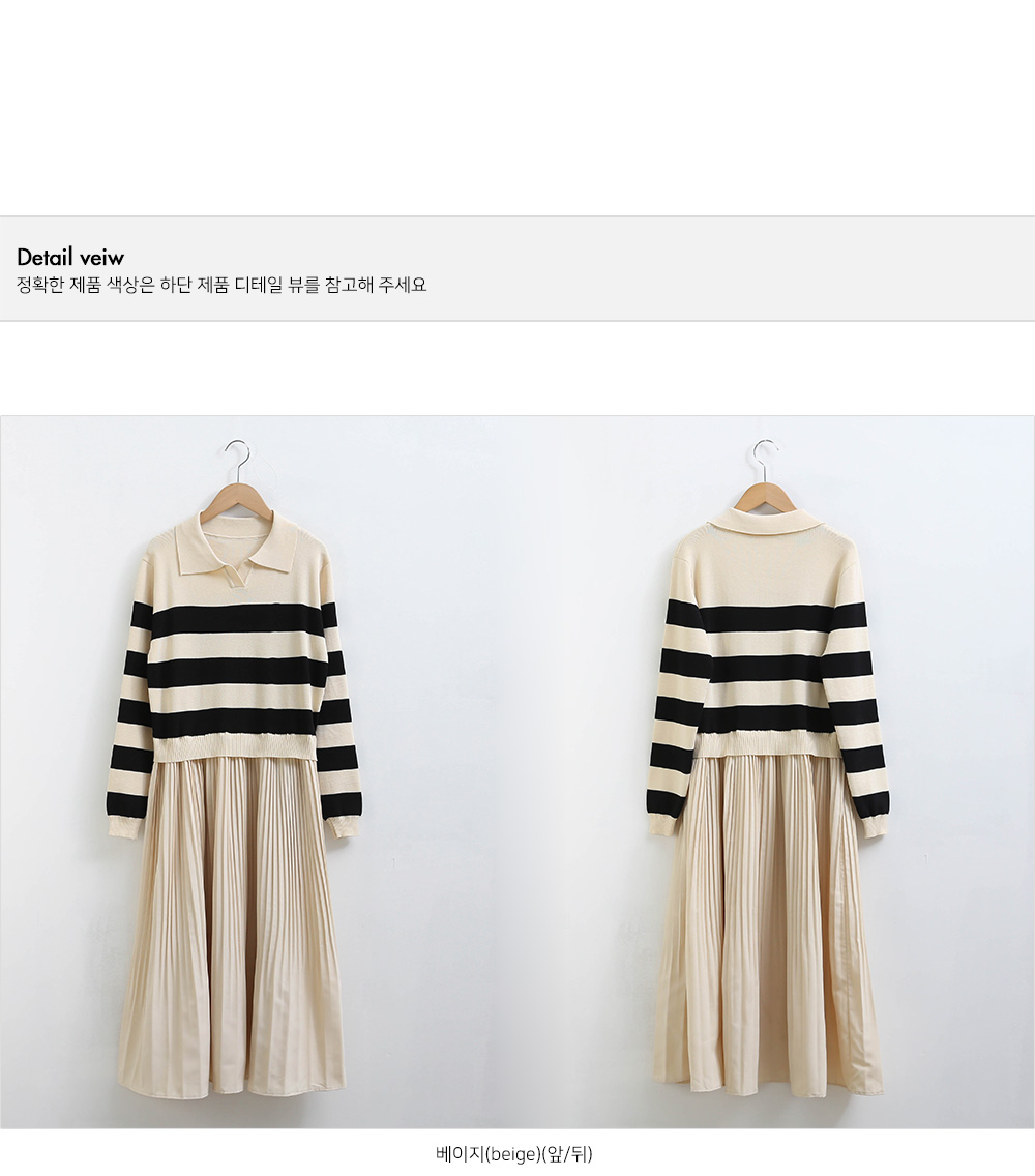 스트라이프 니트와 플리츠 롱 스커트를 입은듯~