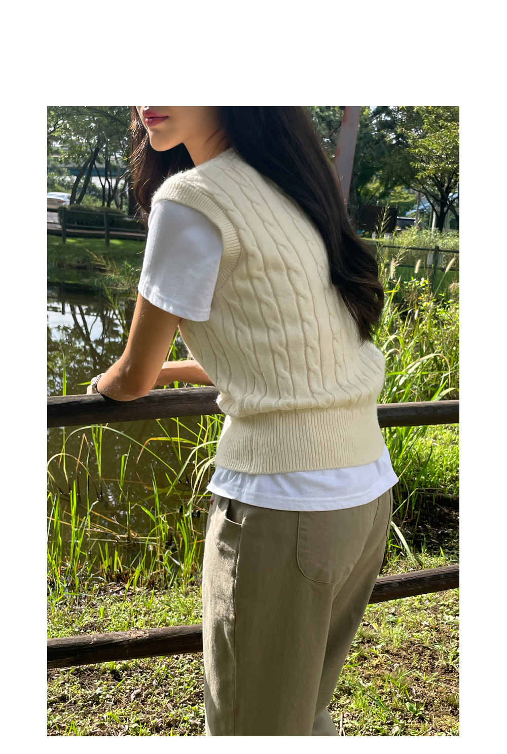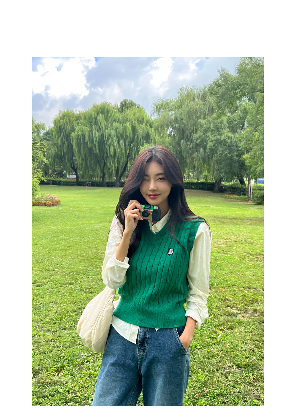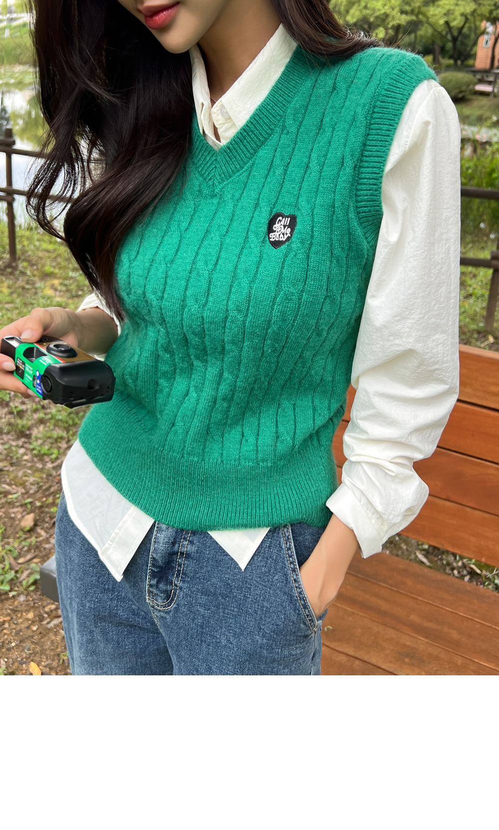 자체제작/ 트위스트 자수 니트 조끼 #110853