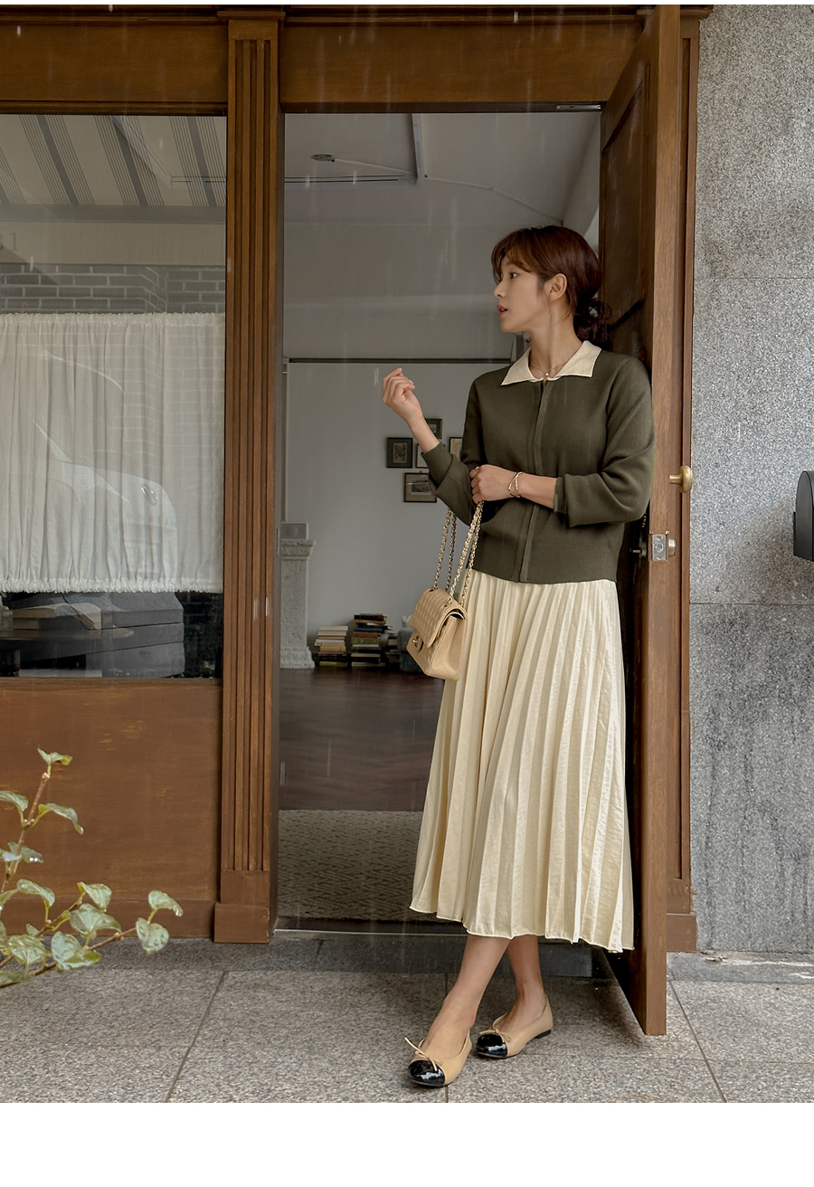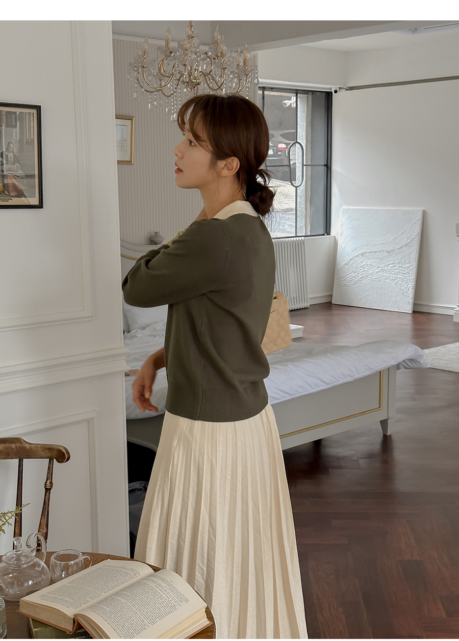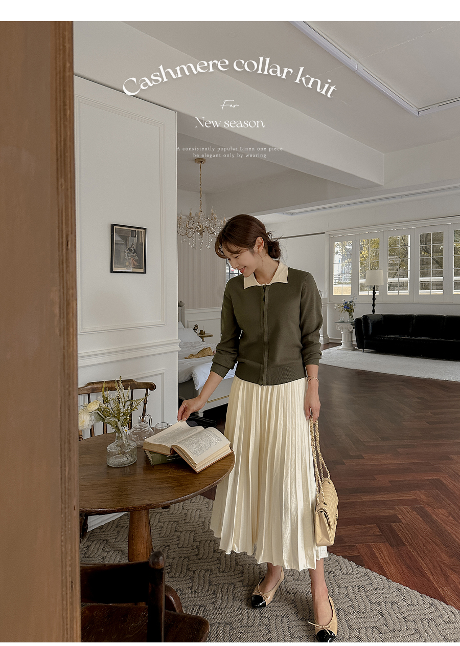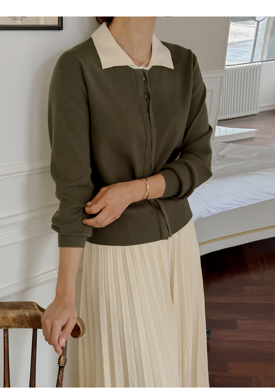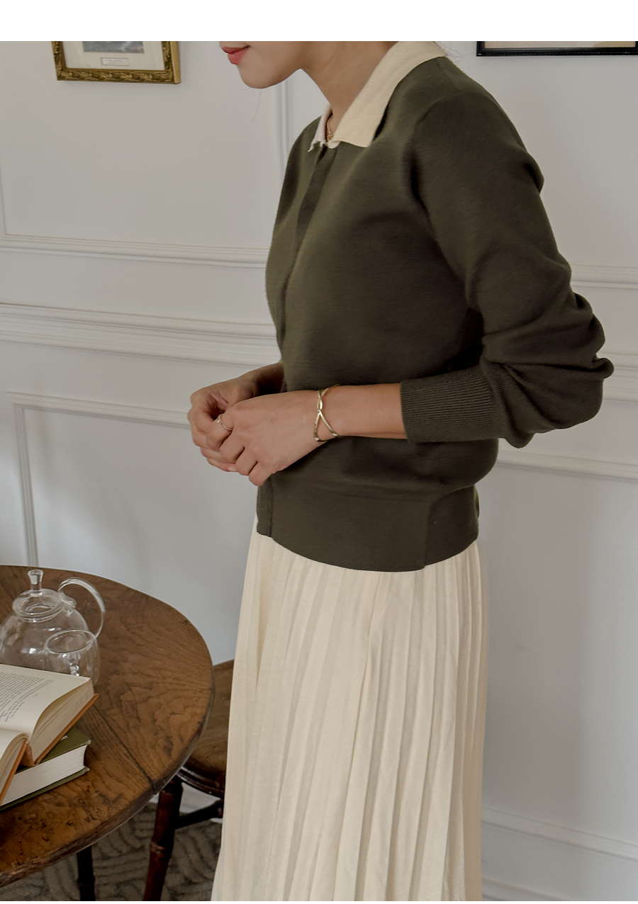 단정한 카라넥 아래 간결한 버튼으로