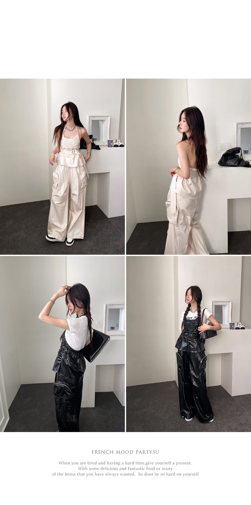 바스락거리며 광택이 돌아 독특한 매력이 있으며 같이 코디한 탑과