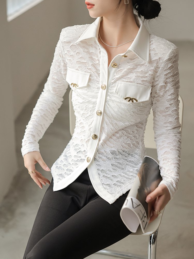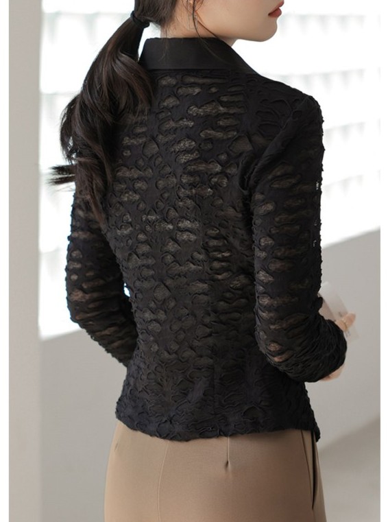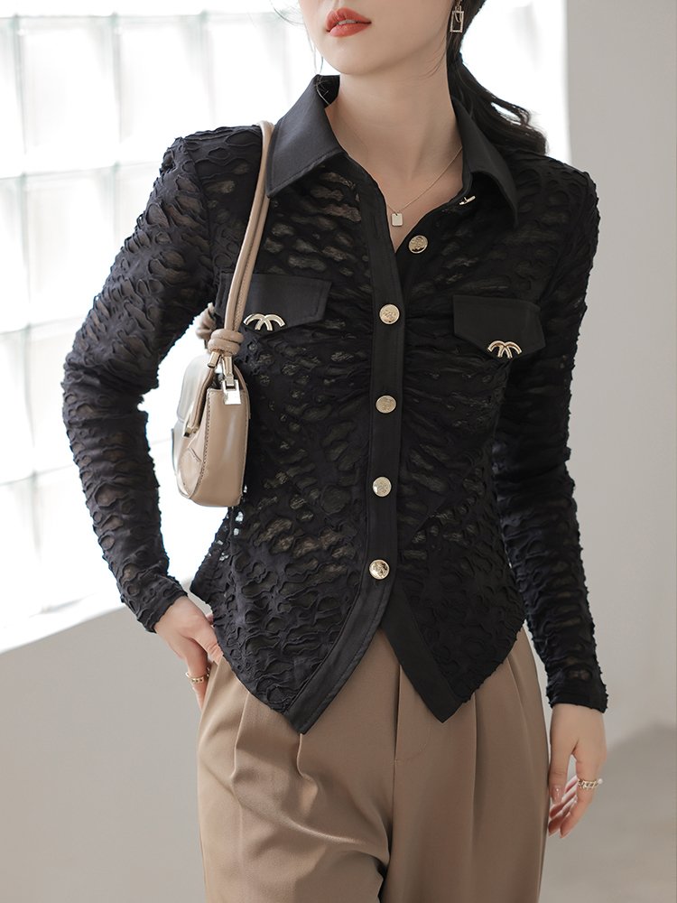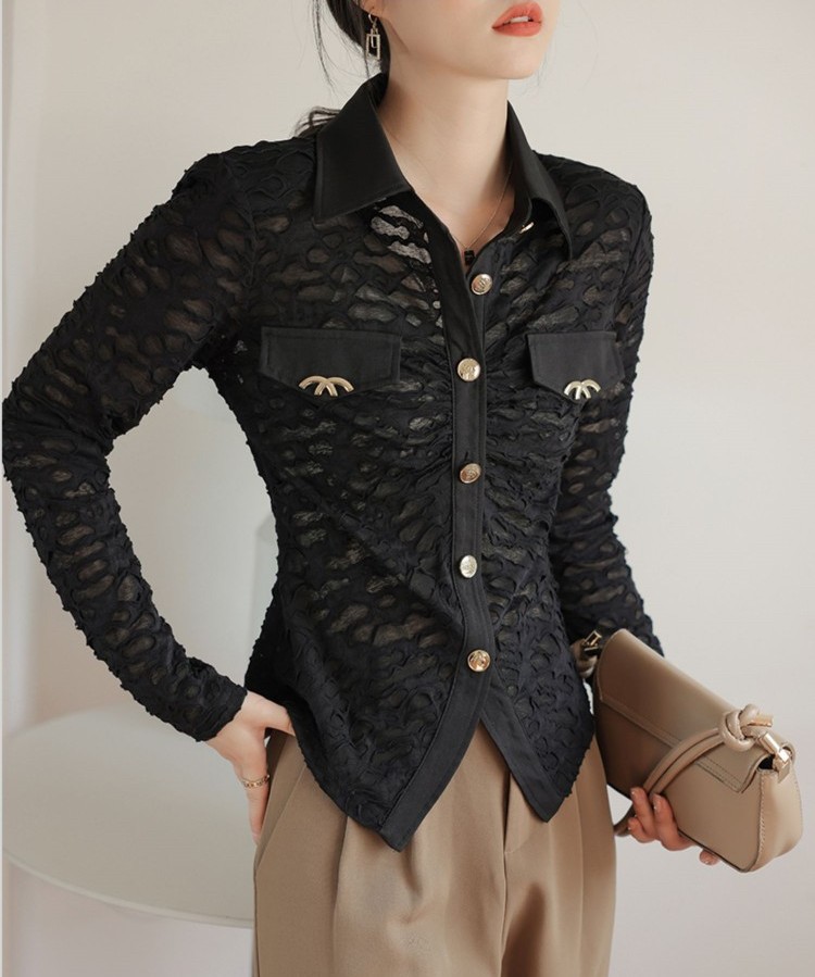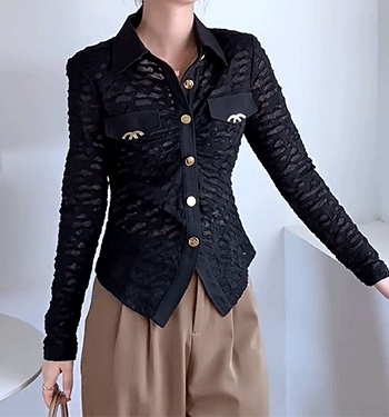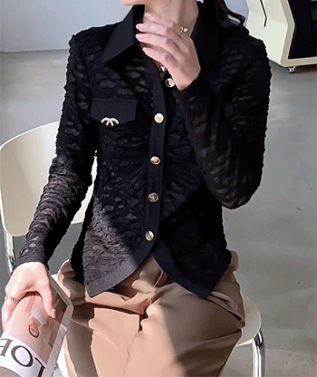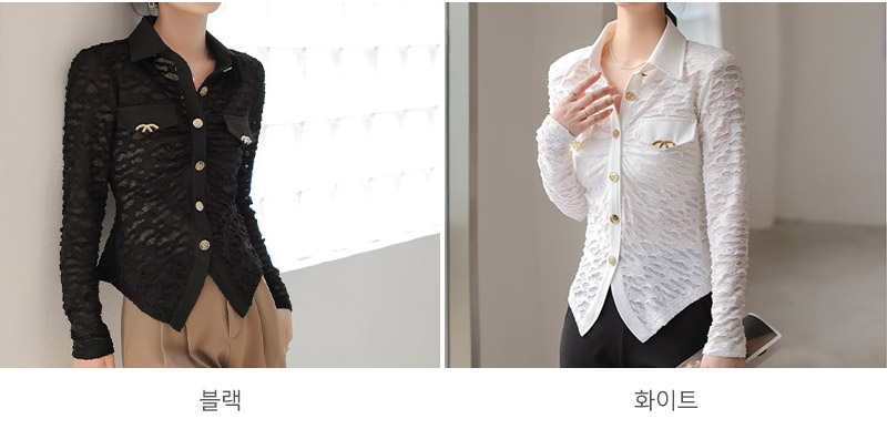 라우라 번아웃 패턴 금장버튼 오피스 블라우스