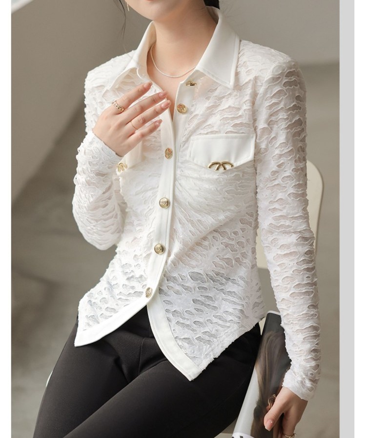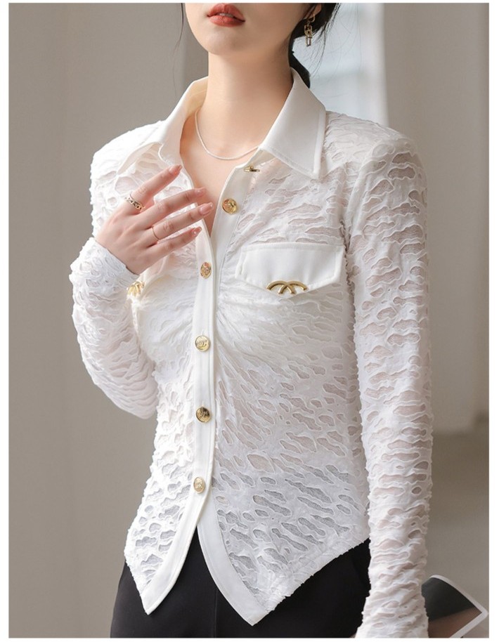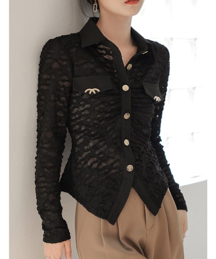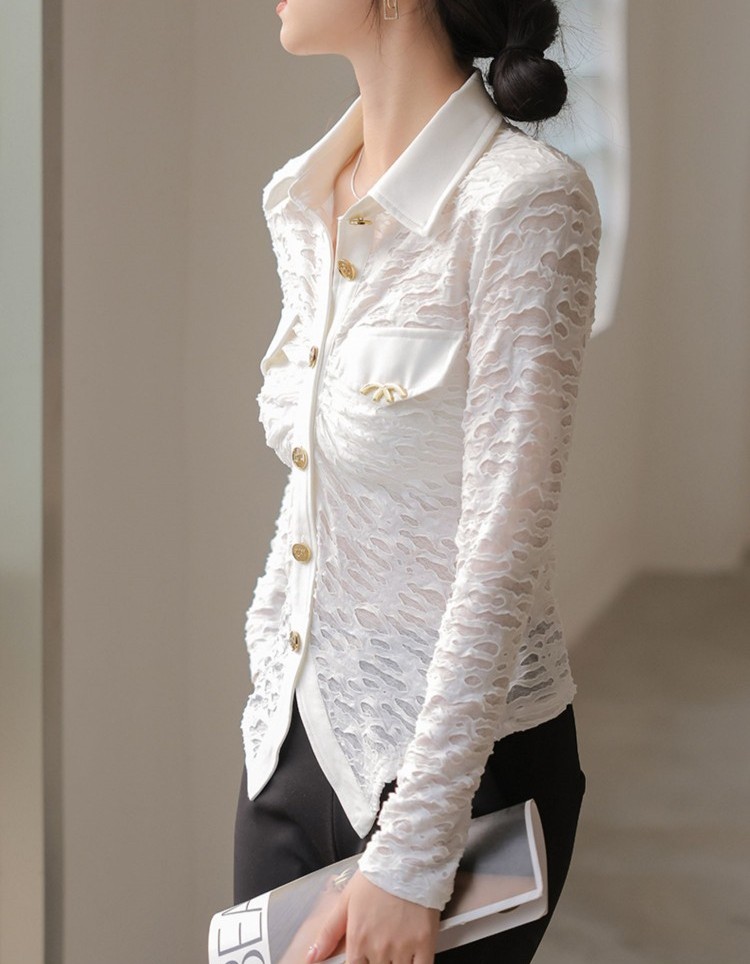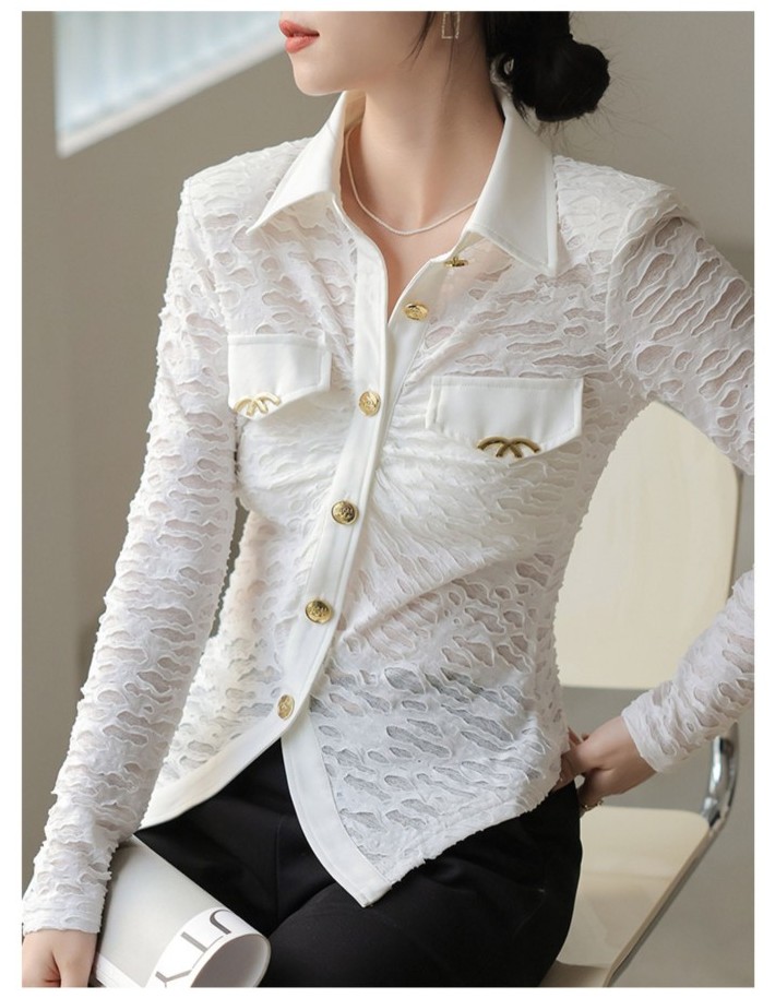 라우라 번아웃 패턴 금장버튼 오피스 블라우스
