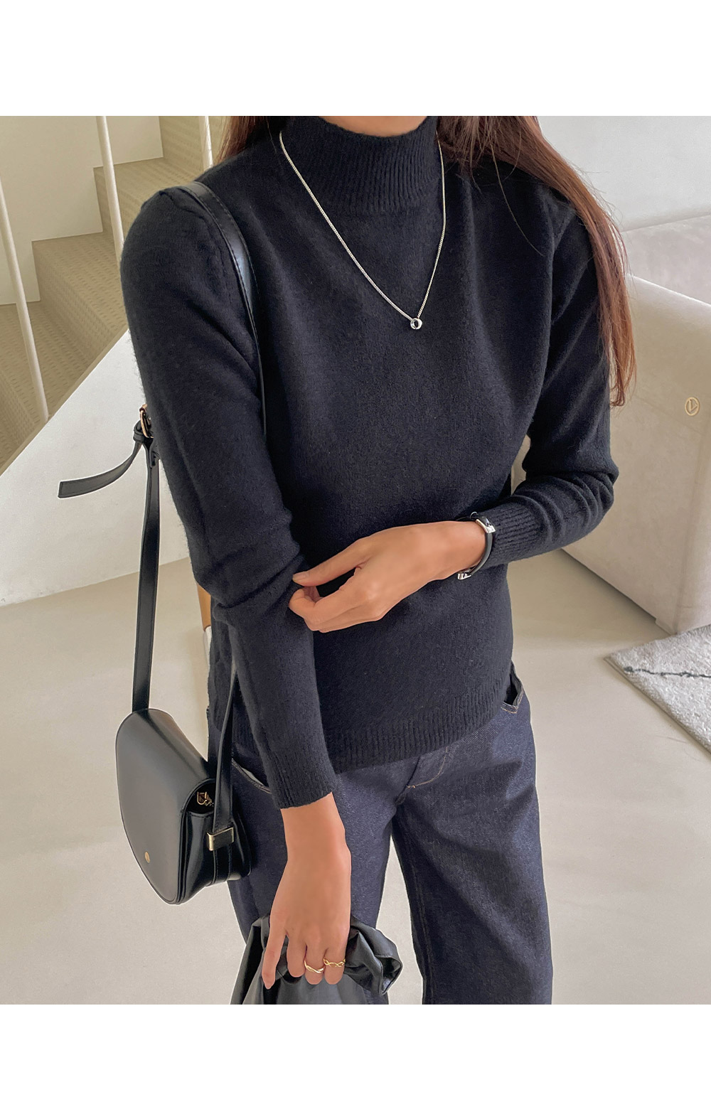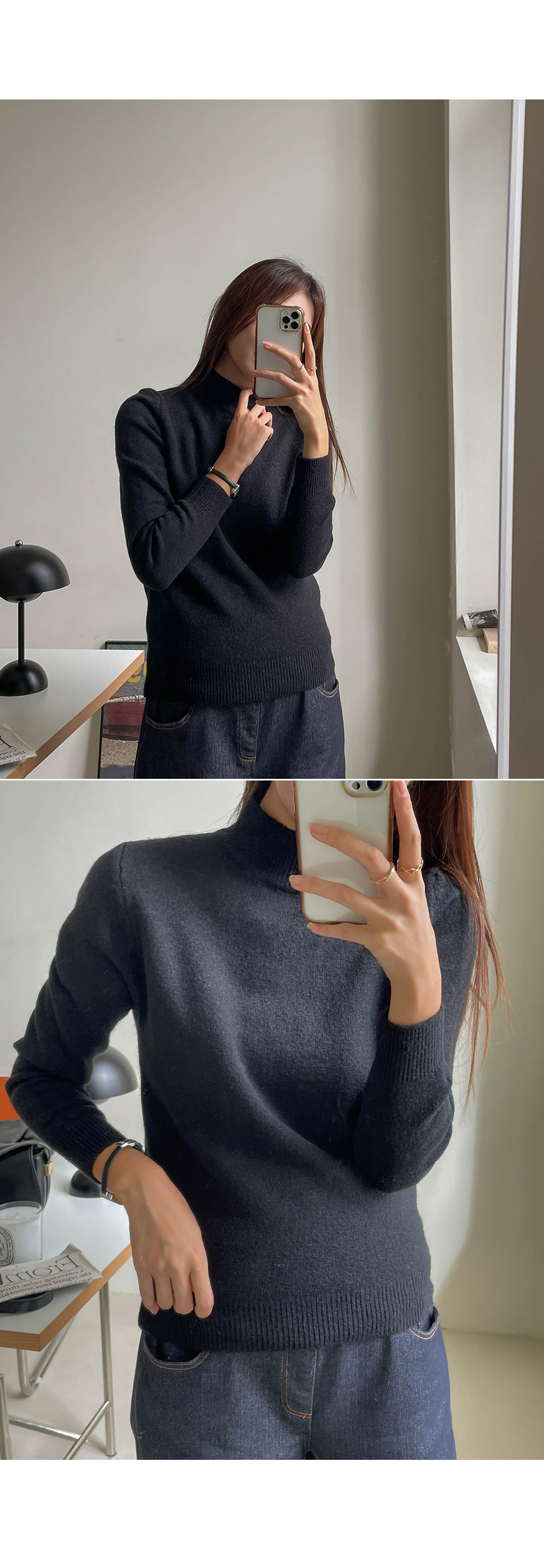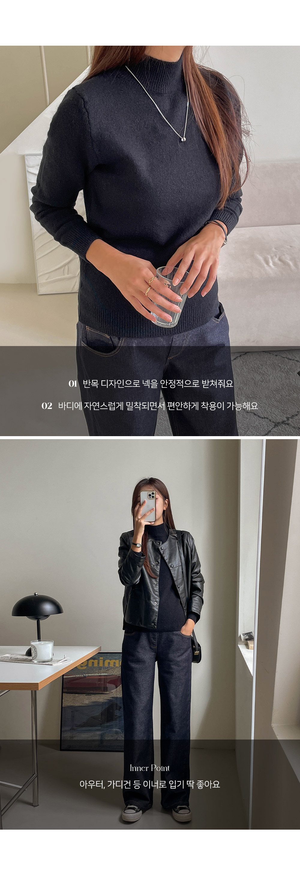 포근함이 느껴지는 반목 니트에요~!