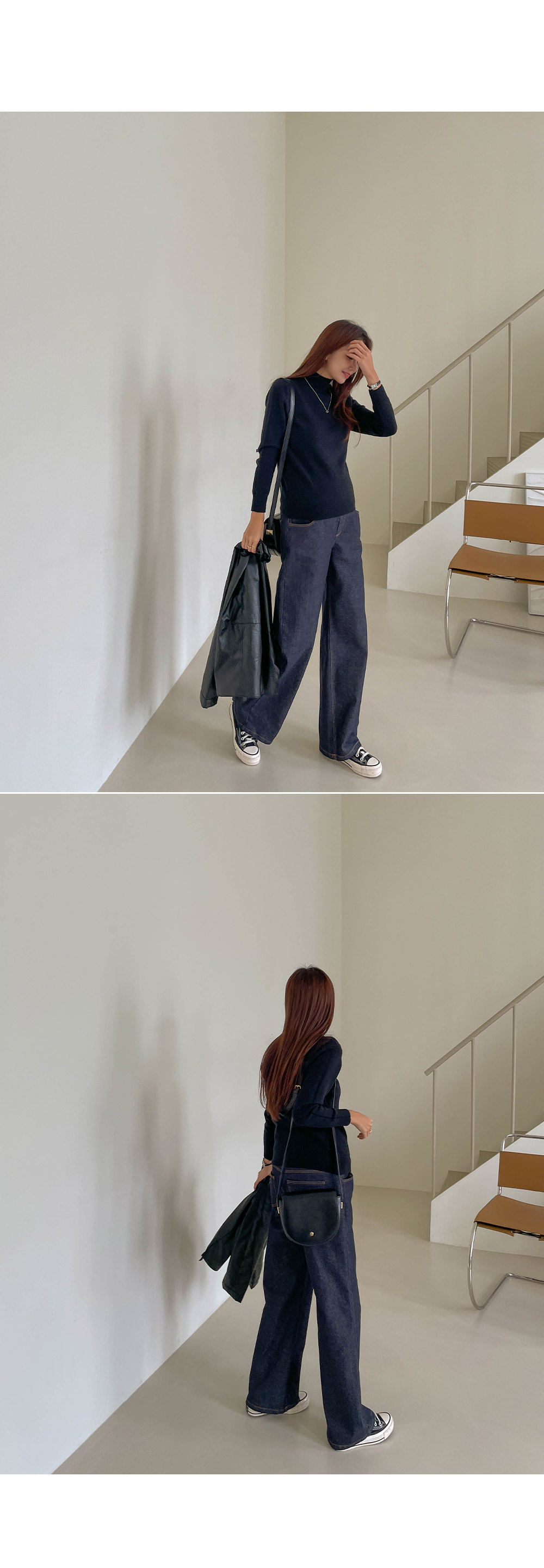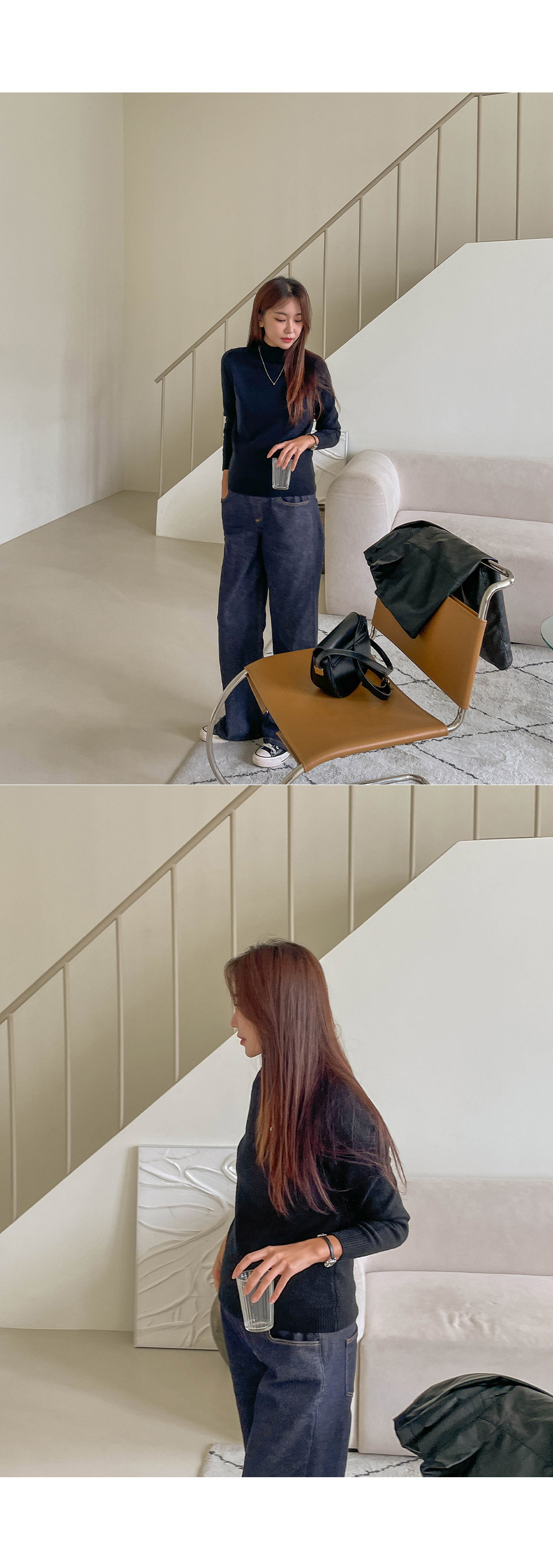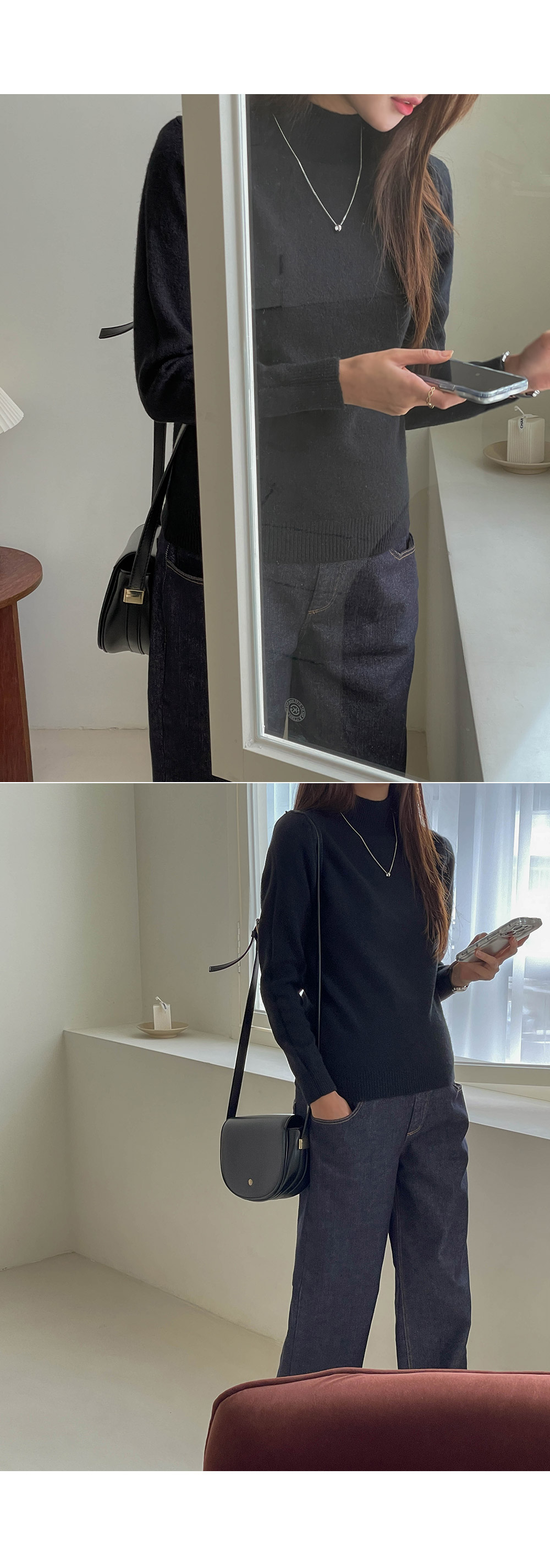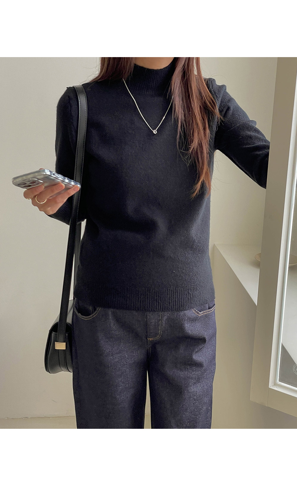 포근함이 느껴지는 반목 니트에요~!