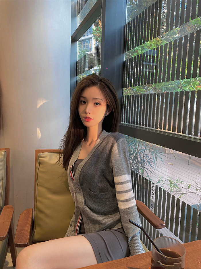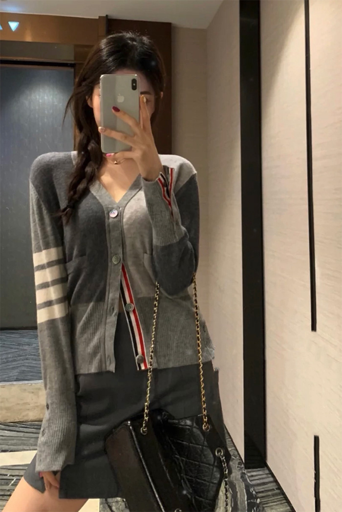 Lepio School Look Gray High Quality Knit Cardigan