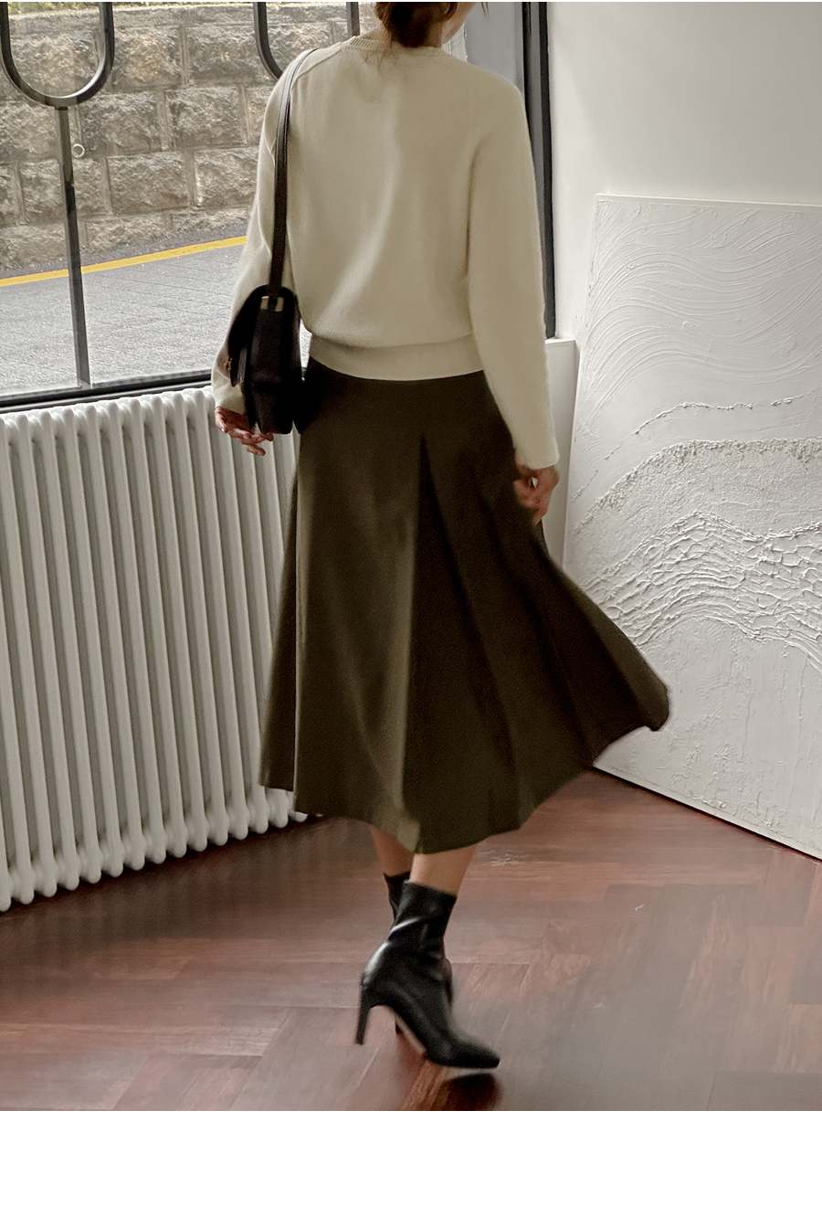 간결한 핀턱 라인으로 자리잡힌 주름 디테일이