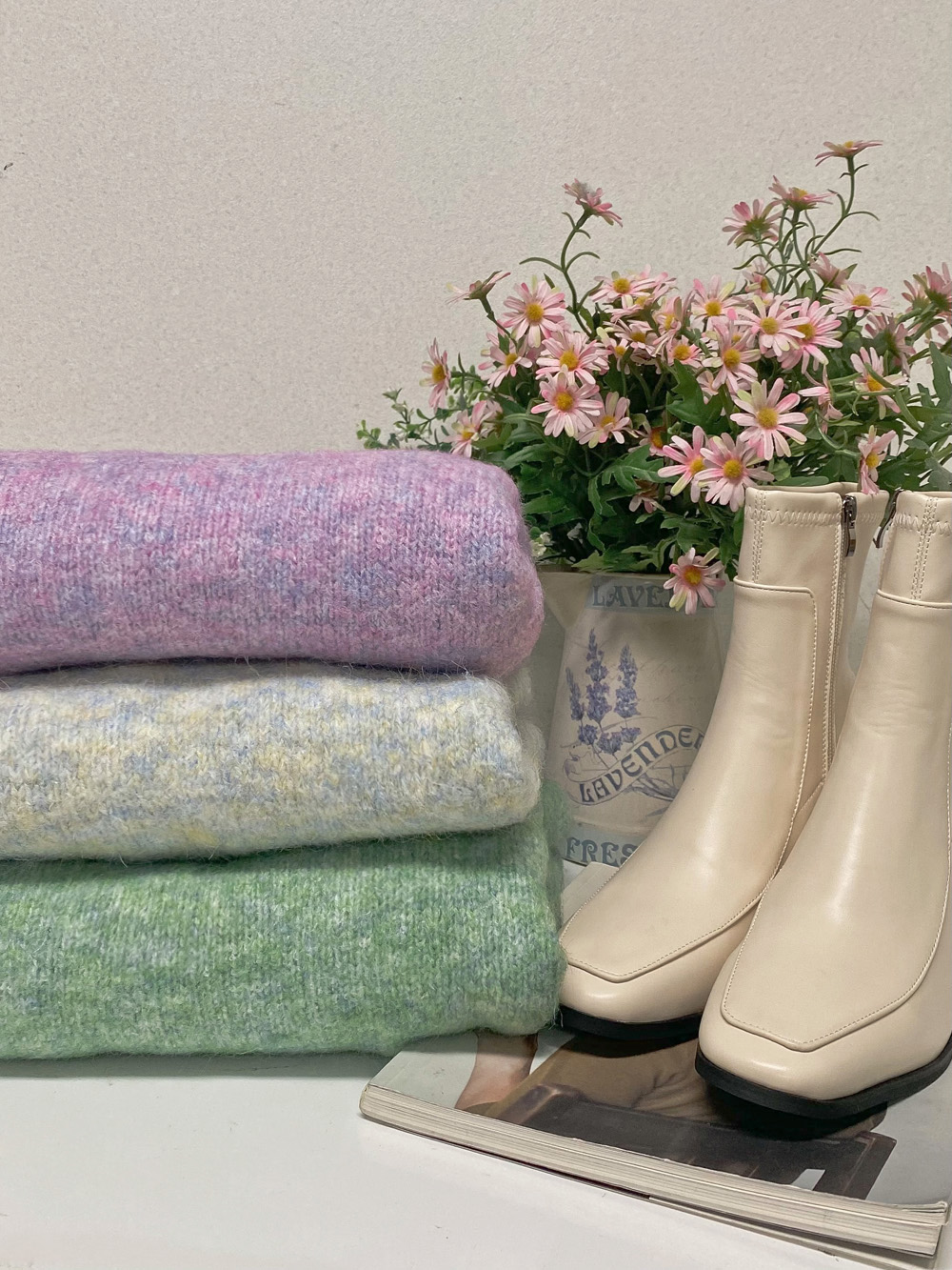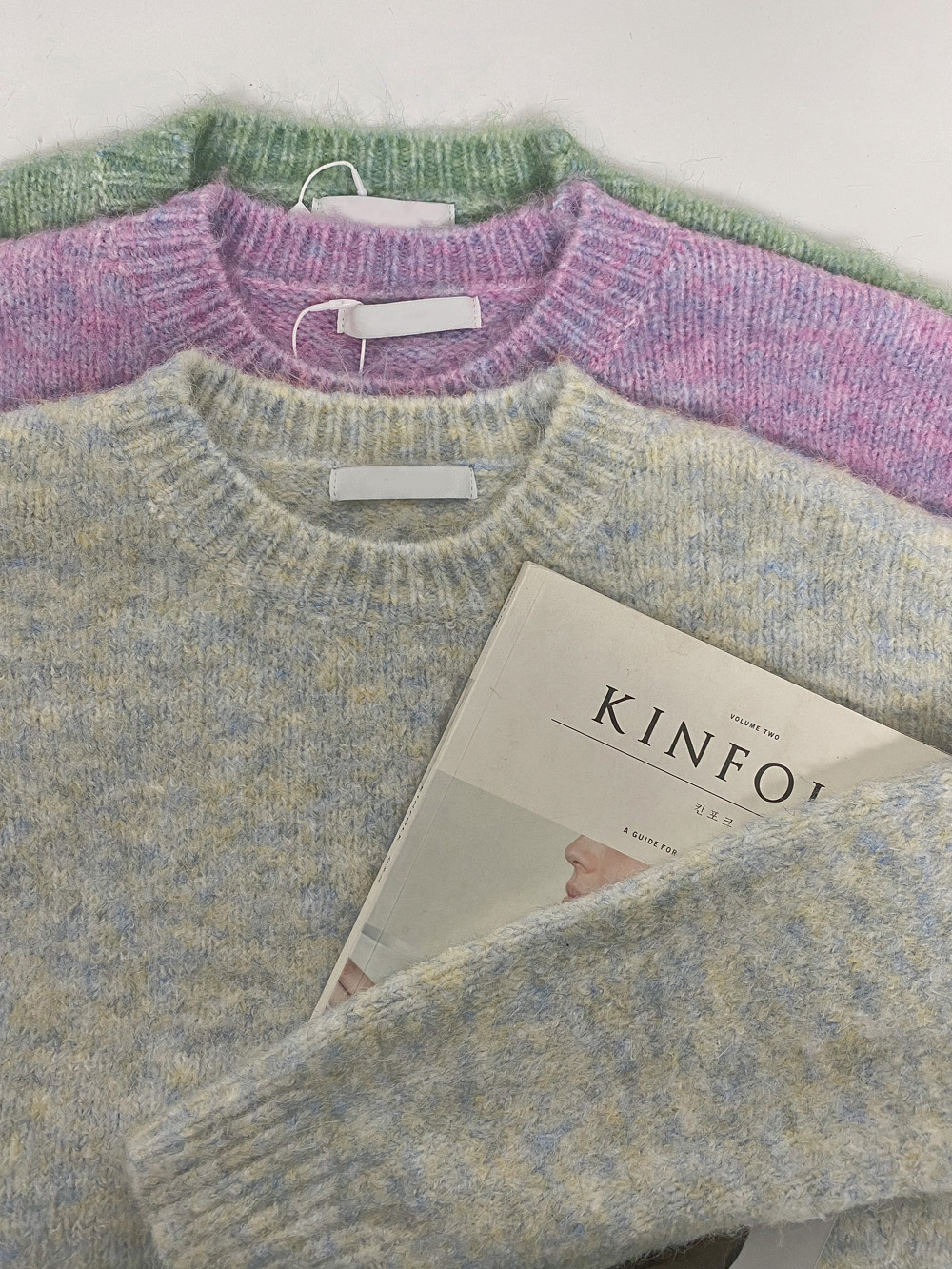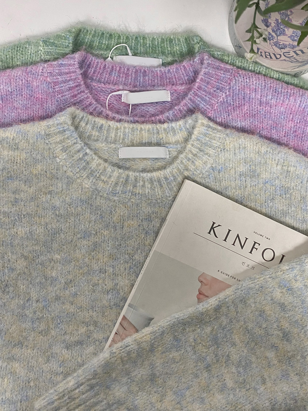 Cotton candy round knit tee-3color, cotton candy-like knit-soft and warm summer knit tee-warm material for cold winter~ - Style Tea Bar
