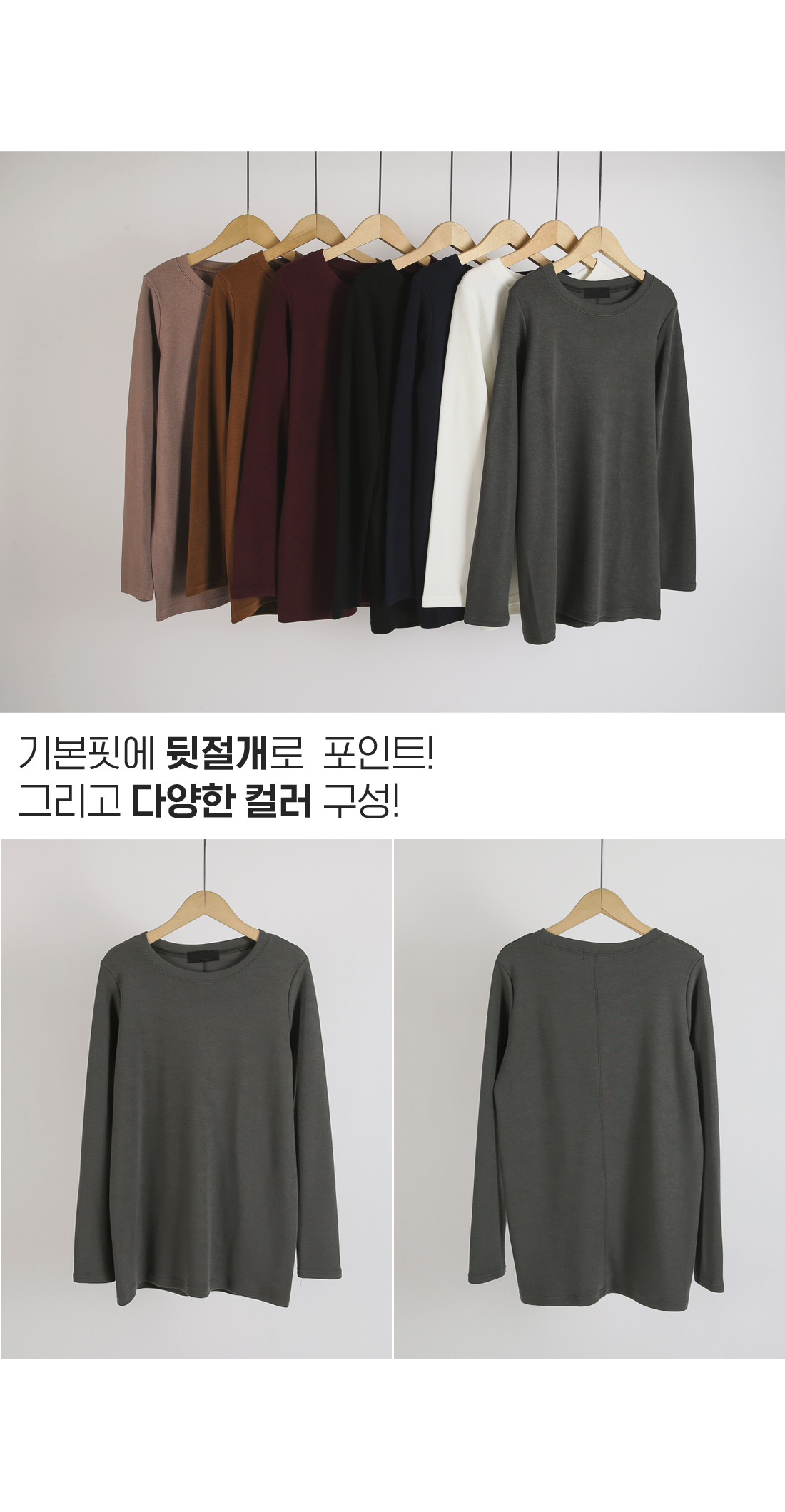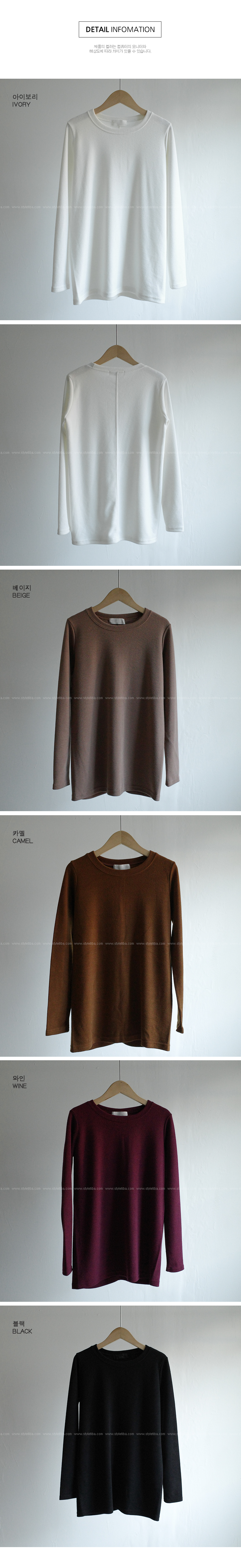페톤 피치기모티셔츠-5color, 피치기모로 포근하게-백라인 절개라인 데일리티셔츠 - 스타일티바