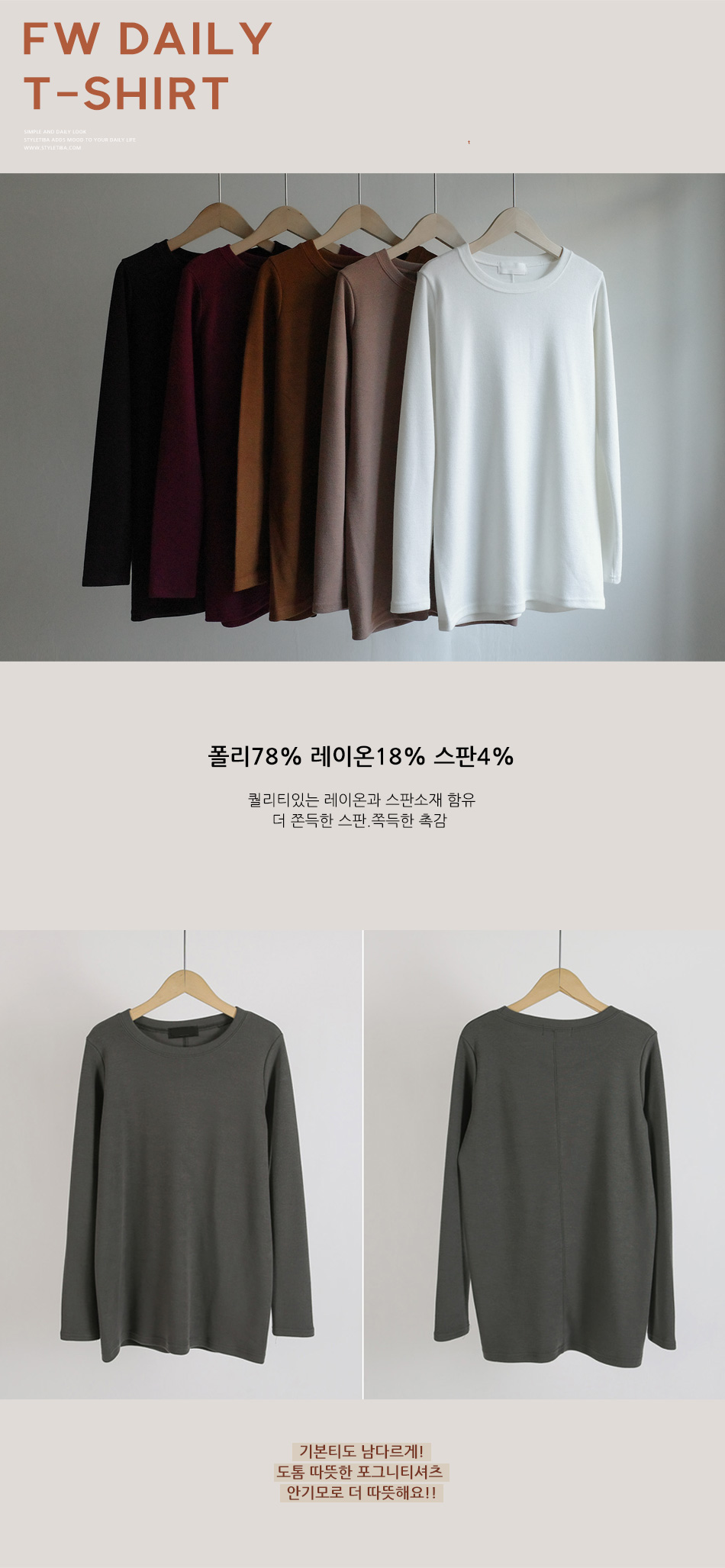 가을겨울용 부드럽게 착용되는 티셔츠를 소개해요:)