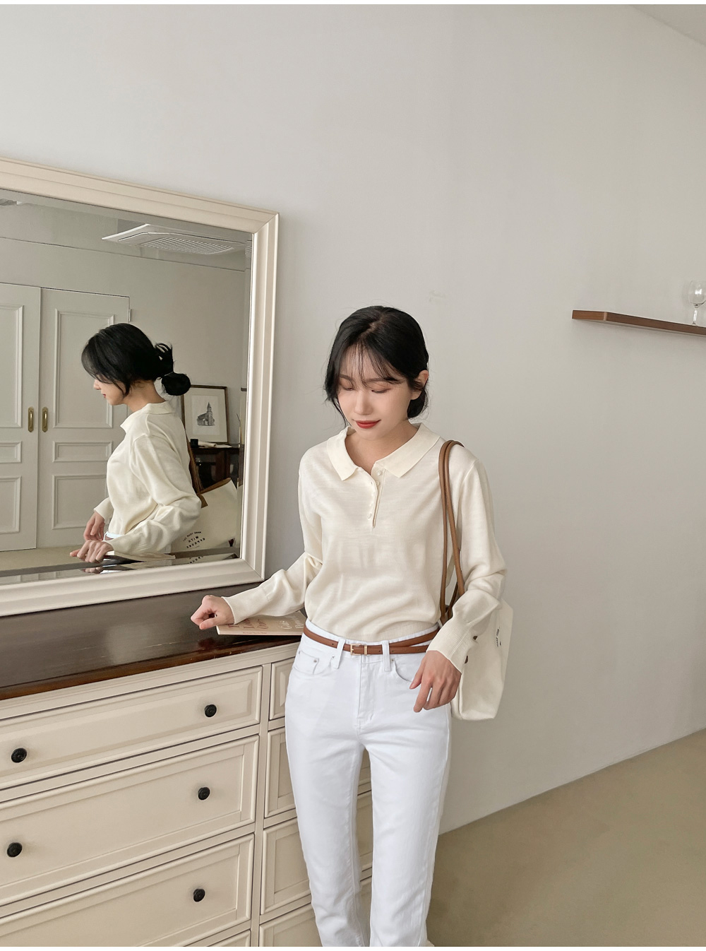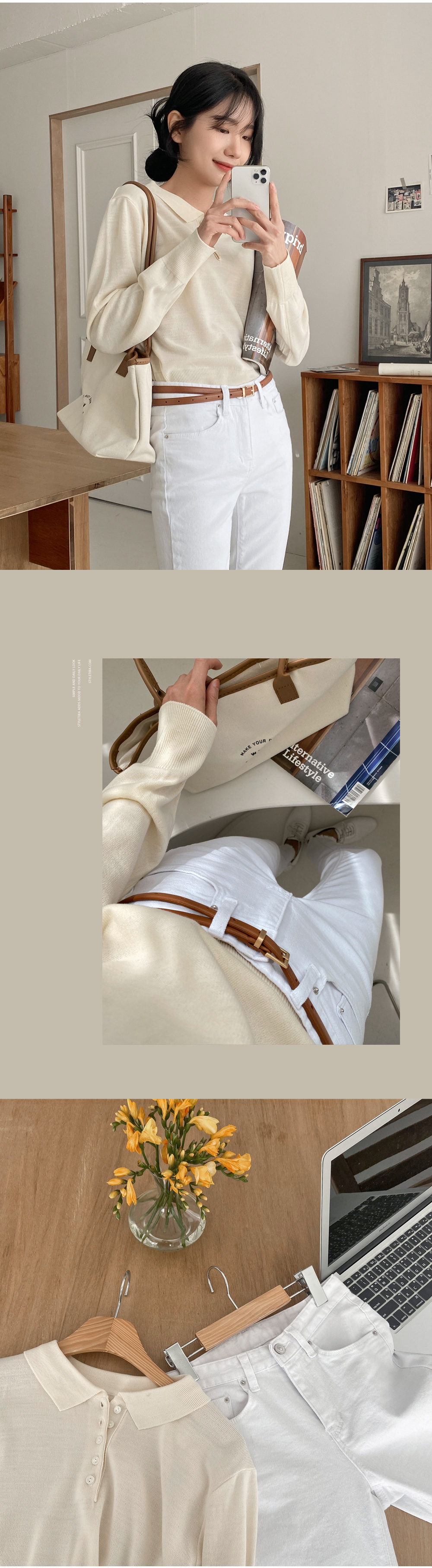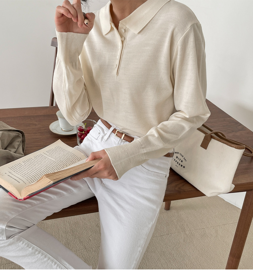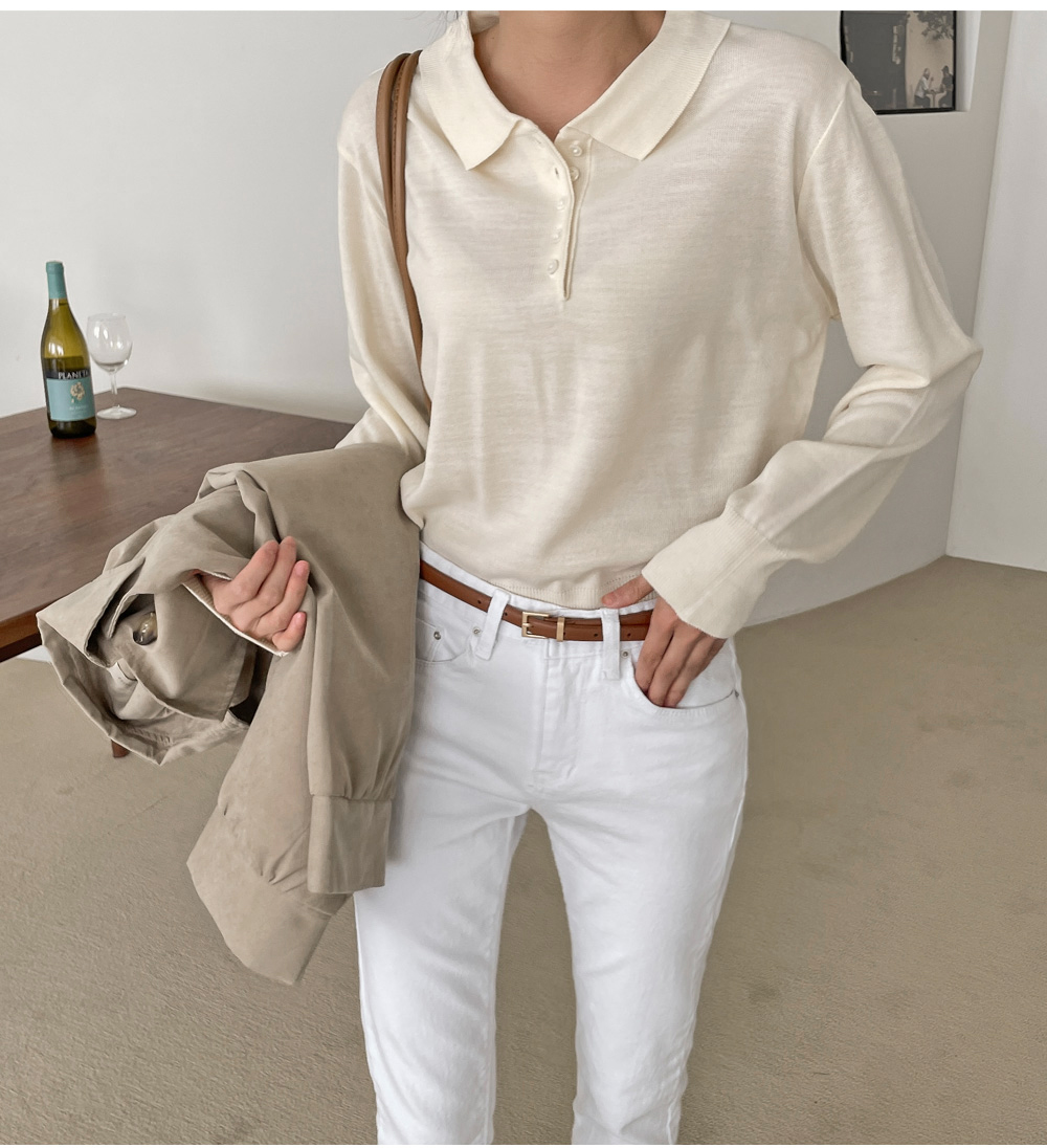 깔끔하게 퍼지는 카라 라인으로 얼굴이 갸름해보이는
