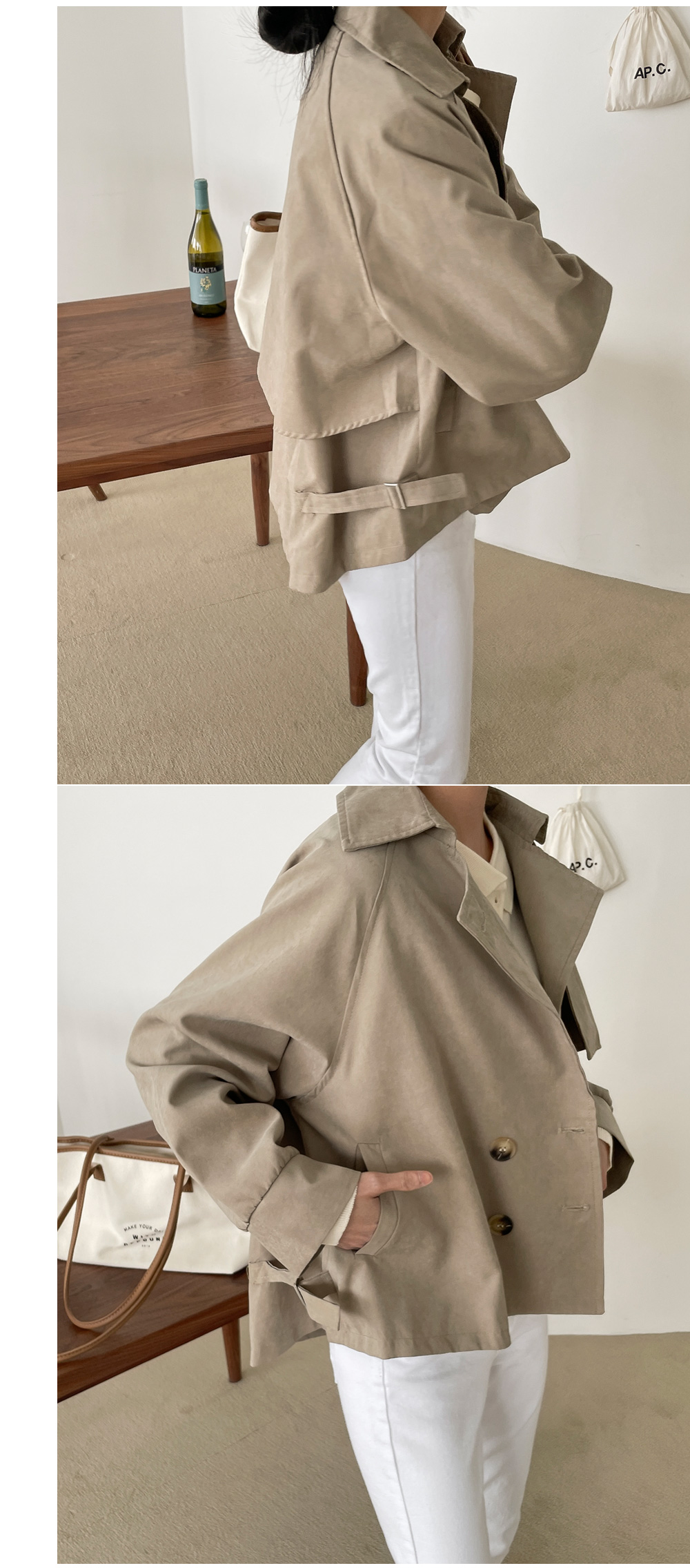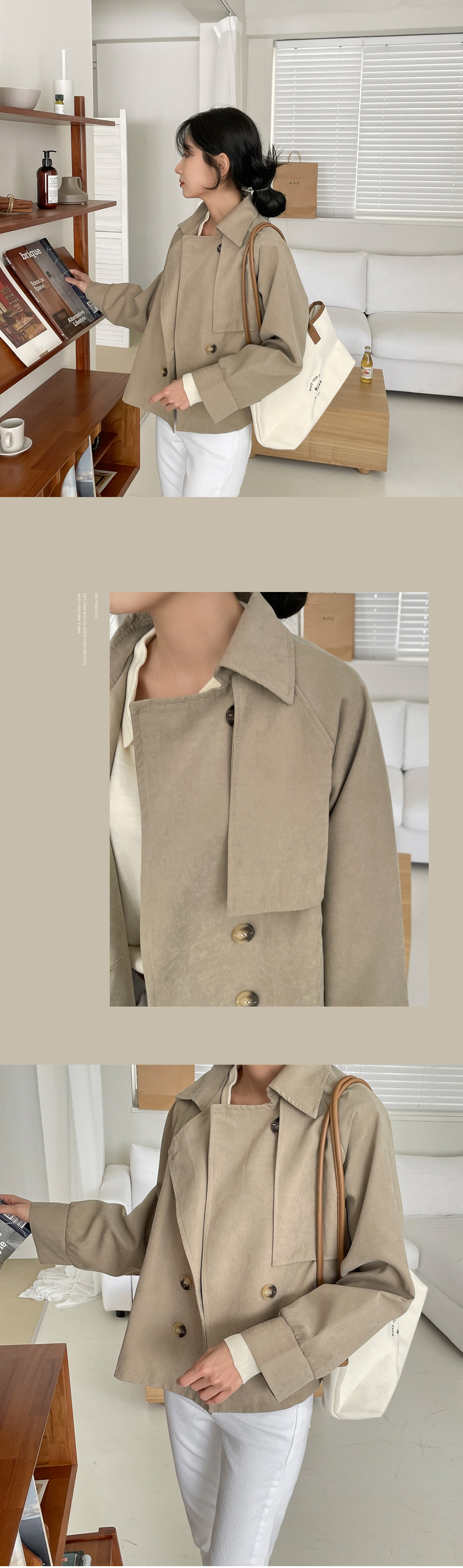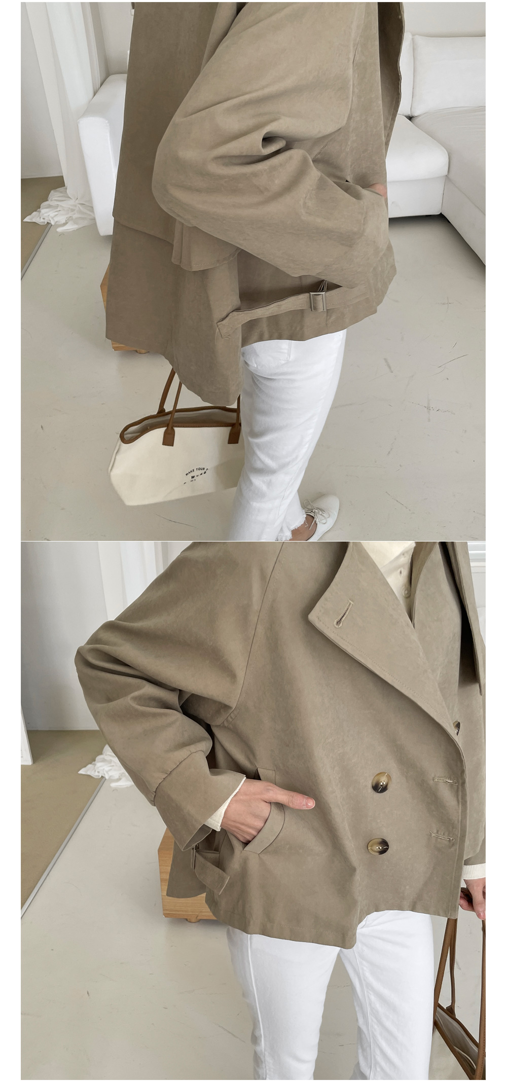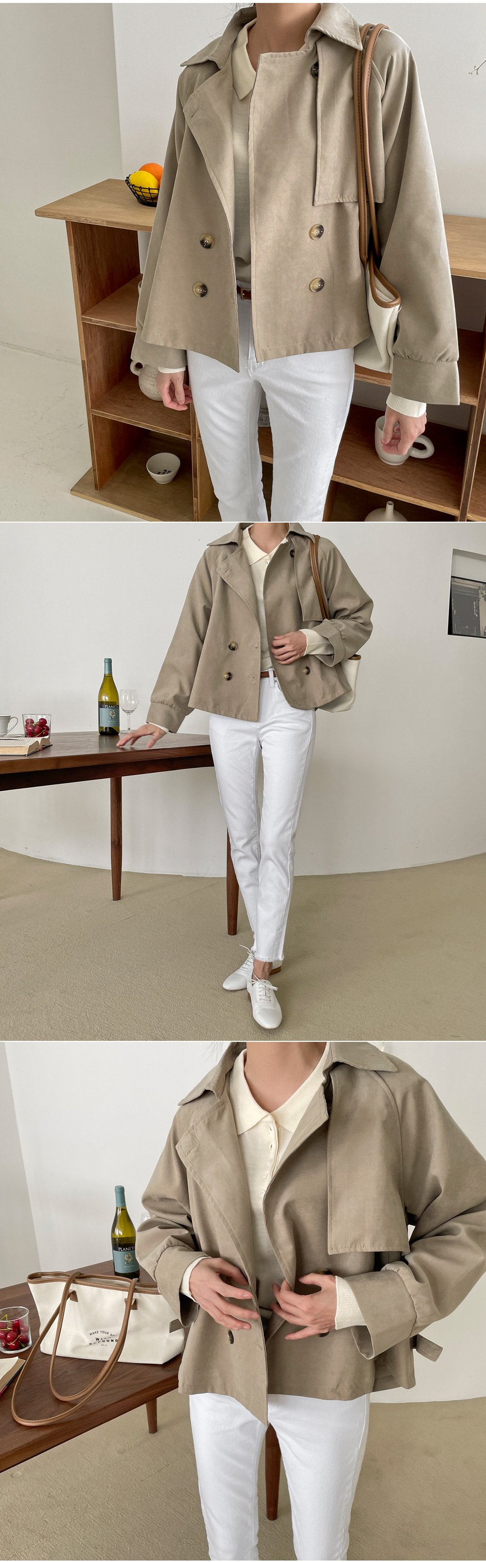 피치 트렌치 숏자켓-3color, 하프숏 트렌치코트-걸치기만 해도 멋스러움 가득! - 스타일티바