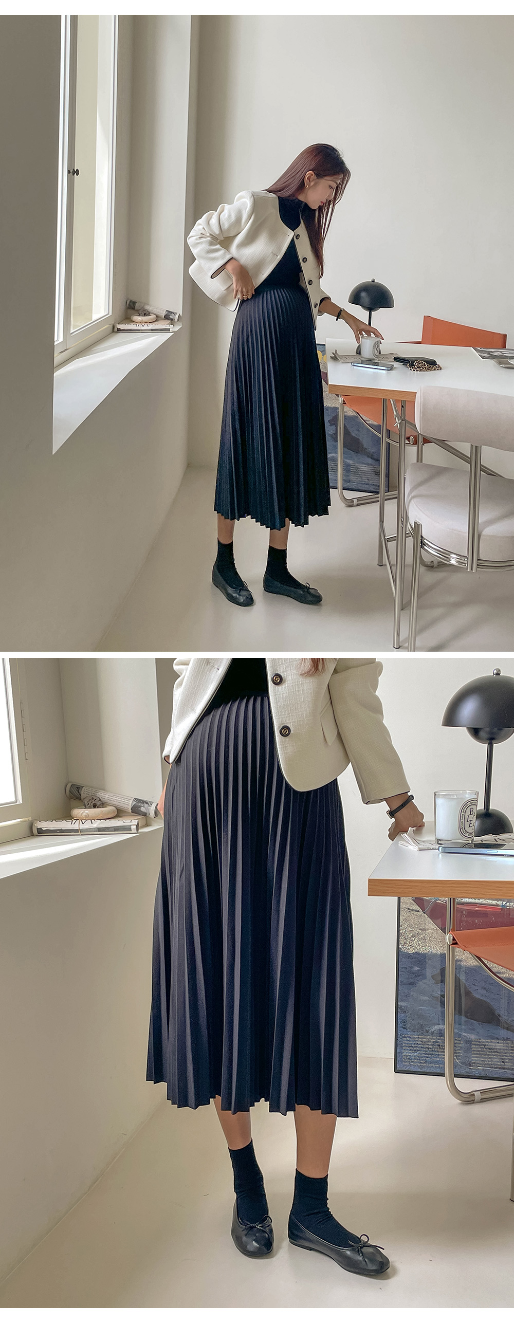 모델처럼 스커트와 매치해