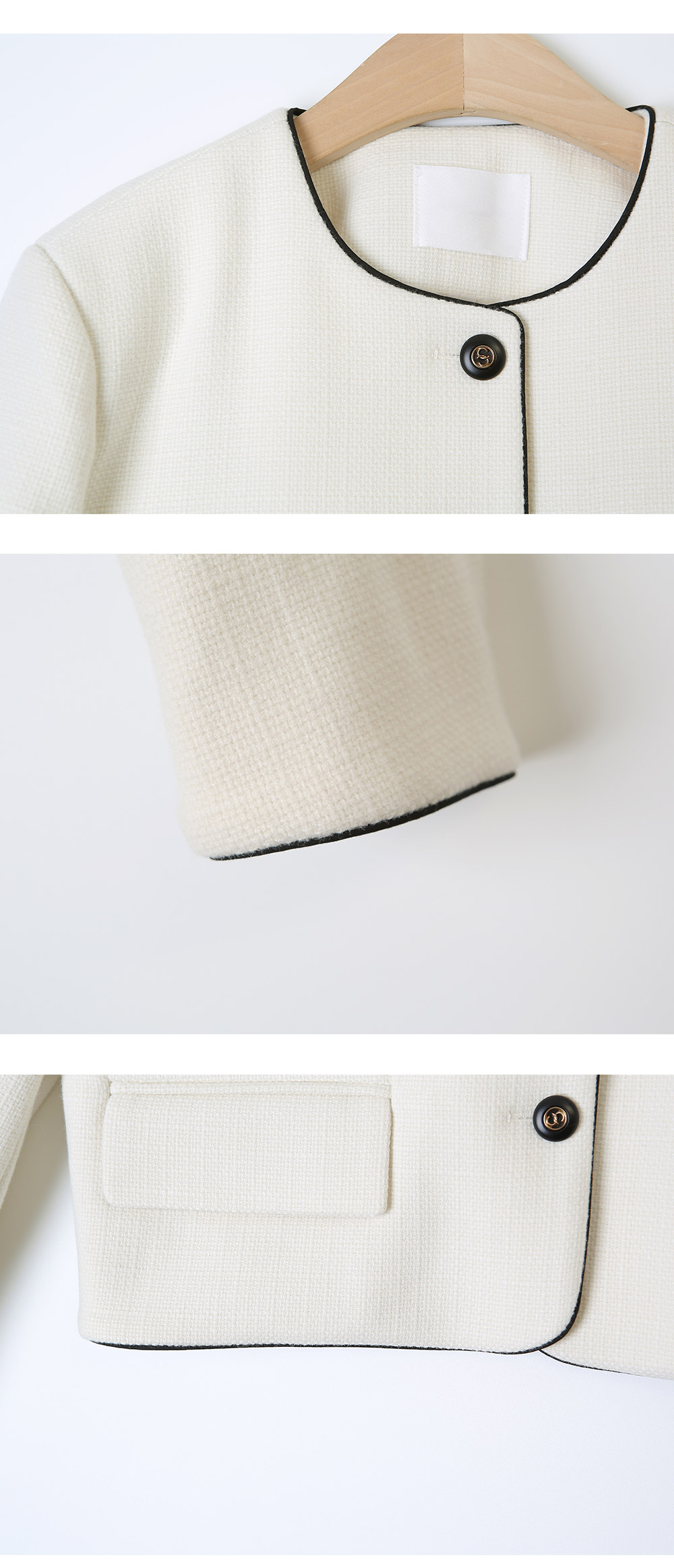 특히 넥 라인을 따라 배색된 디테일이