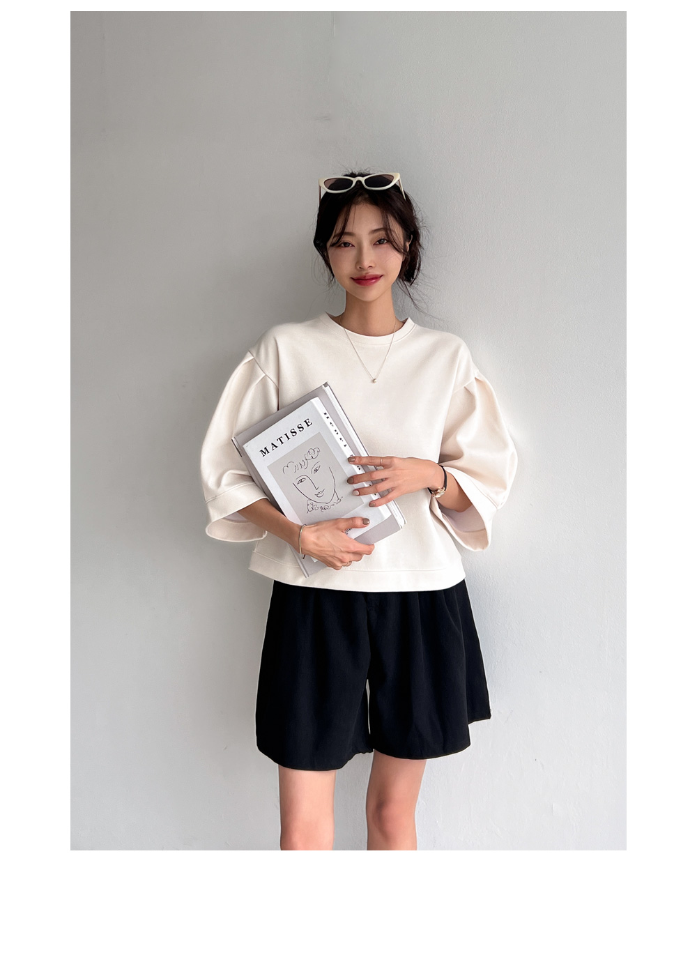 소매라인에는 셔링 디테일이 들어가 밋밋하지 않으면서도