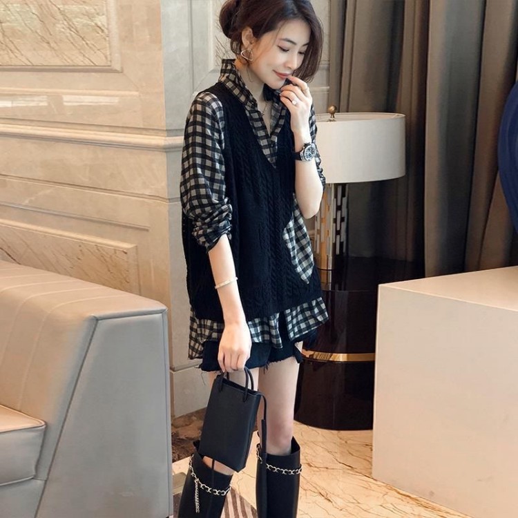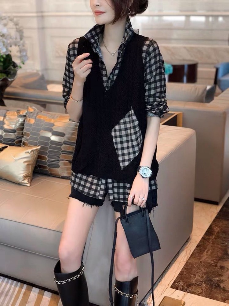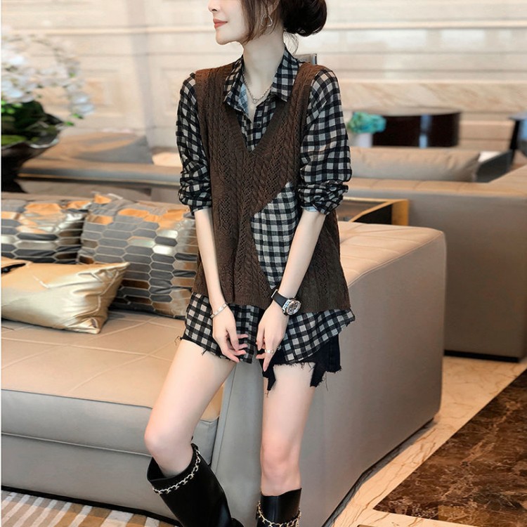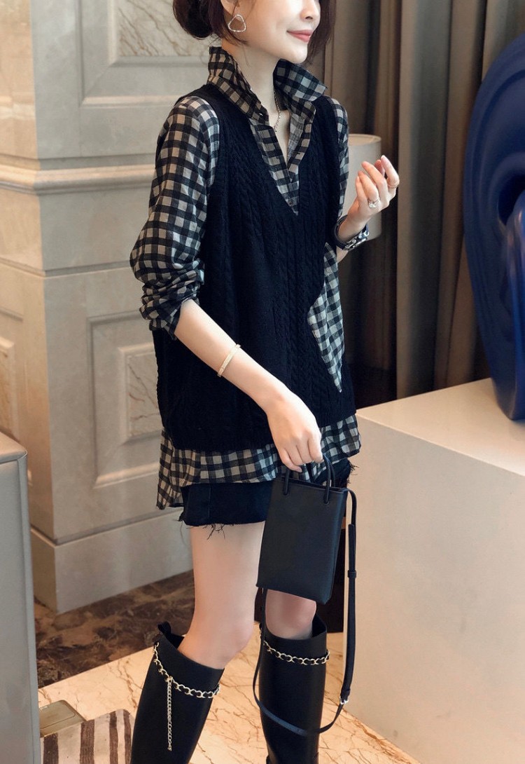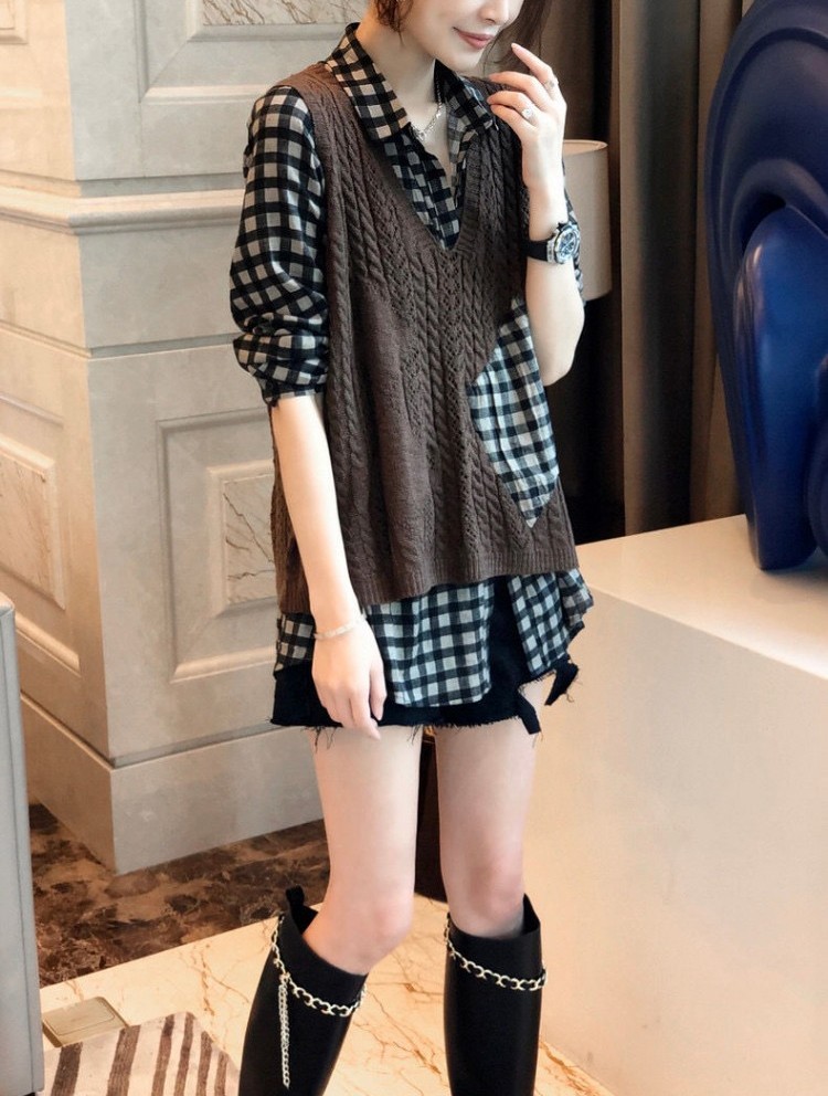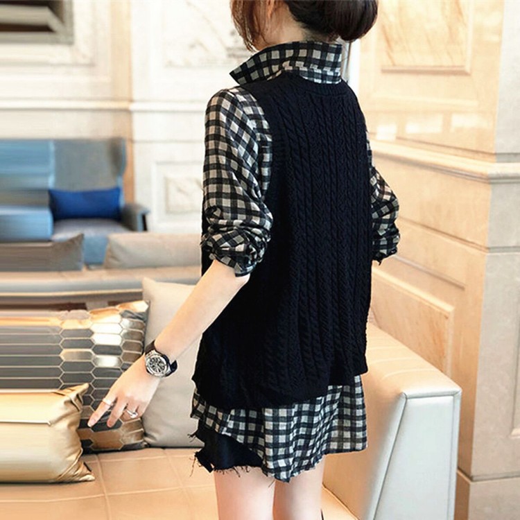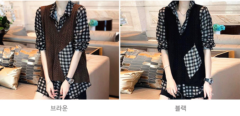 레비도 체크셔츠 레이어드 니트 - 빅사이즈까지
