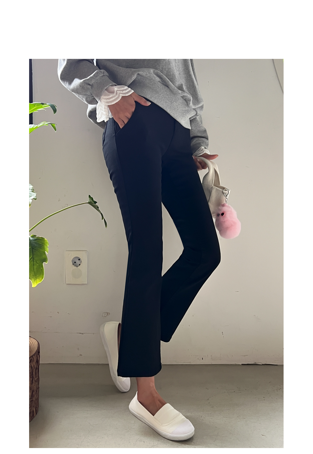 종아리는 더욱 슬림해보이는 부츠컷 팬츠랍니다.