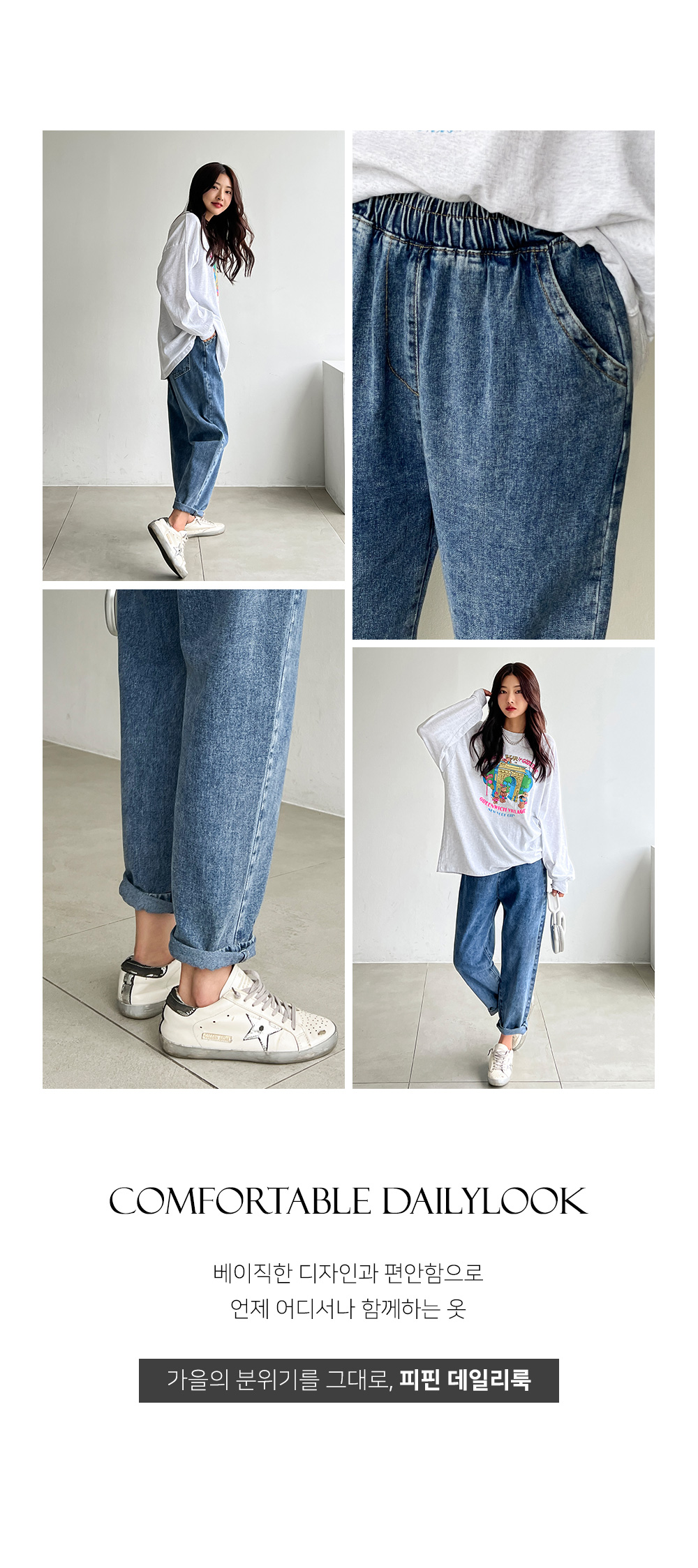 어디에나 쉽게 코디할 수 있는 데일리한 데님 팬츠로