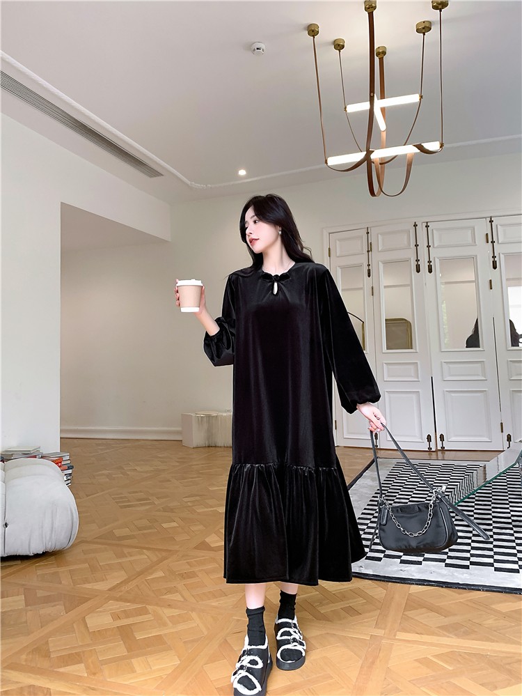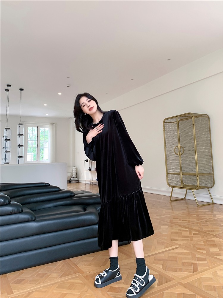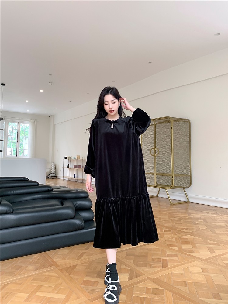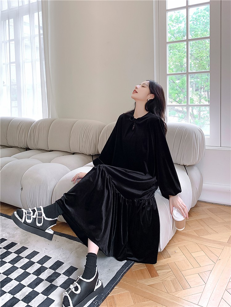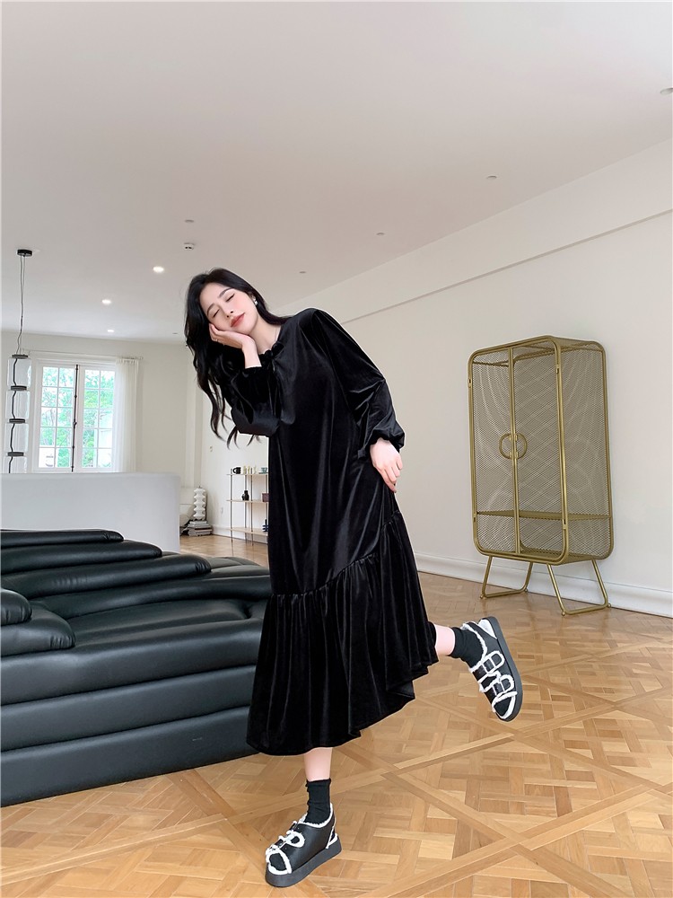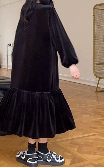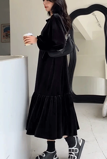 클로드 루즈한 편한핏 박시 벨벳 롱원피스
