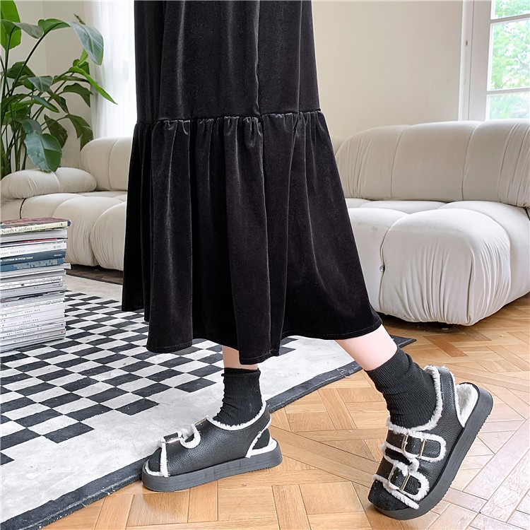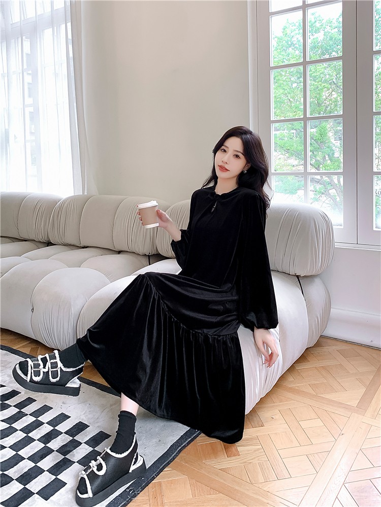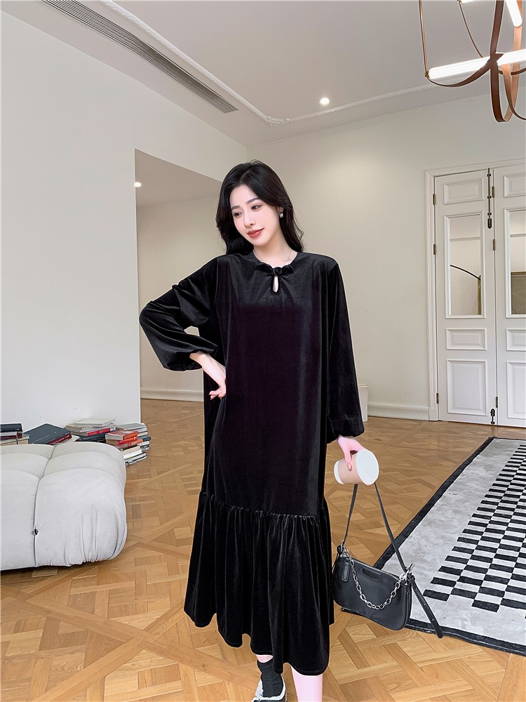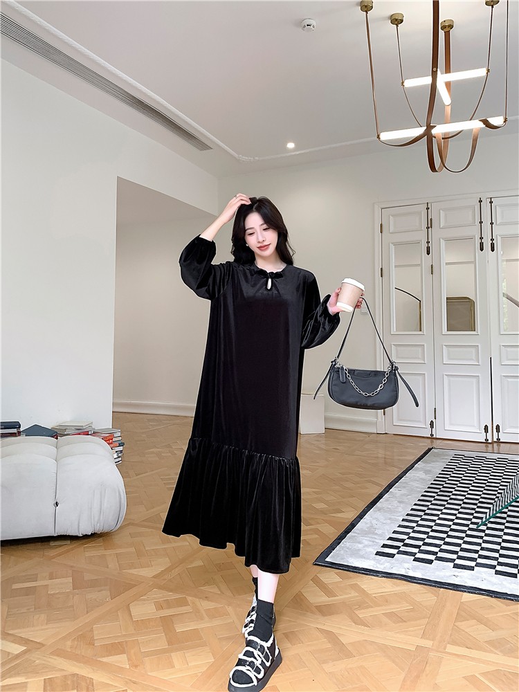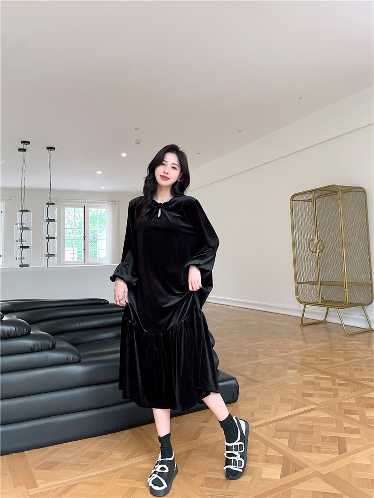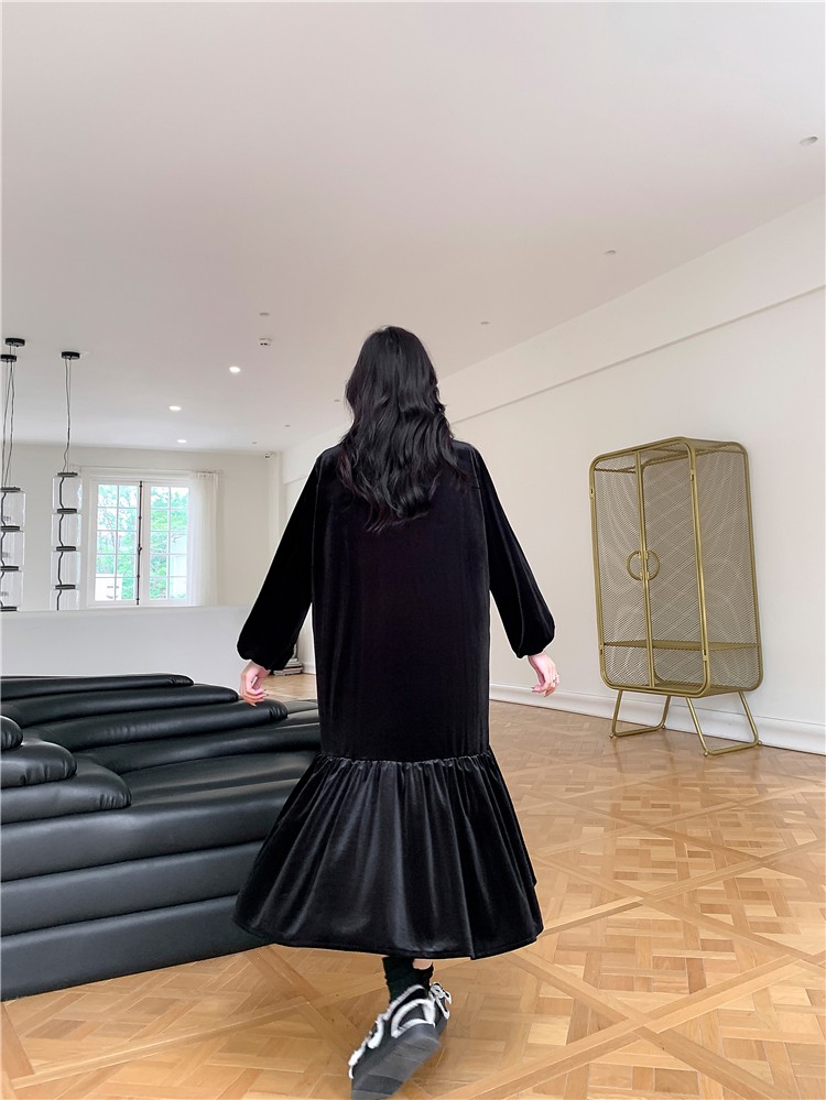 클로드 루즈한 편한핏 박시 벨벳 롱원피스
