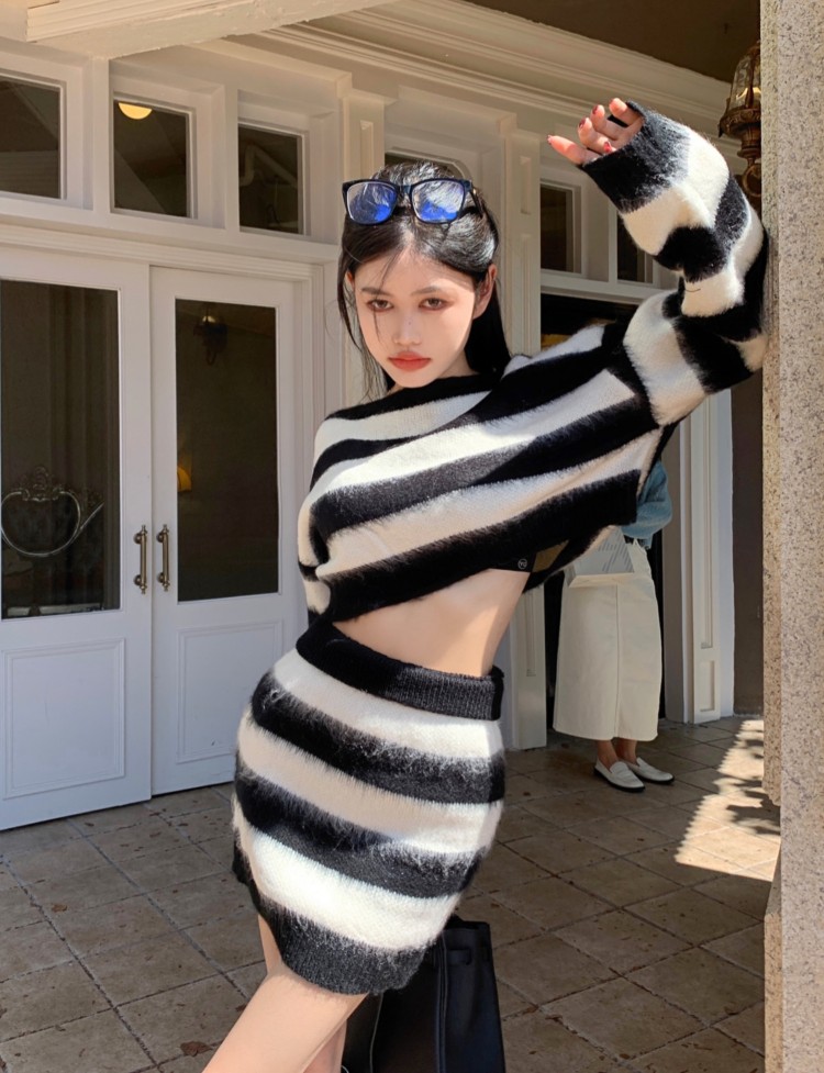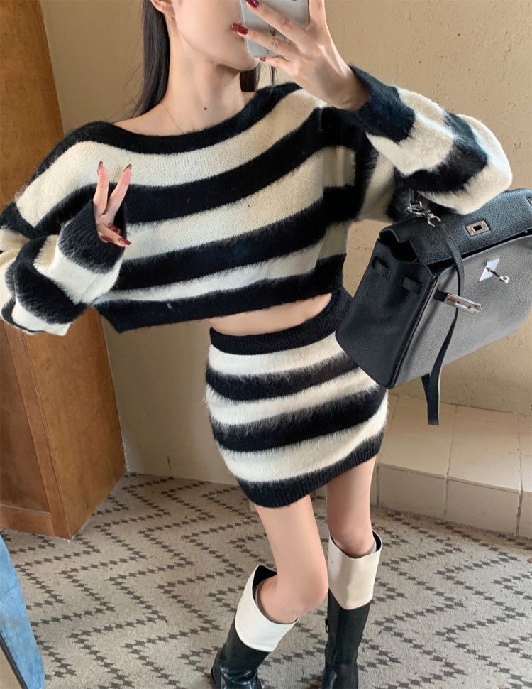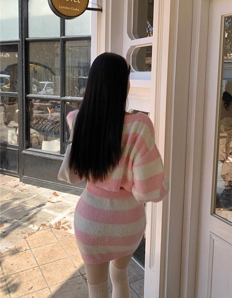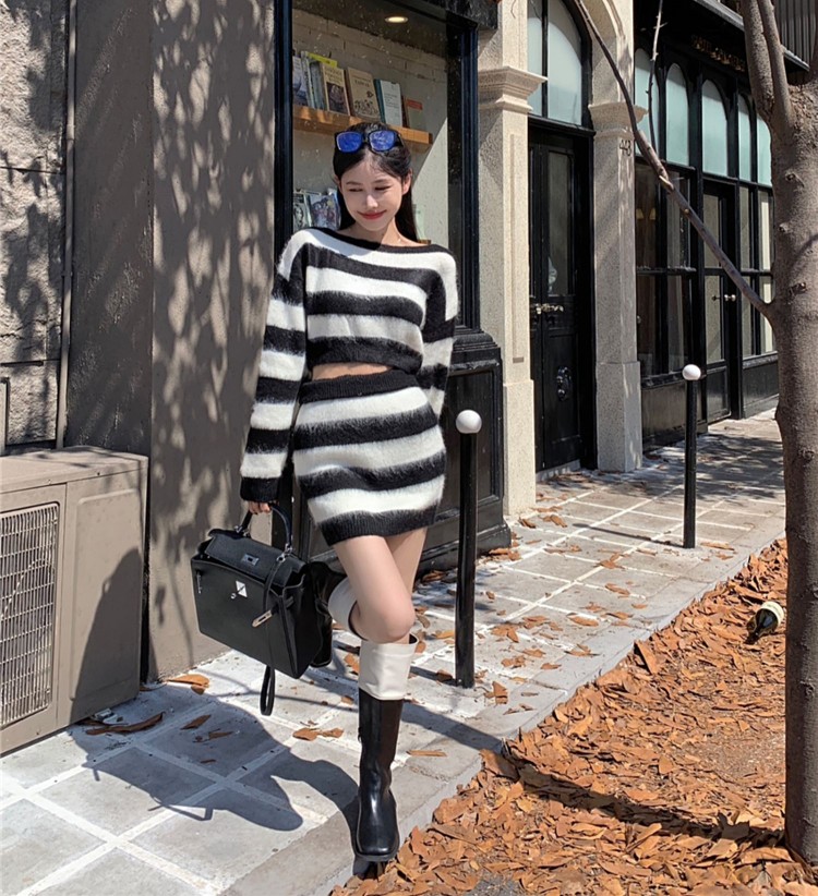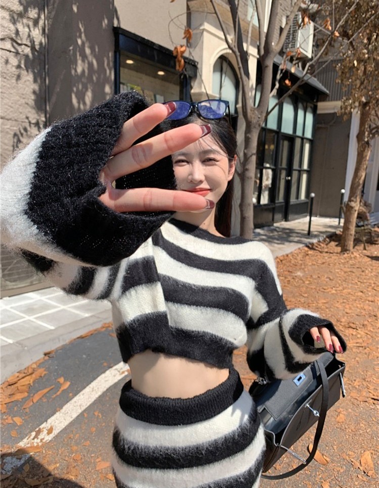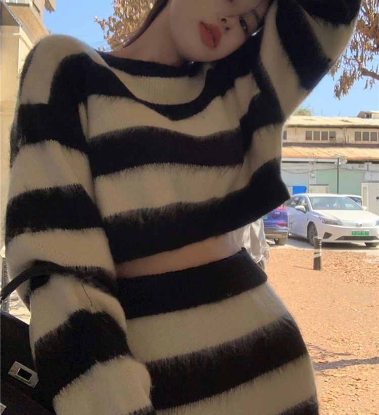Set - Raido Dangara Crop Knit Two-Piece Set