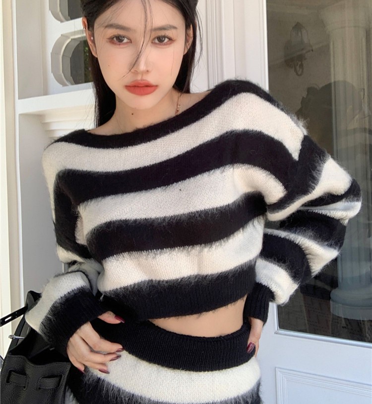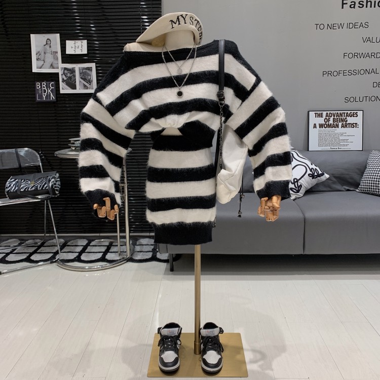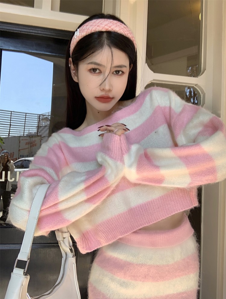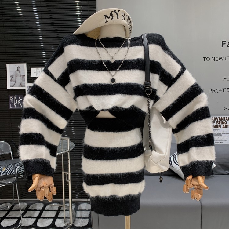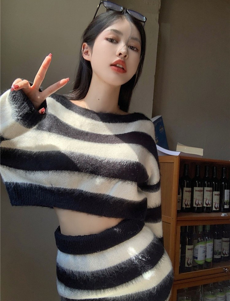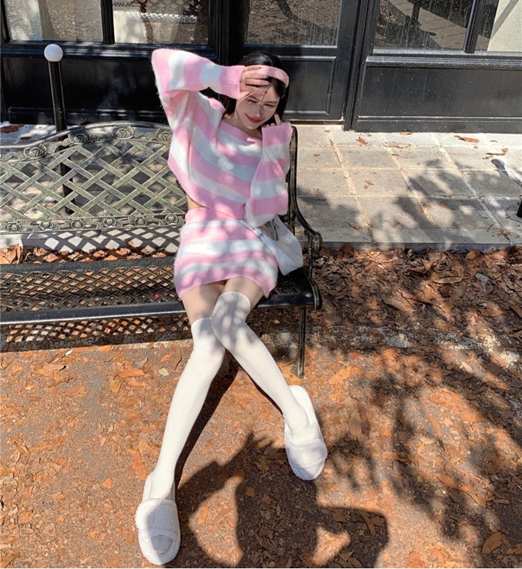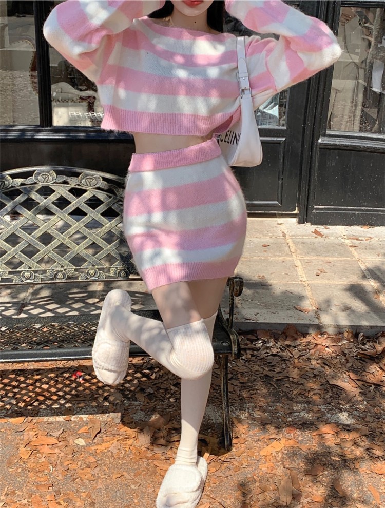 Set - Raido Dangara Crop Knit Two-Piece Set