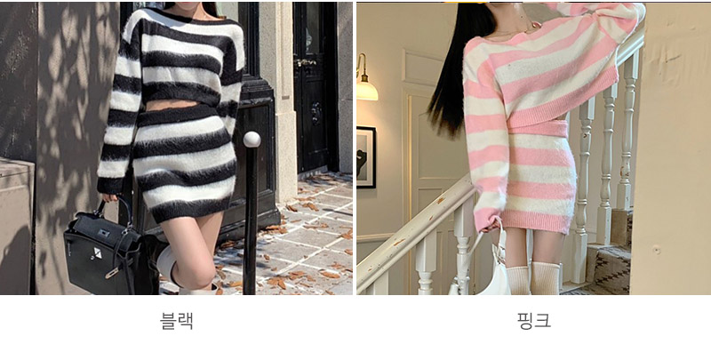 Set -  라이도 단가라 크롭니트 투피스 세트