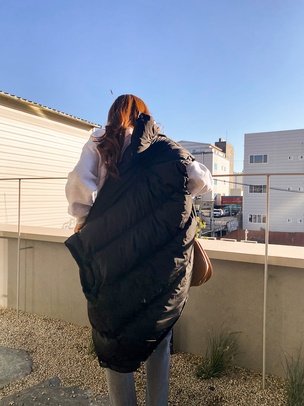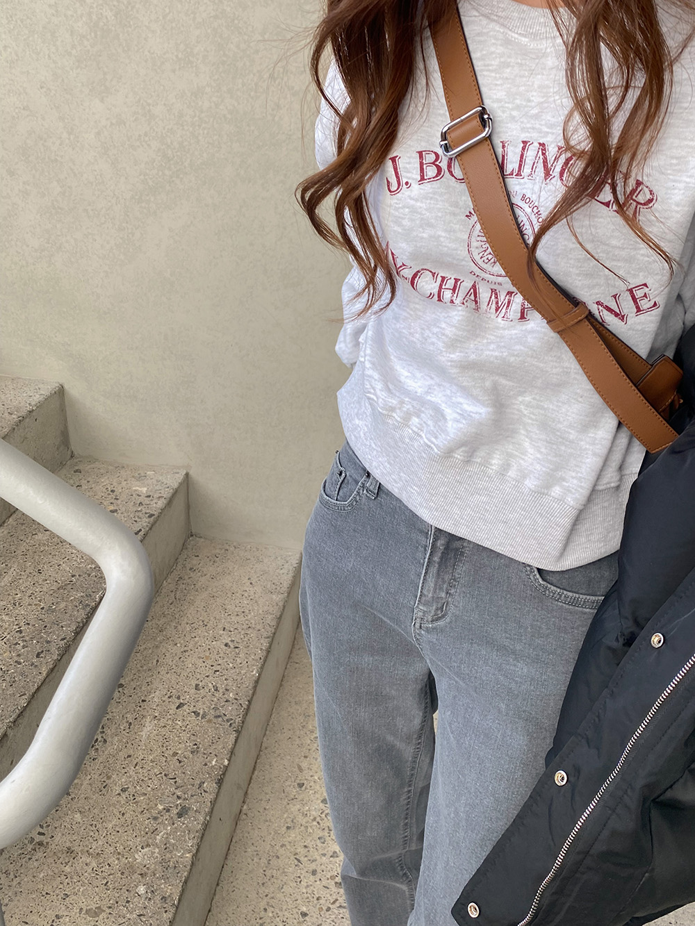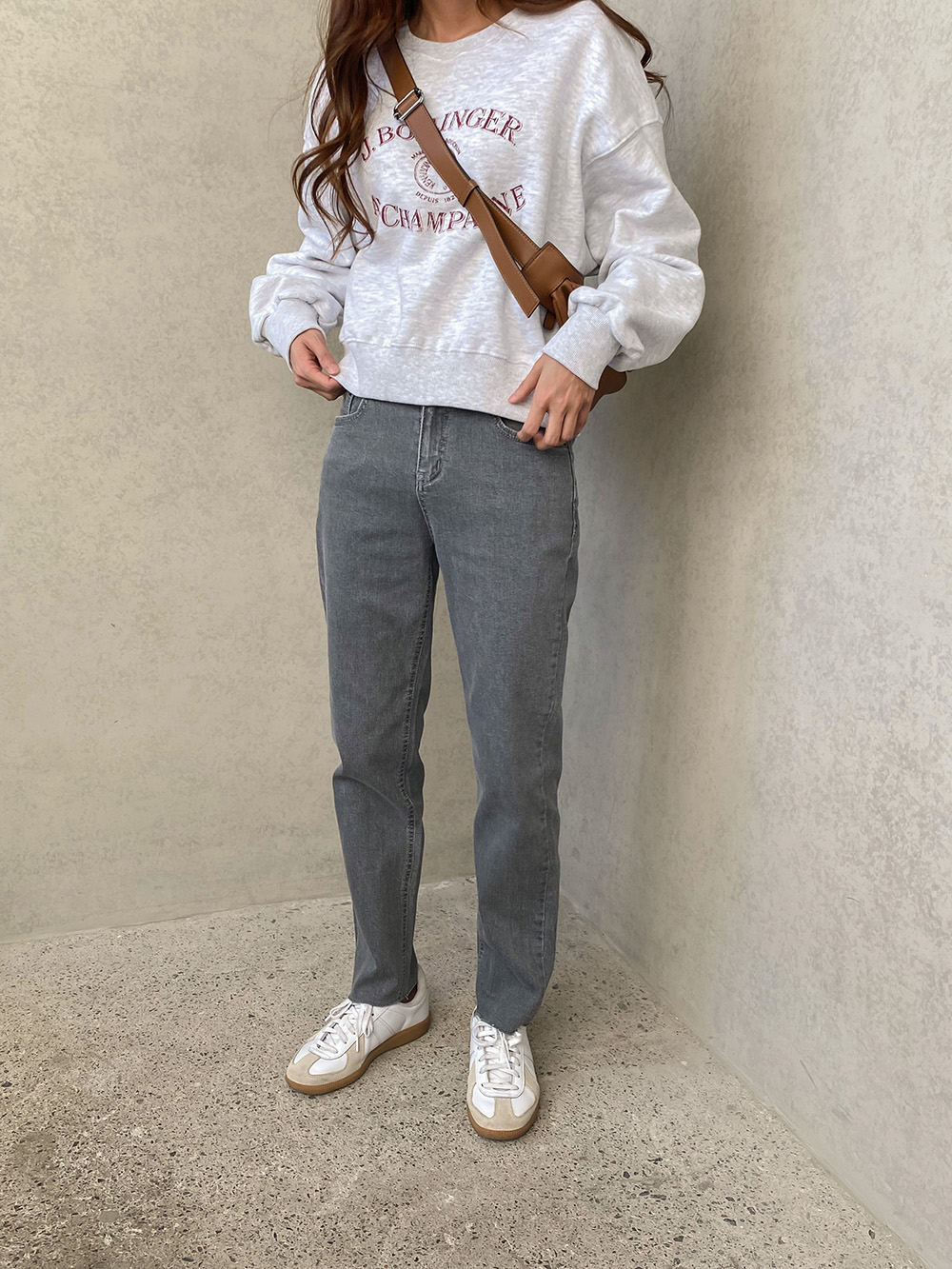 모델 기준 발목을 가려주는 세미 롱 기장감으로