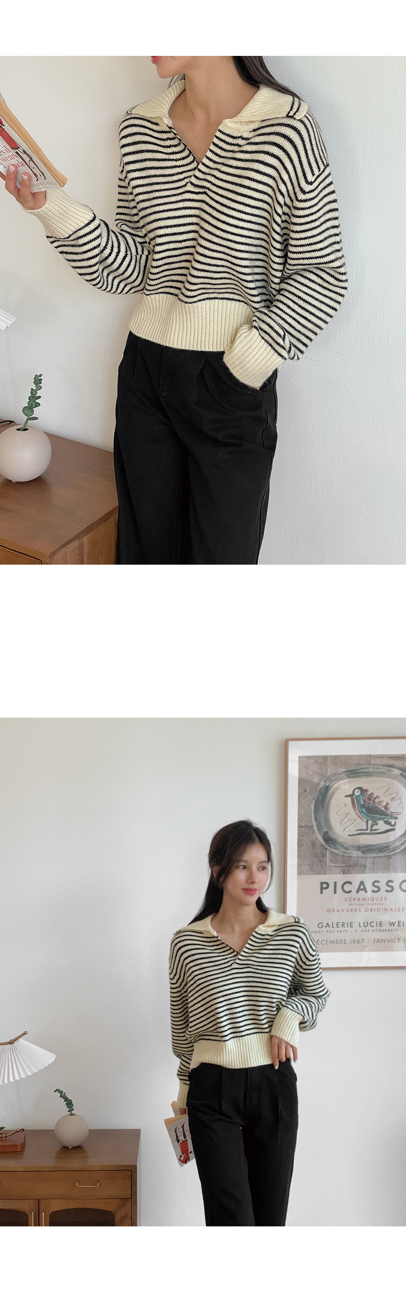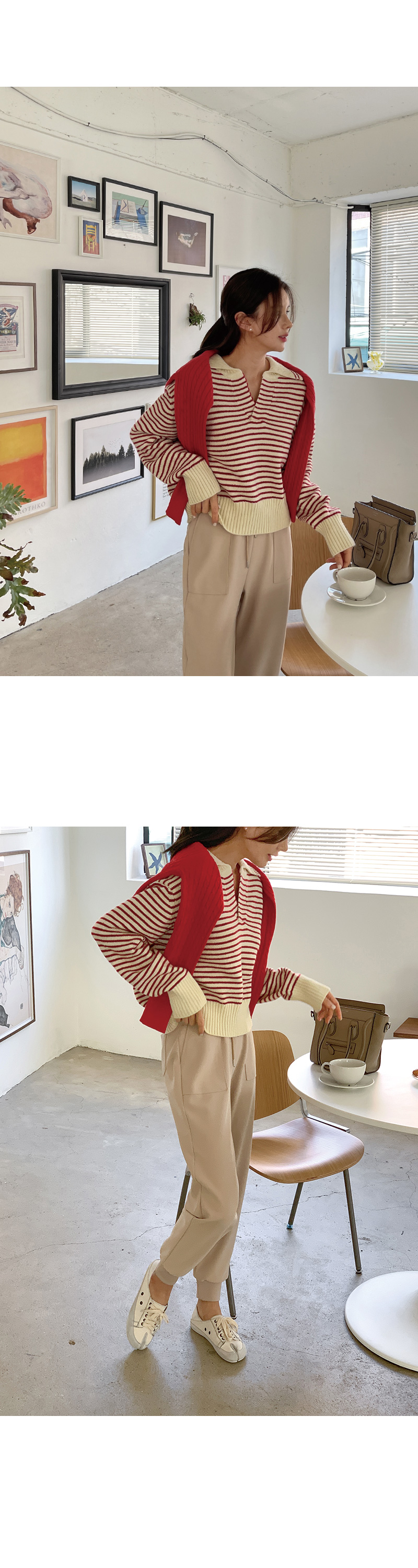 단가라 패턴 카라 니트 소개드려요~