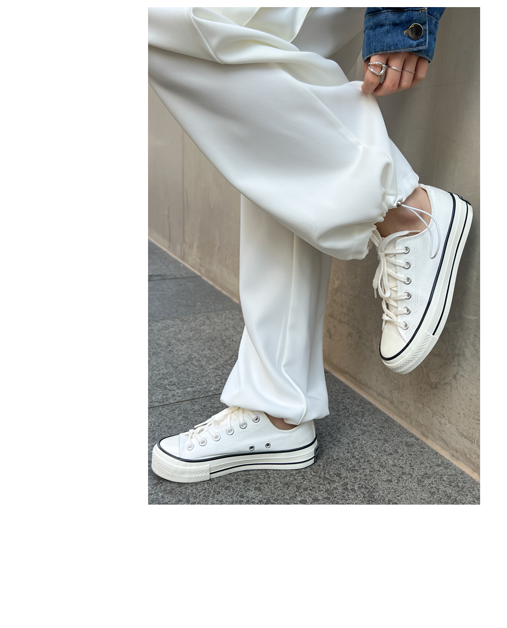 밑단 스트링 디테일로 조여 조거로도 입을 수 있어