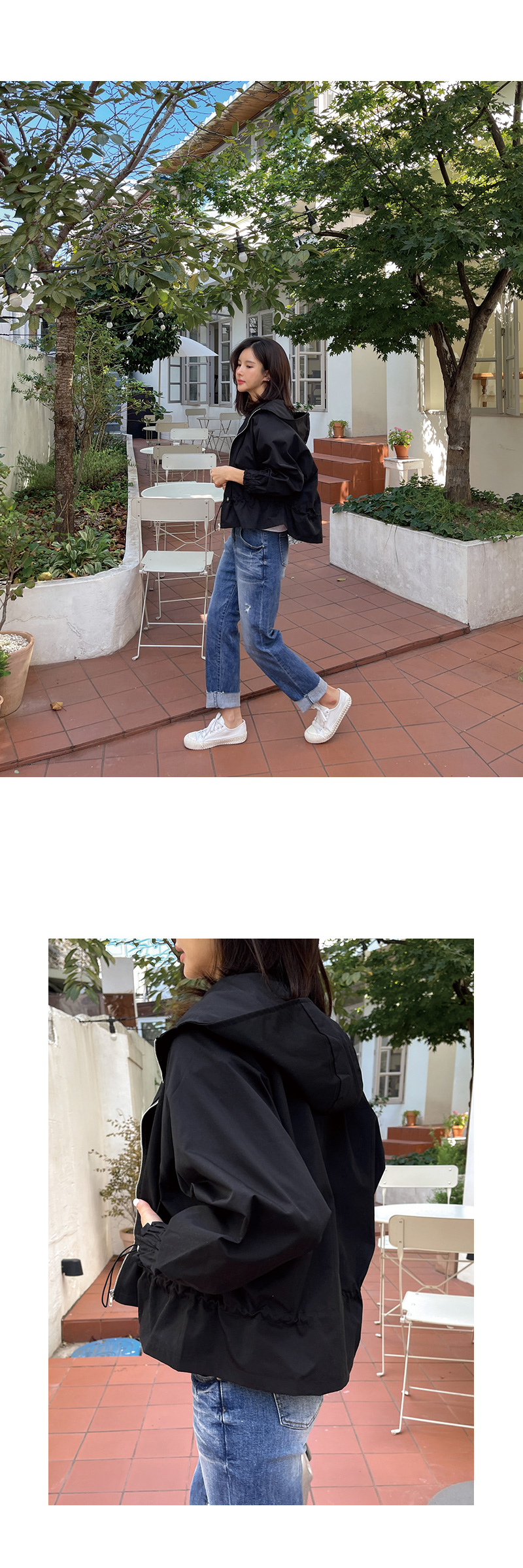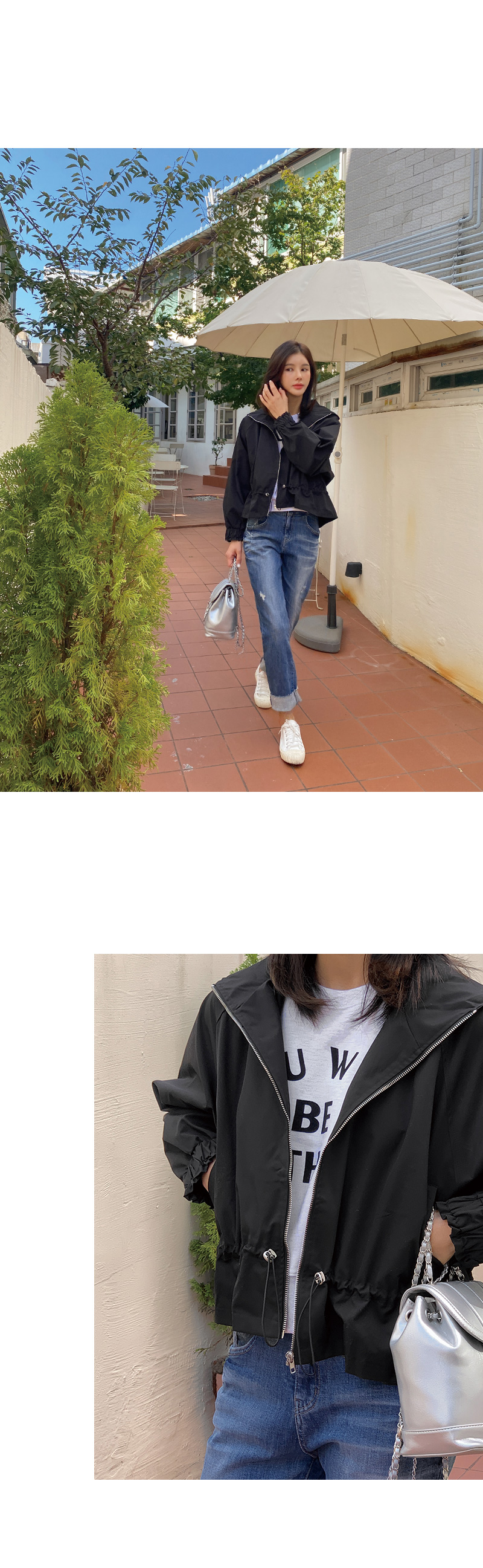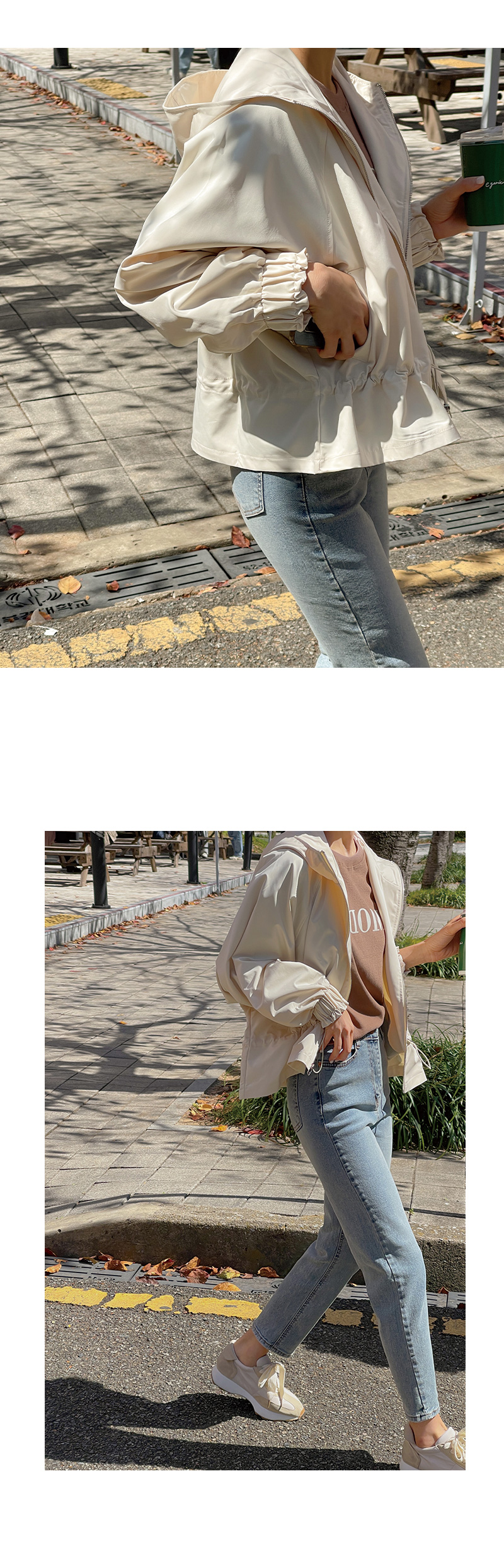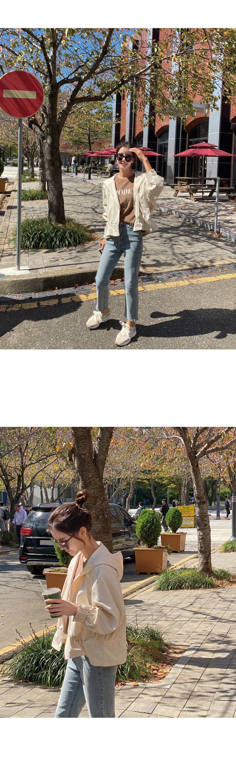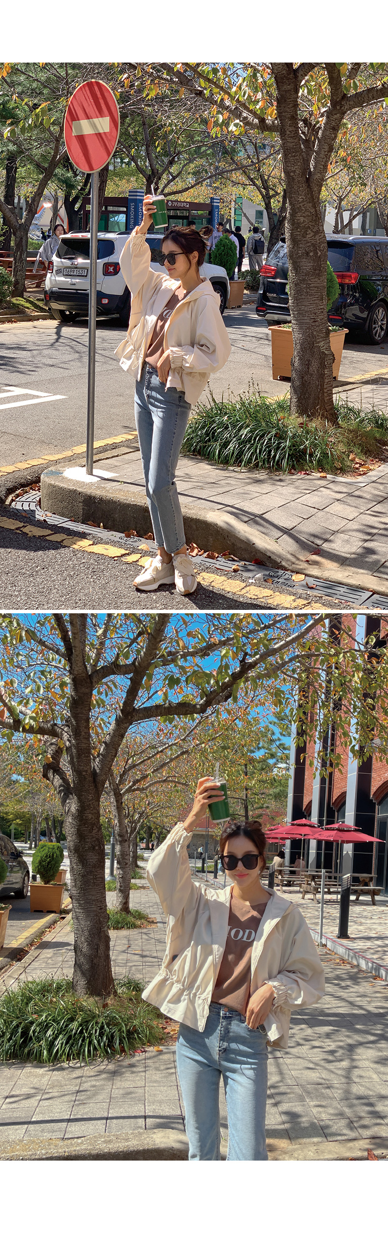 캐주얼한 감성의 후드 집업 스타일로