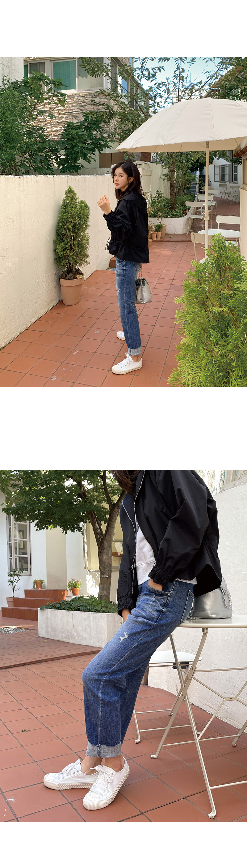 크롭한 기장감과 허리를 날씬하게