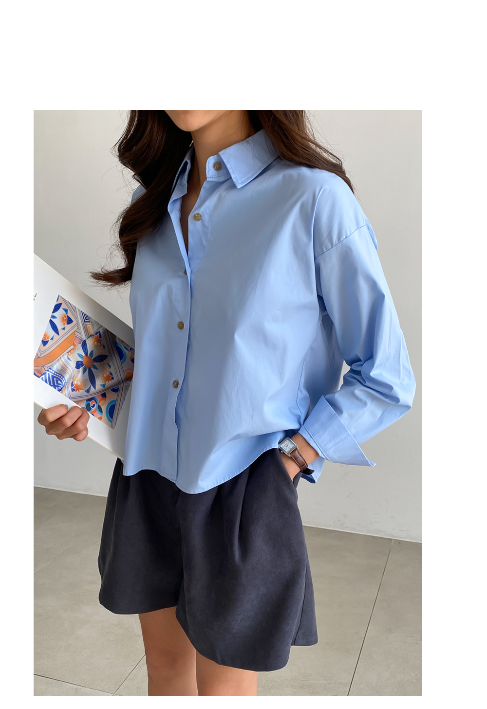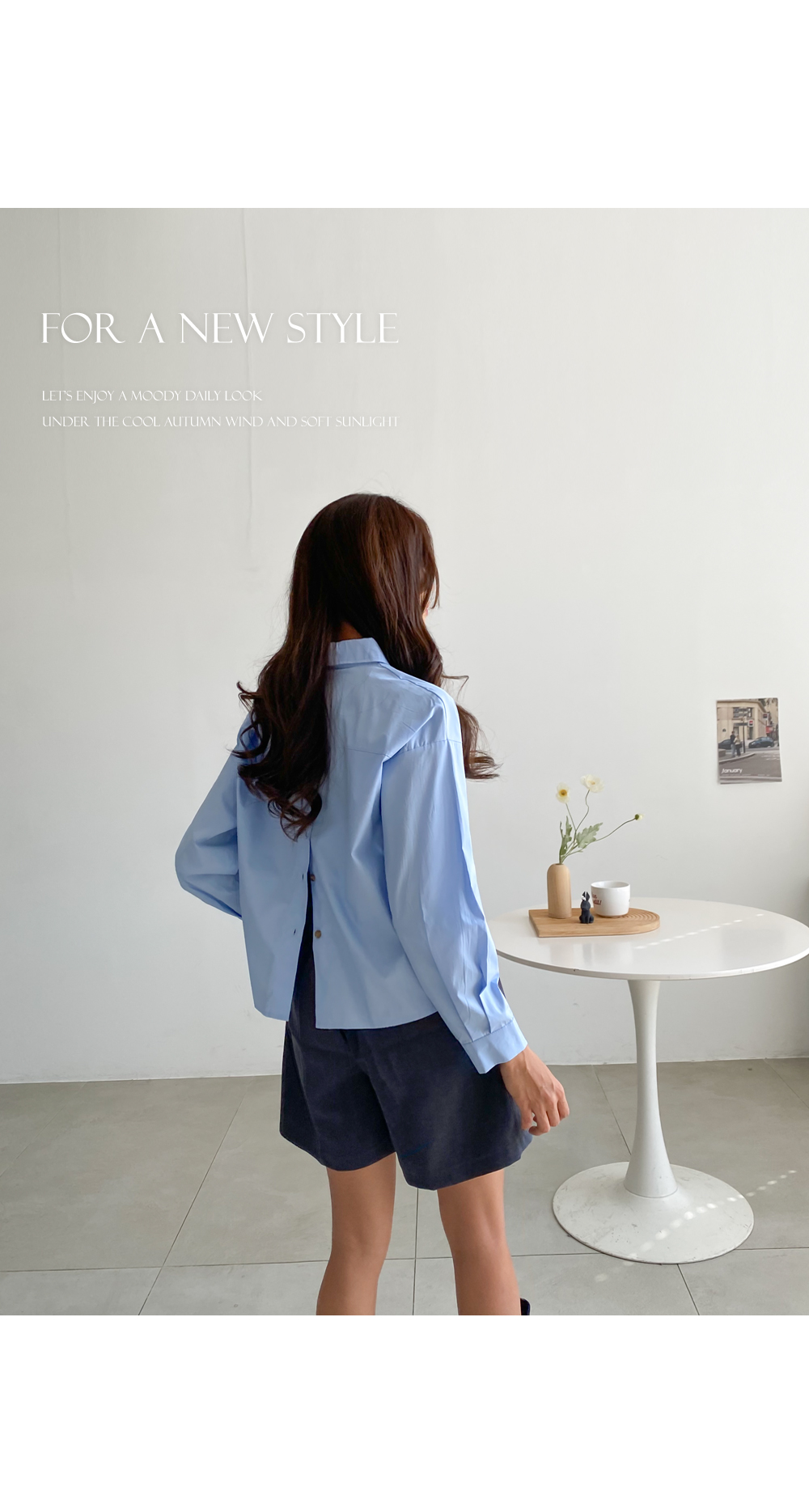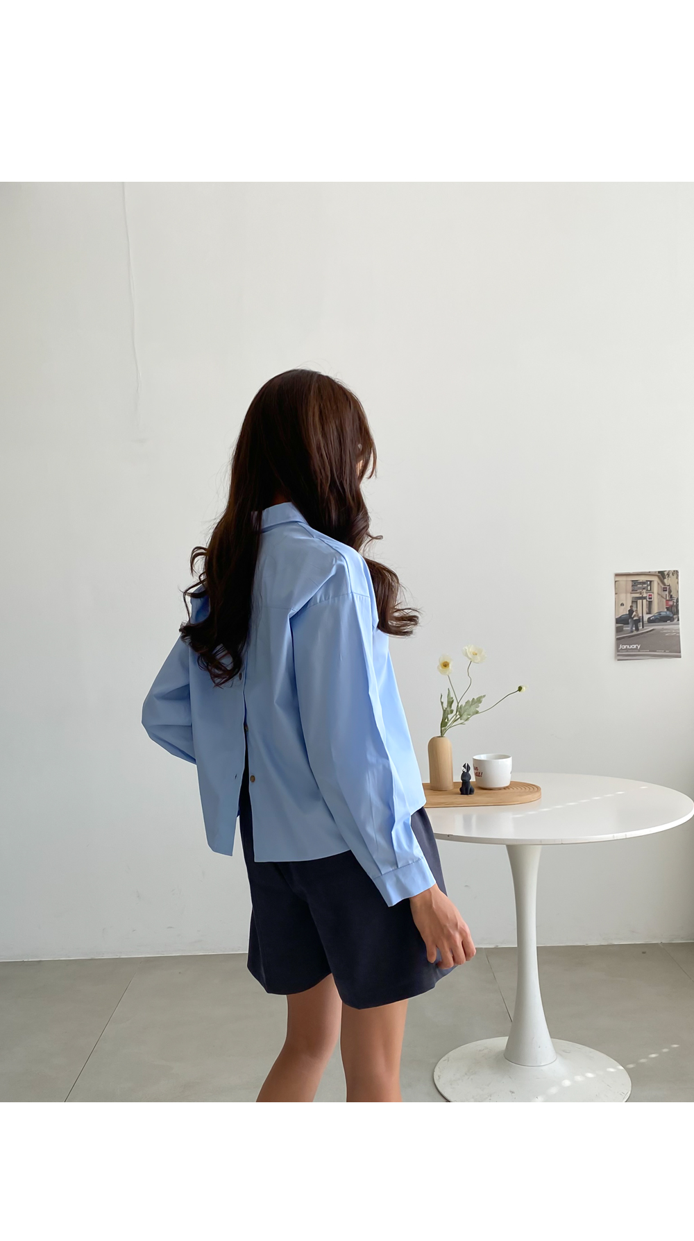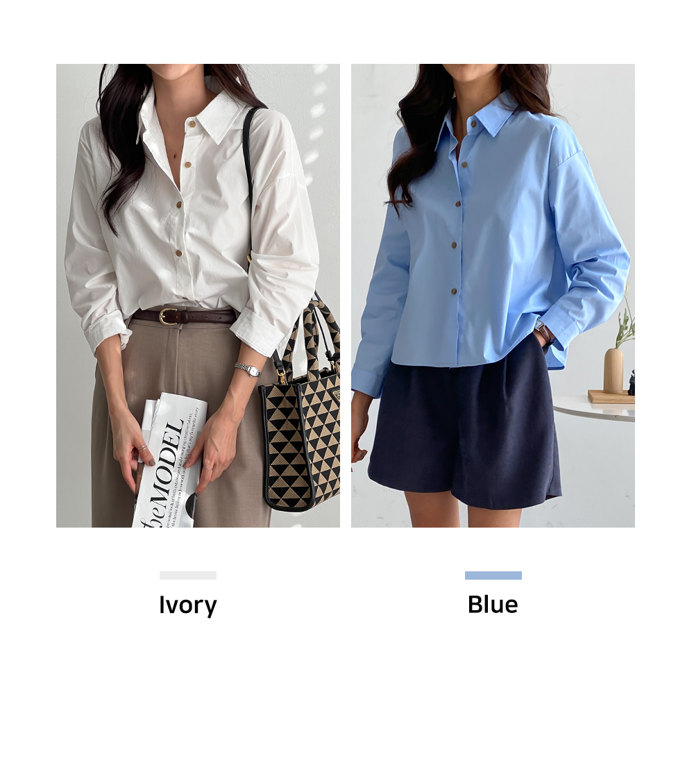 뒷트임 크롭 카라 셔츠 #49411