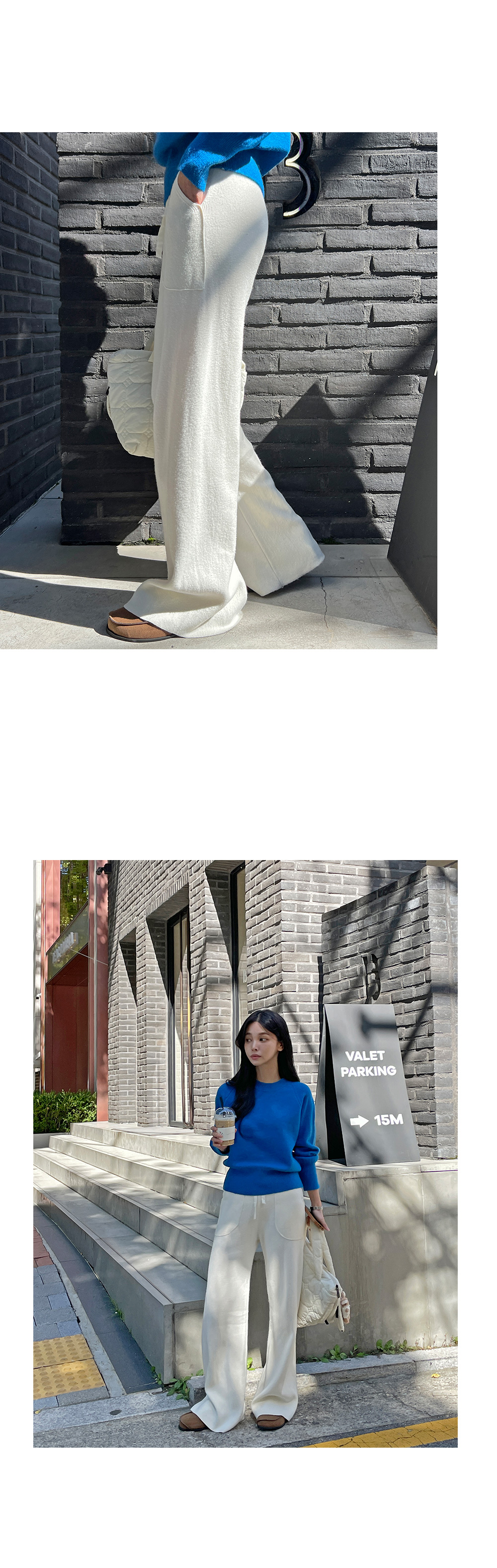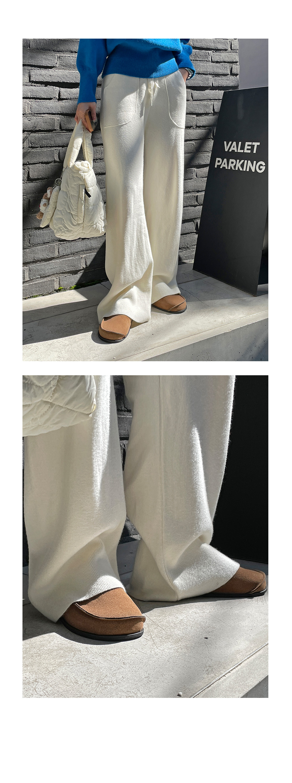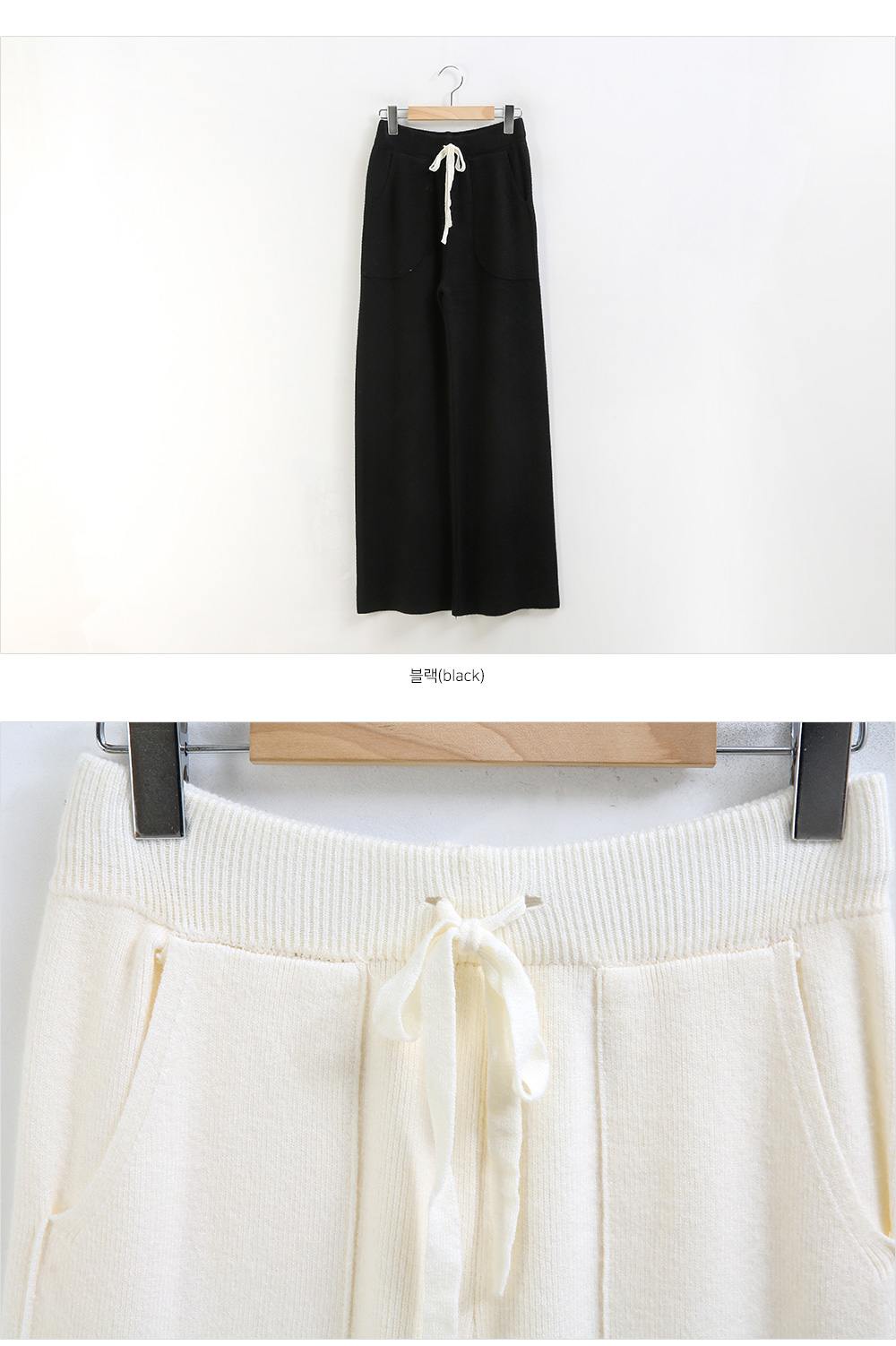 허리 스트링 밴드 니트 롱 와이드 팬츠 #22397