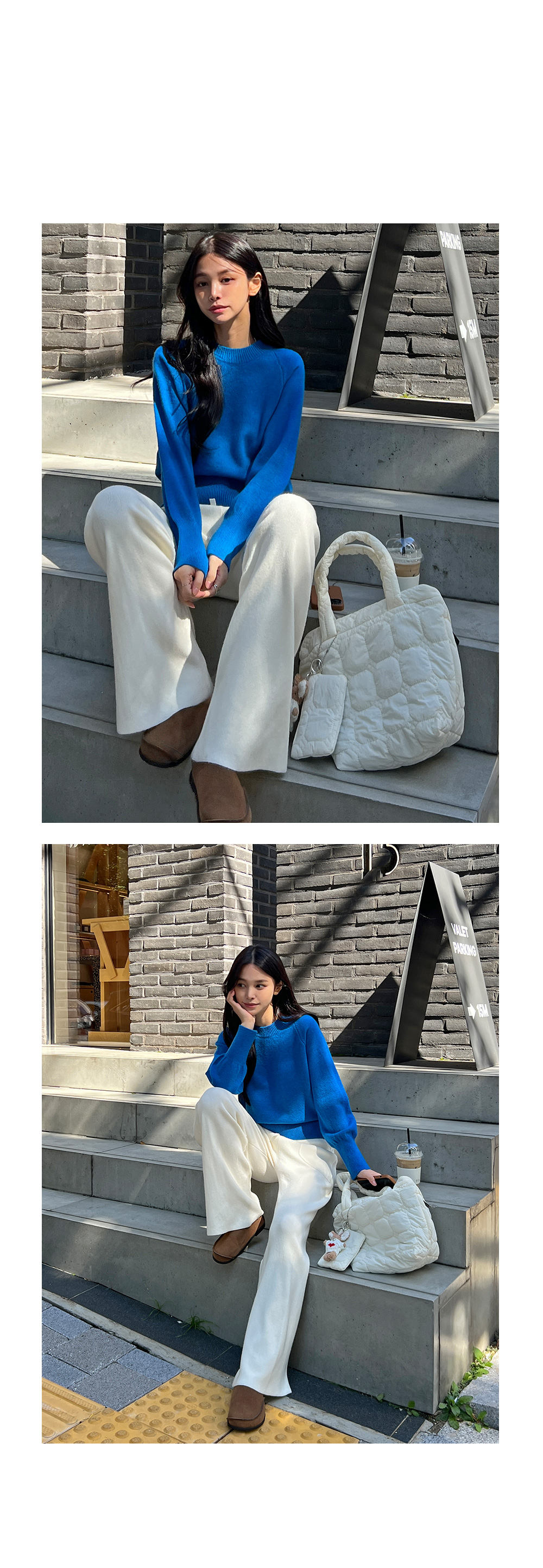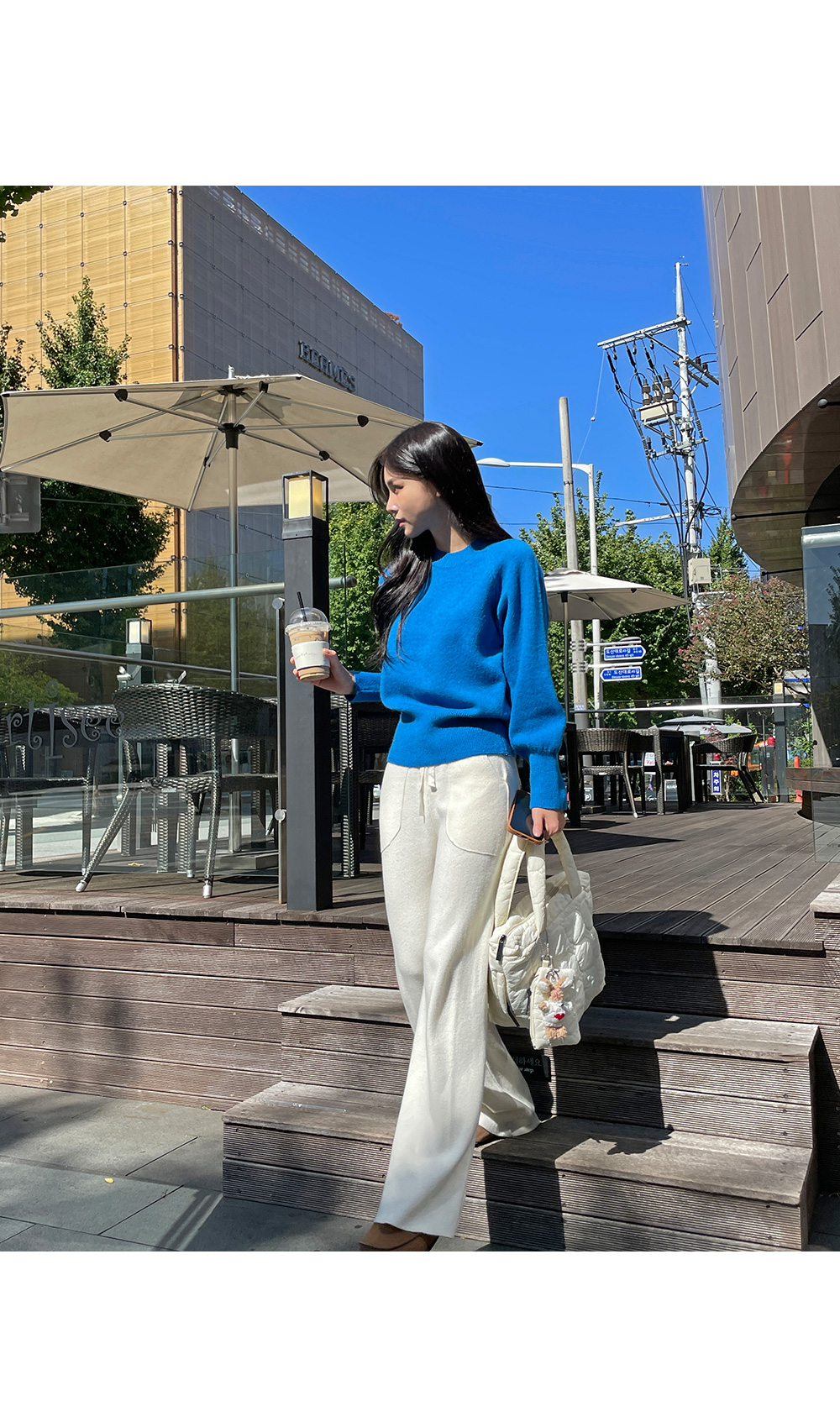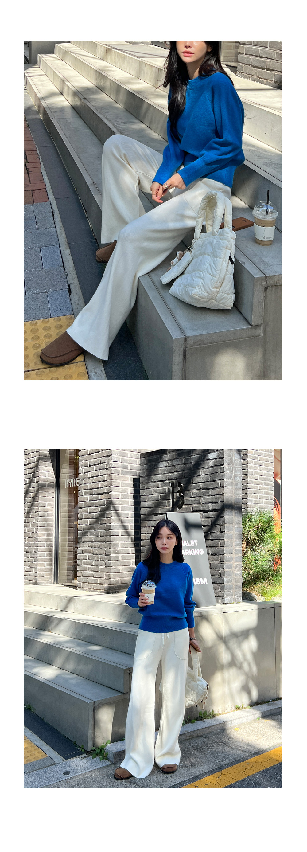 허리 스트링 밴드 니트 롱 와이드 팬츠 #22397
