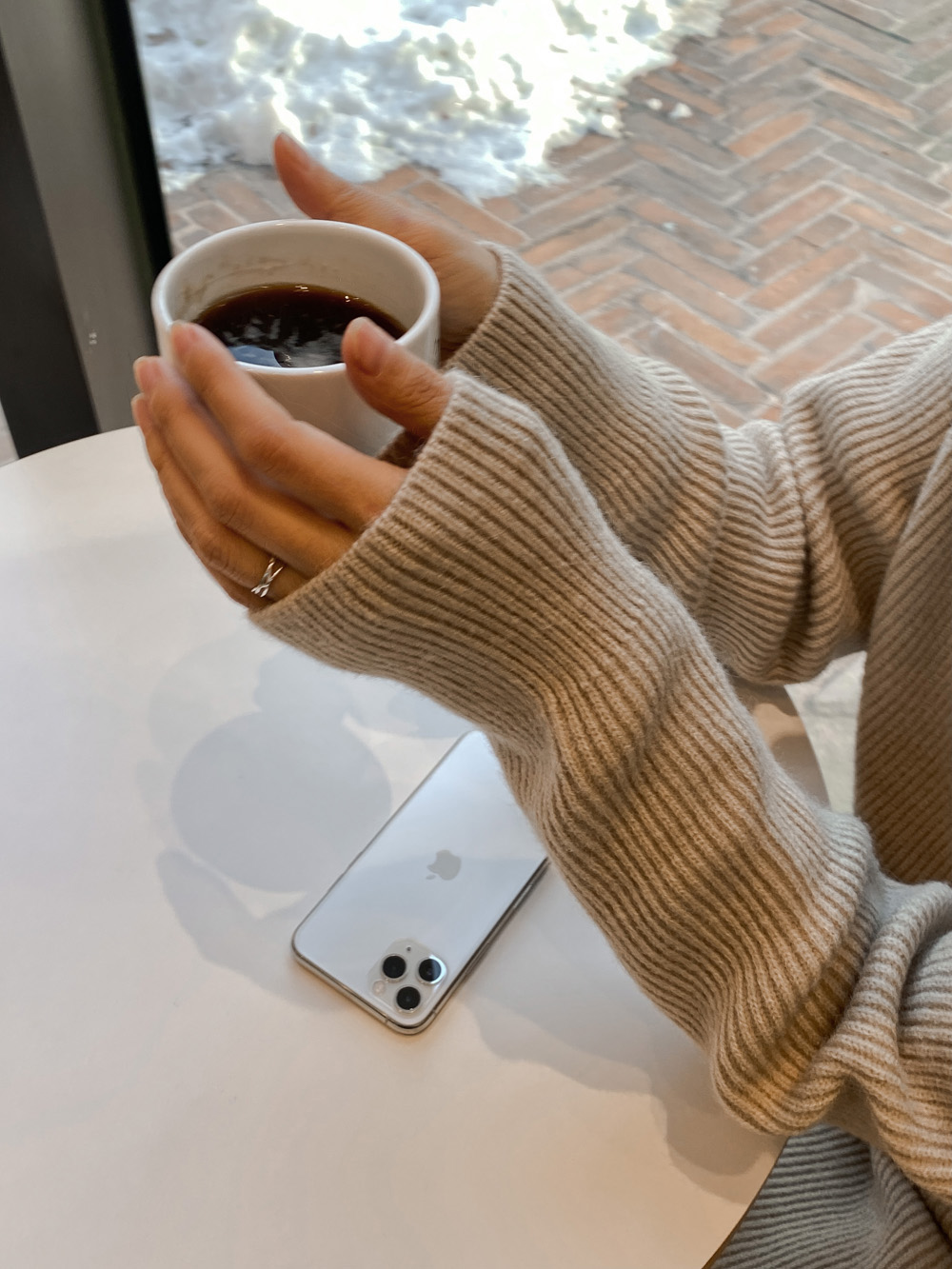 도톰한 골지짜임의 니트소재로