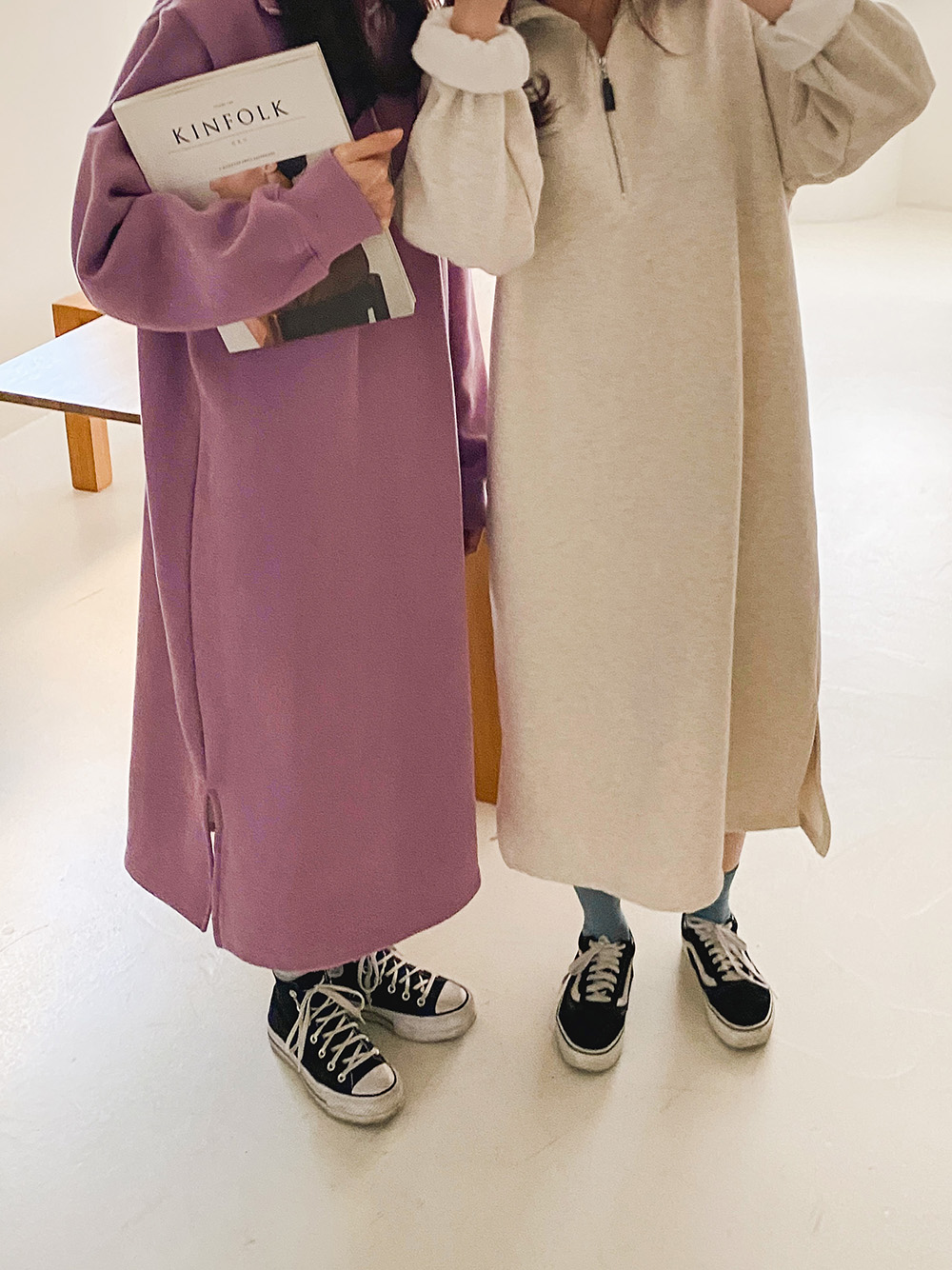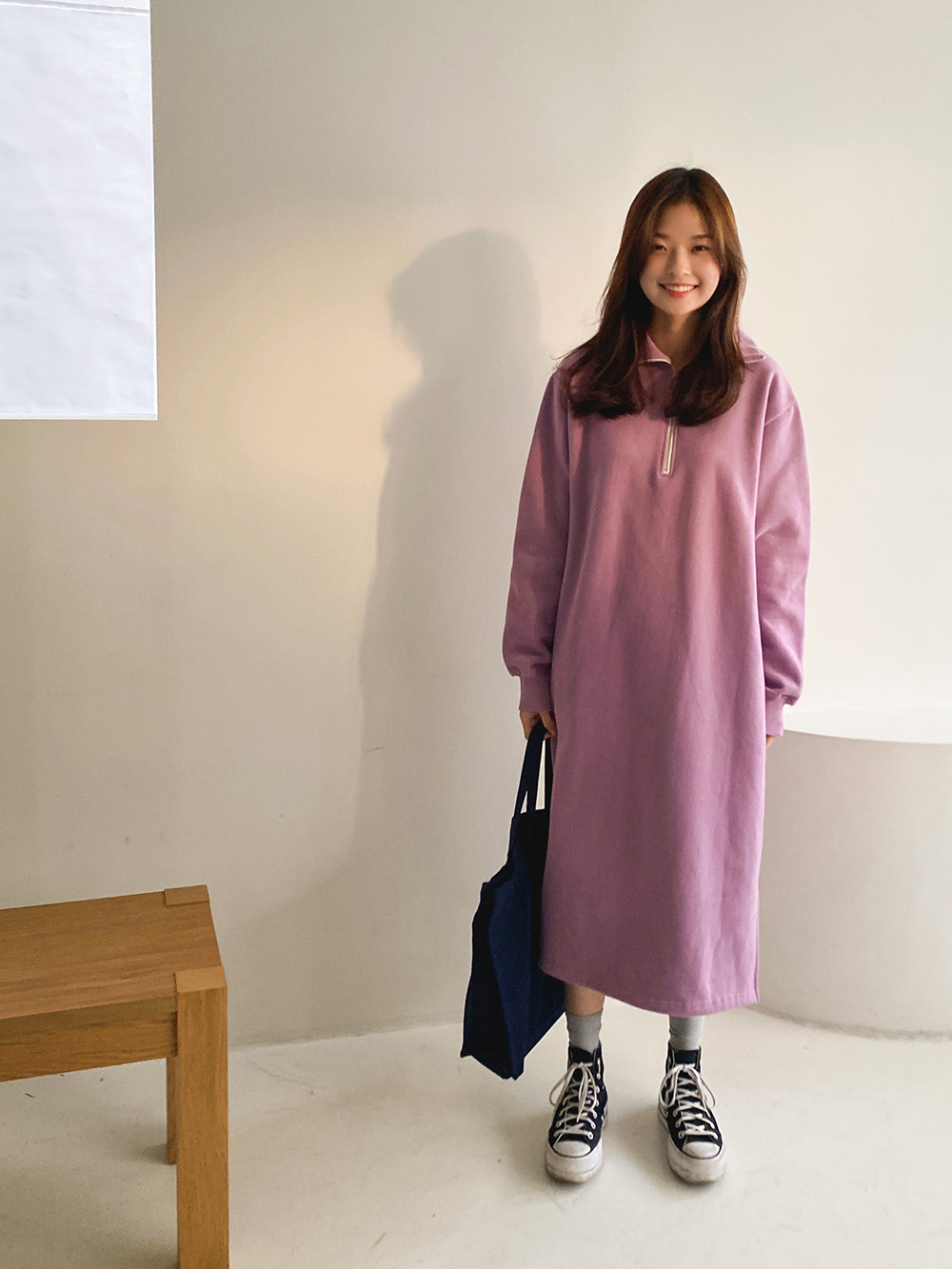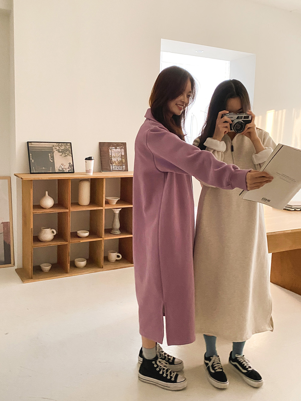 피치 카라집업 기모원피스-4color, 캐쥬얼 무드-따뜻한 데일리 롱원피스 - 스타일티바