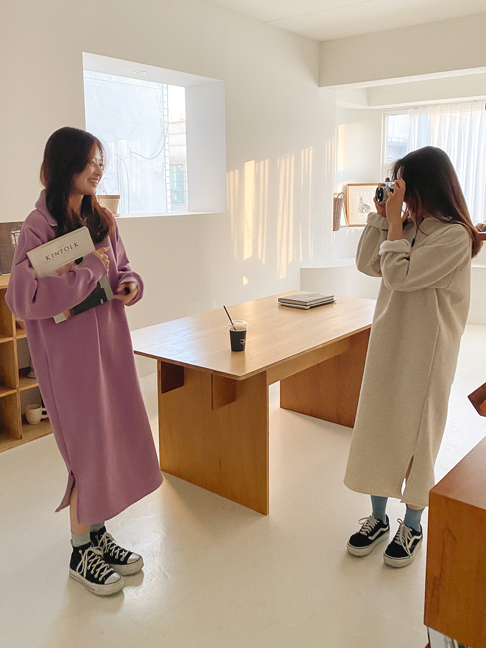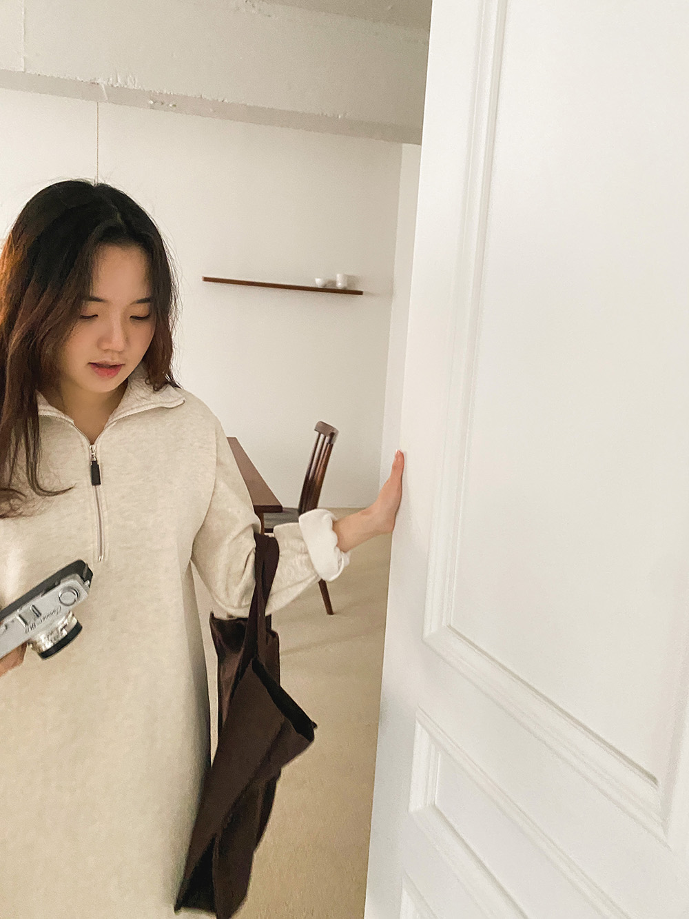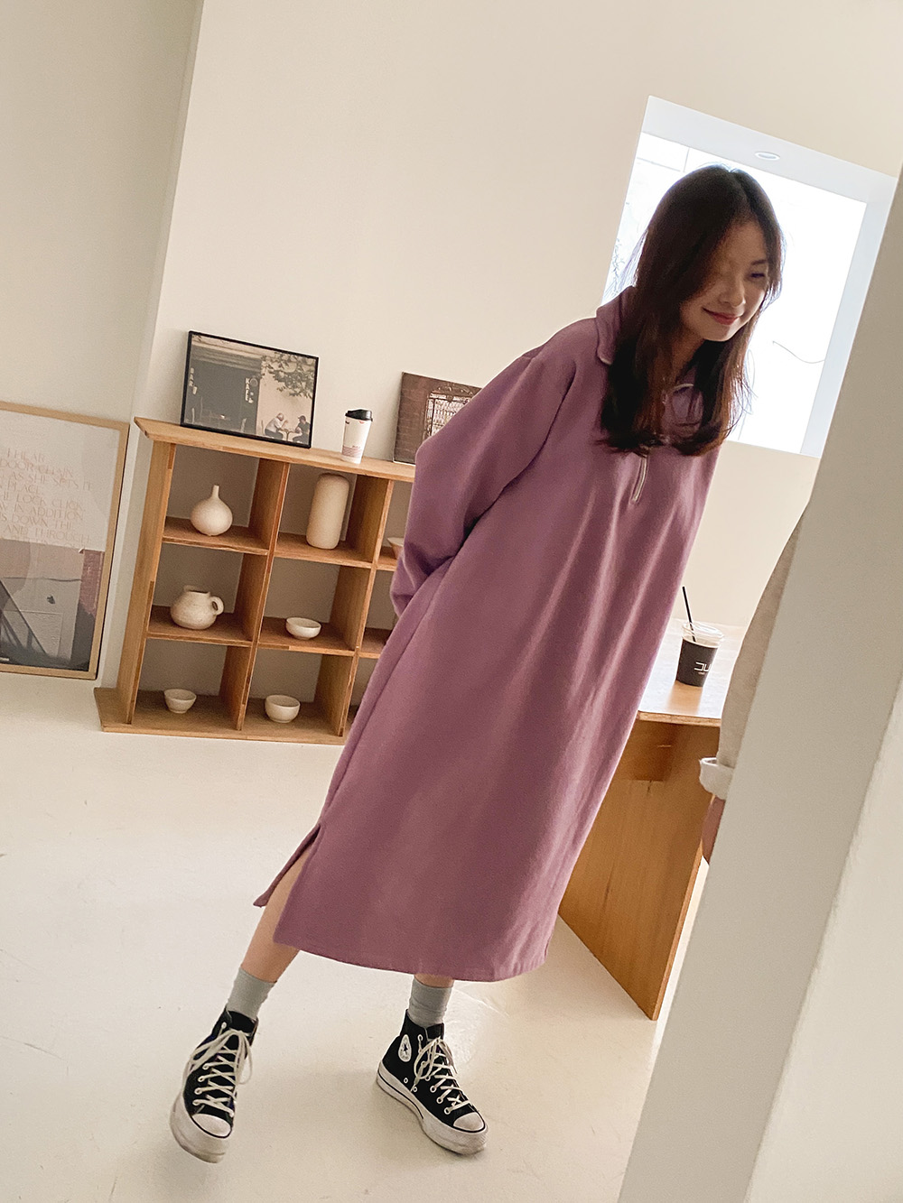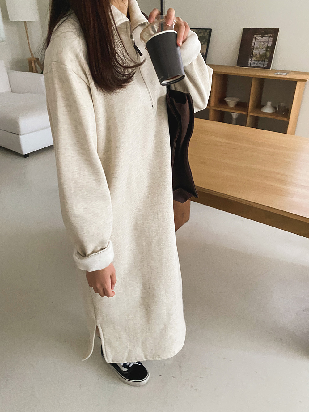 피치 카라집업 기모원피스-4color, 캐쥬얼 무드-따뜻한 데일리 롱원피스 - 스타일티바