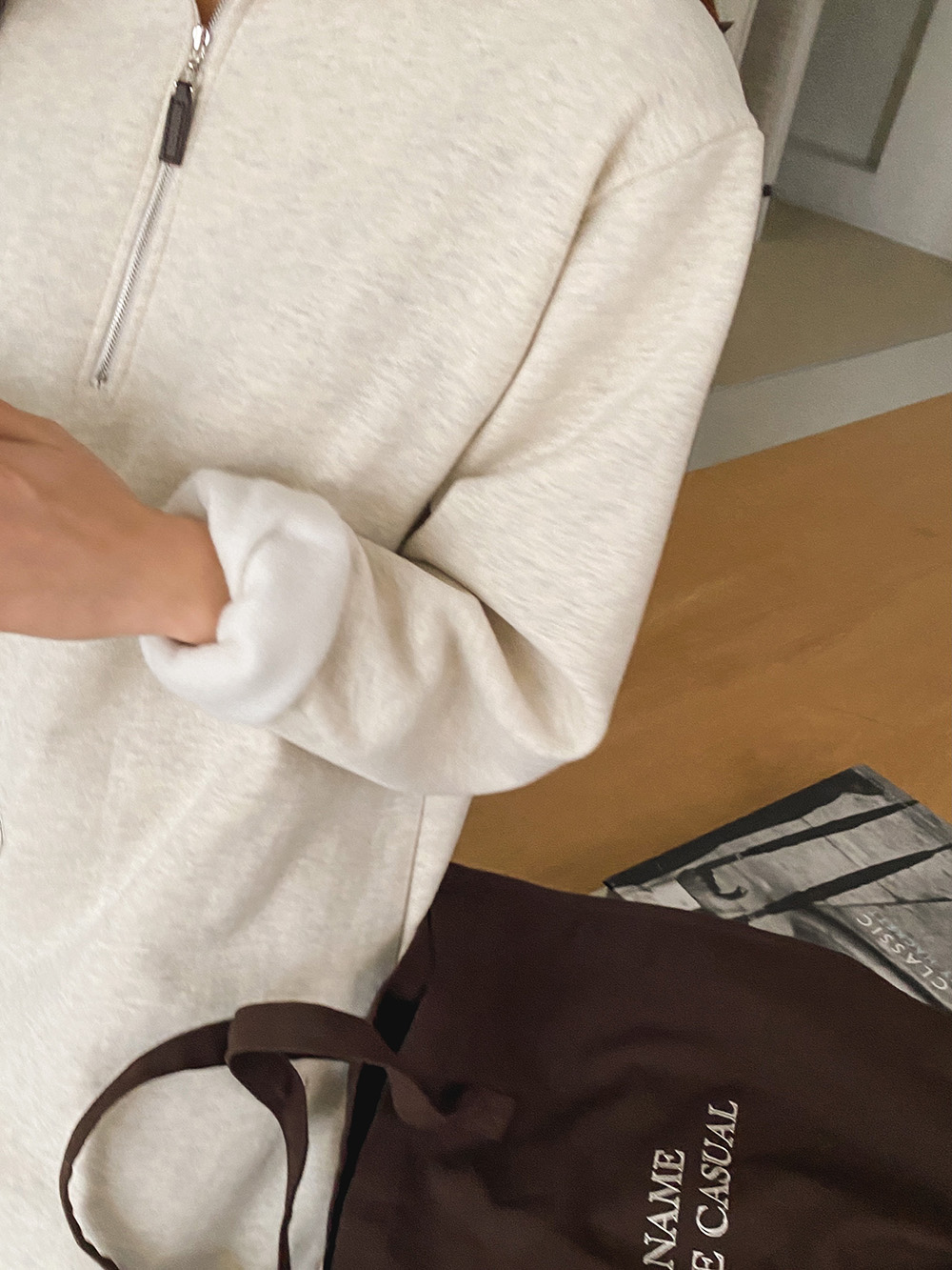 Peach collar zip-up brushed dress-4color, casual mood-warm daily long dress - Style Tiva