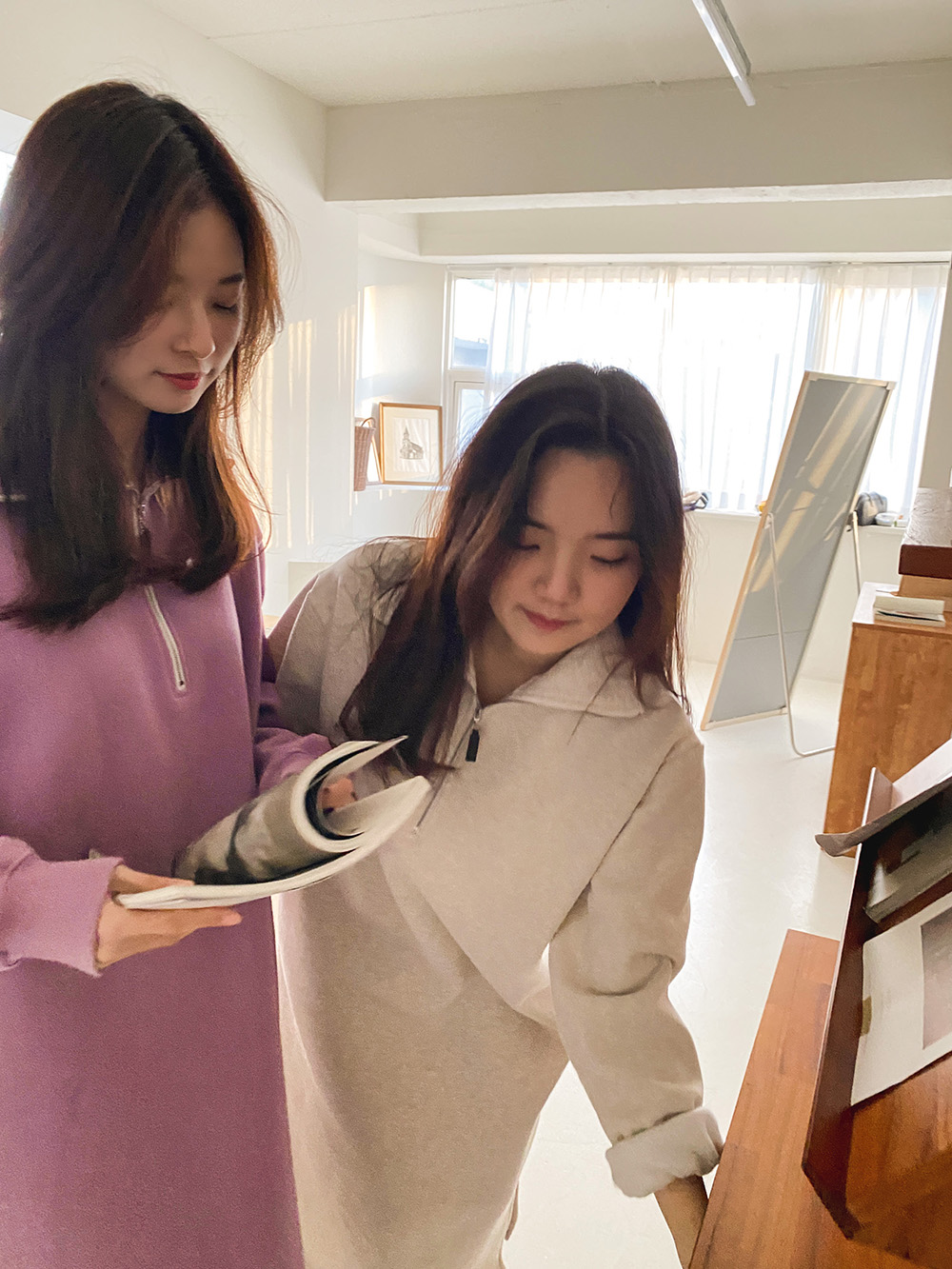 모델착용색상 : 165cm 모델기준-퍼플/ 162cm 모델기준-오트밀
