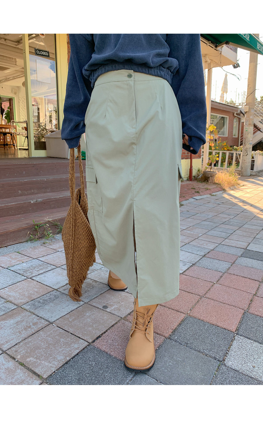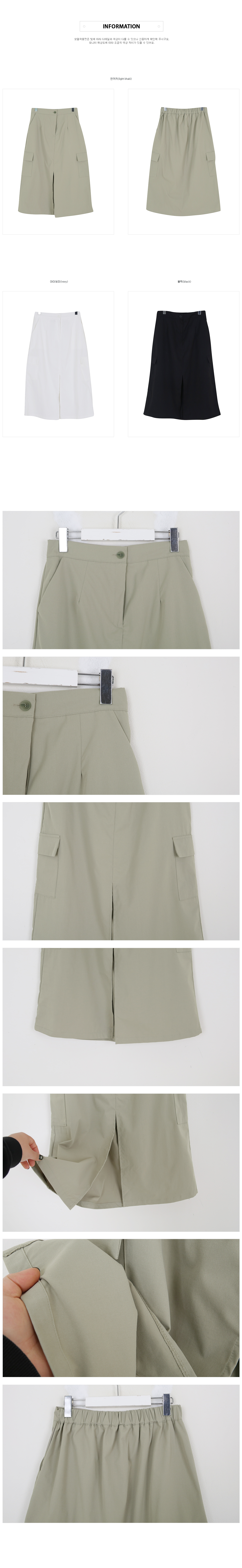 Olive cargo banding slit long skirt