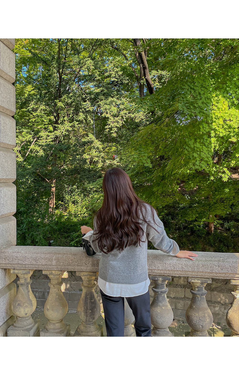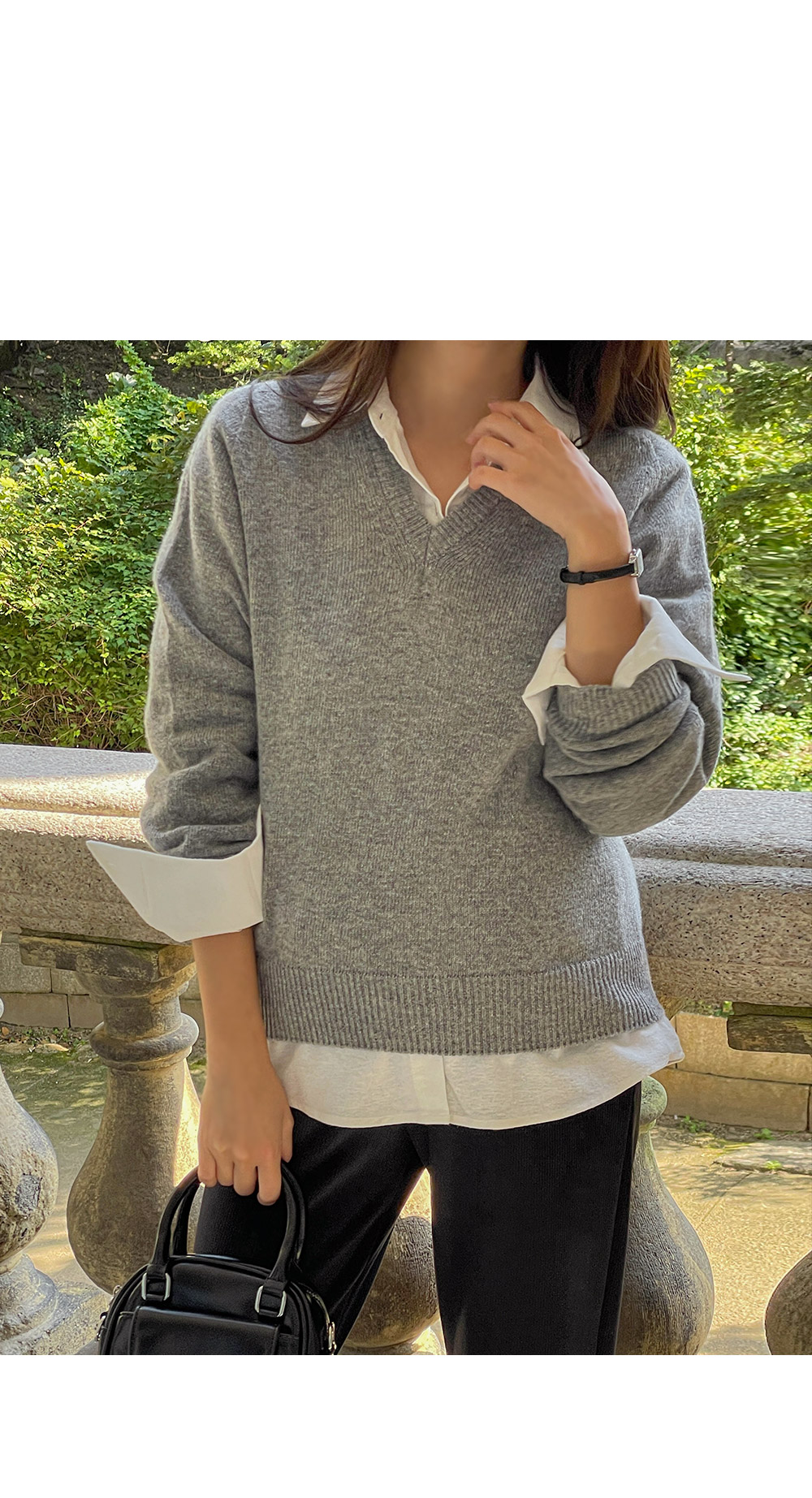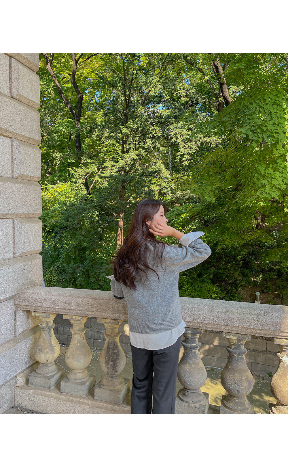 슬림한 브이넥으로 여리한 무드로 연출해준답니다.