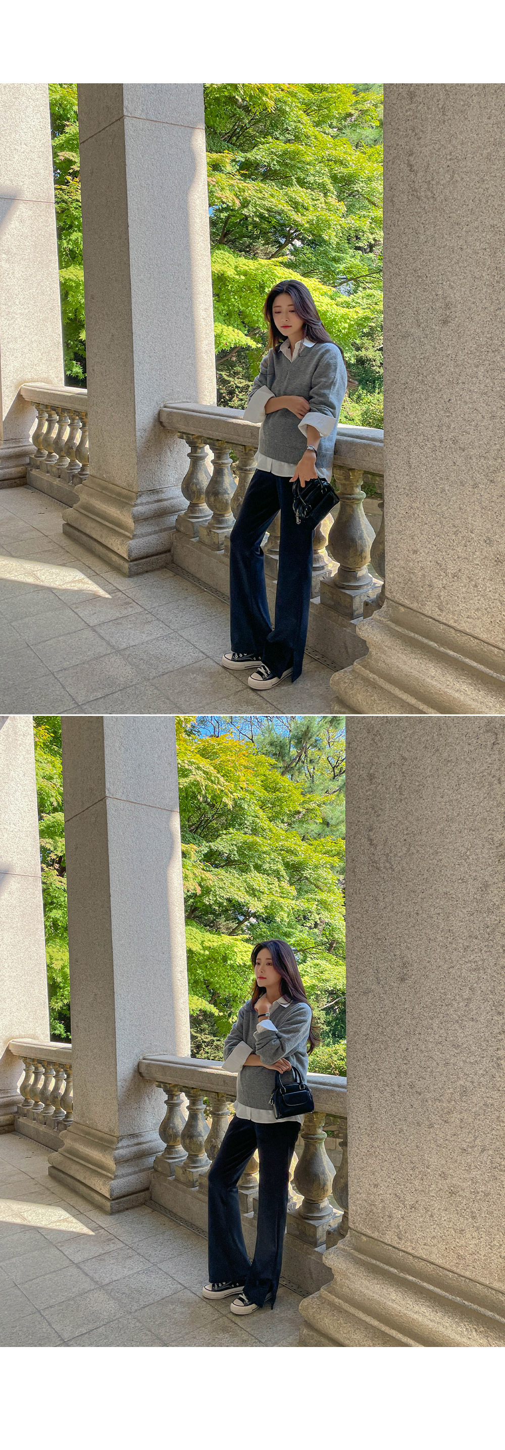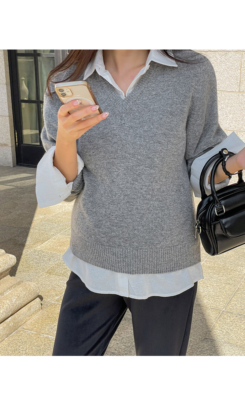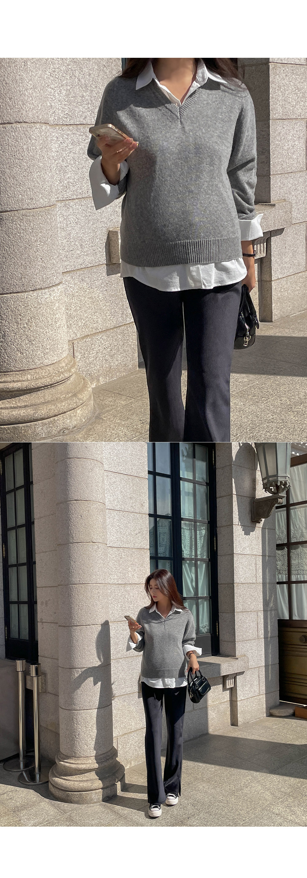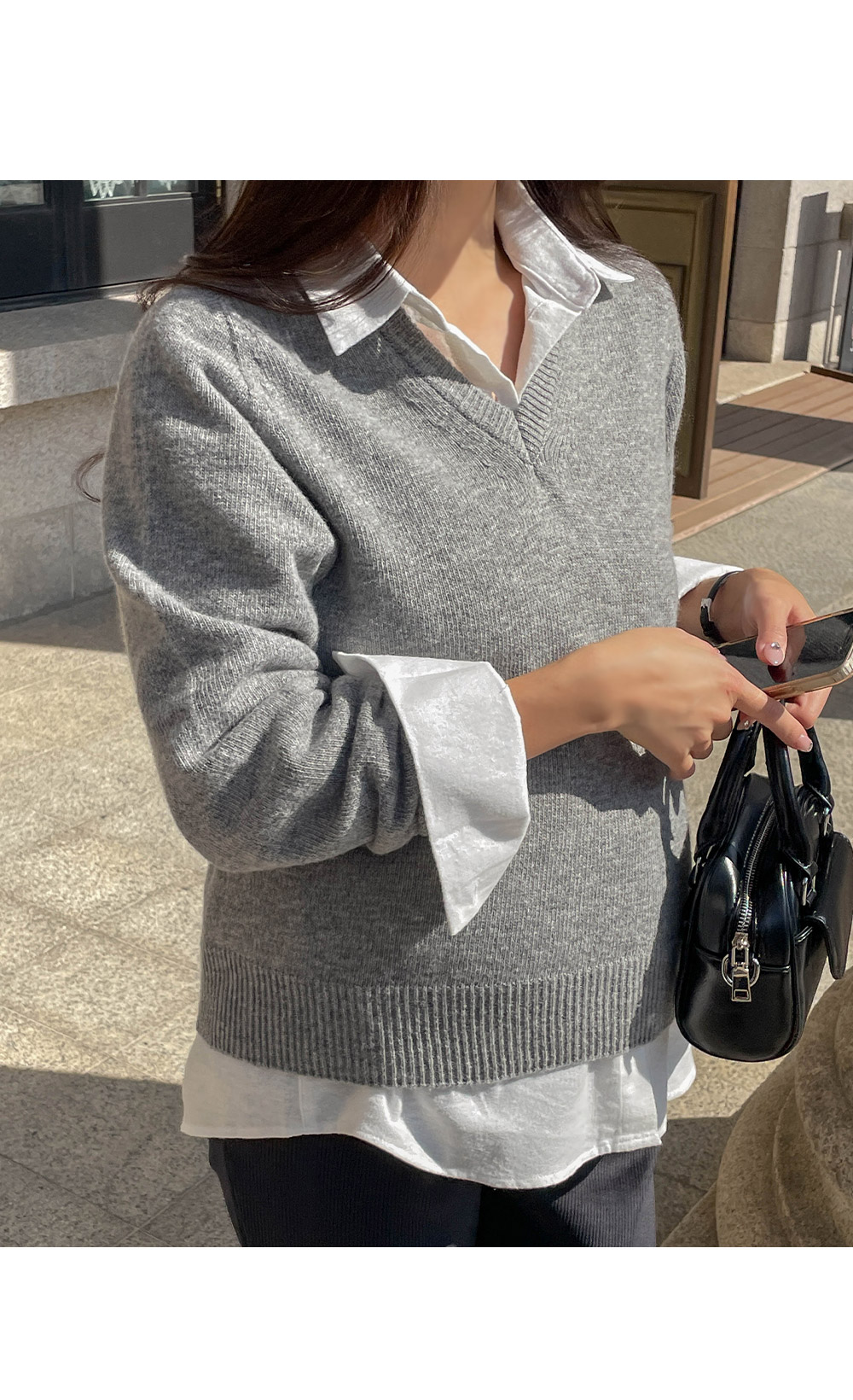 슬림한 브이넥으로 여리한 무드로 연출해준답니다.