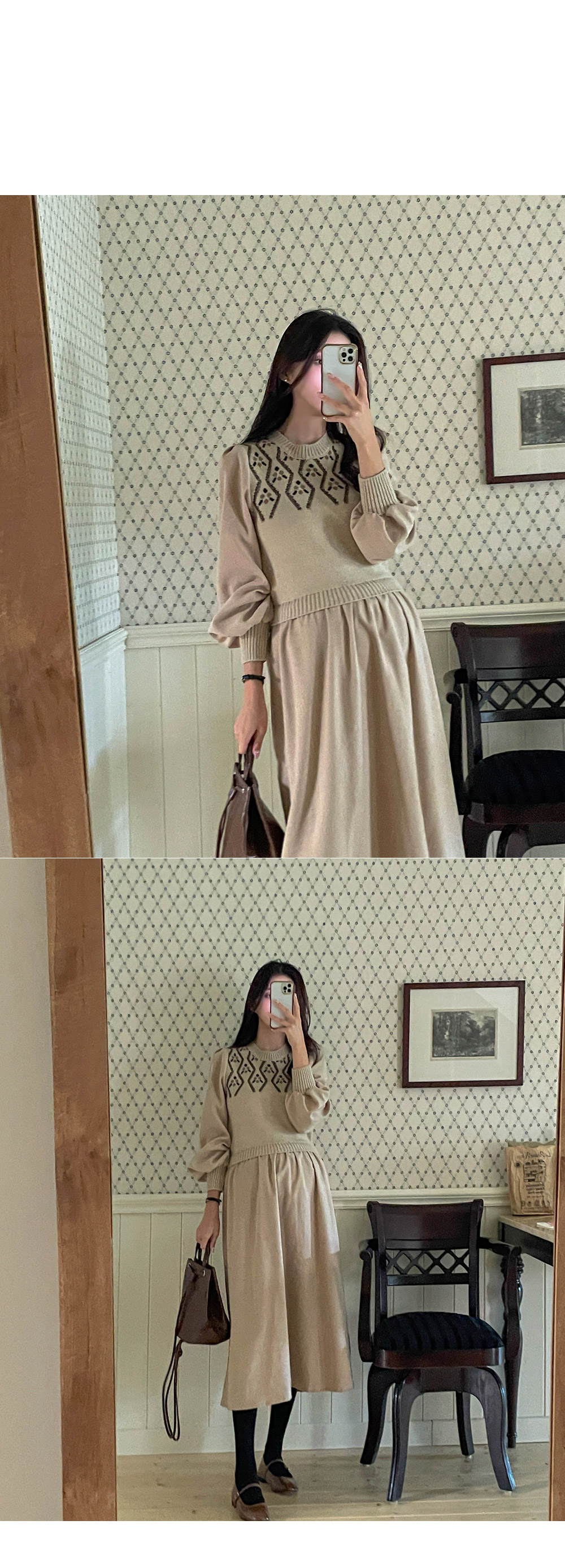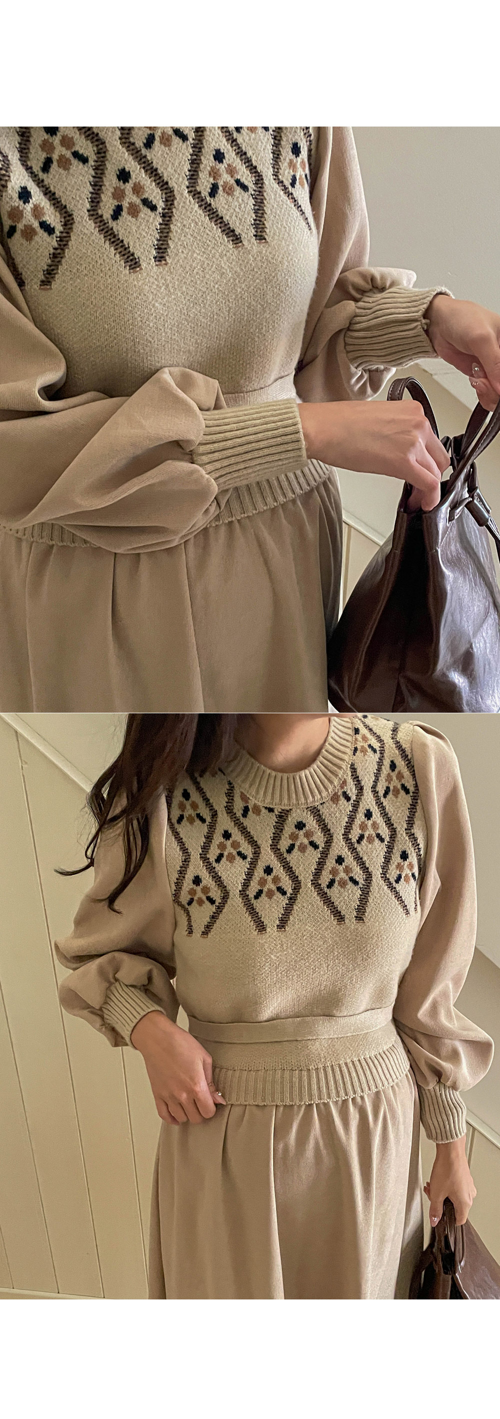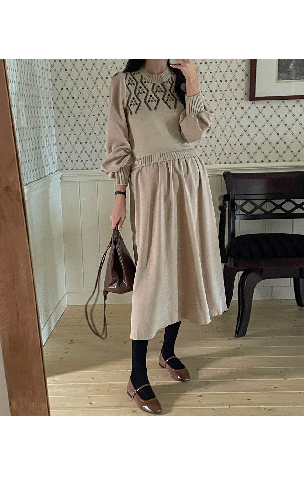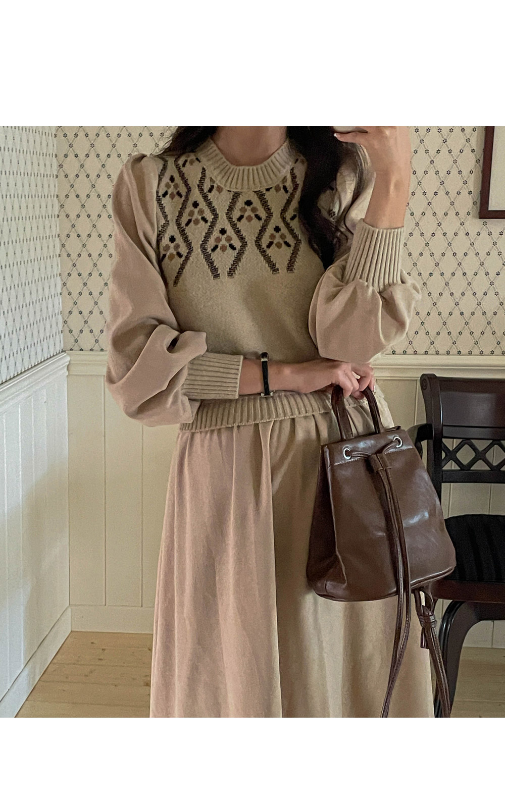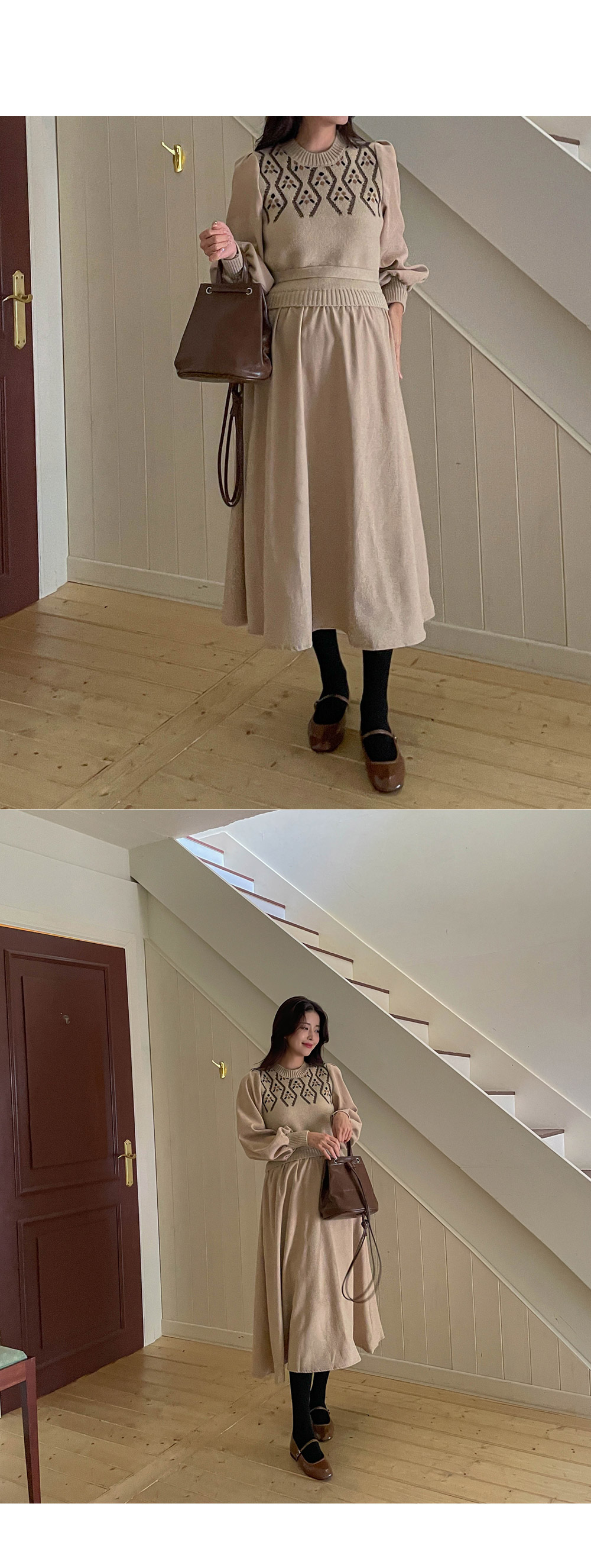 따뜻하고 포근한 무드가 가득한 원피스라