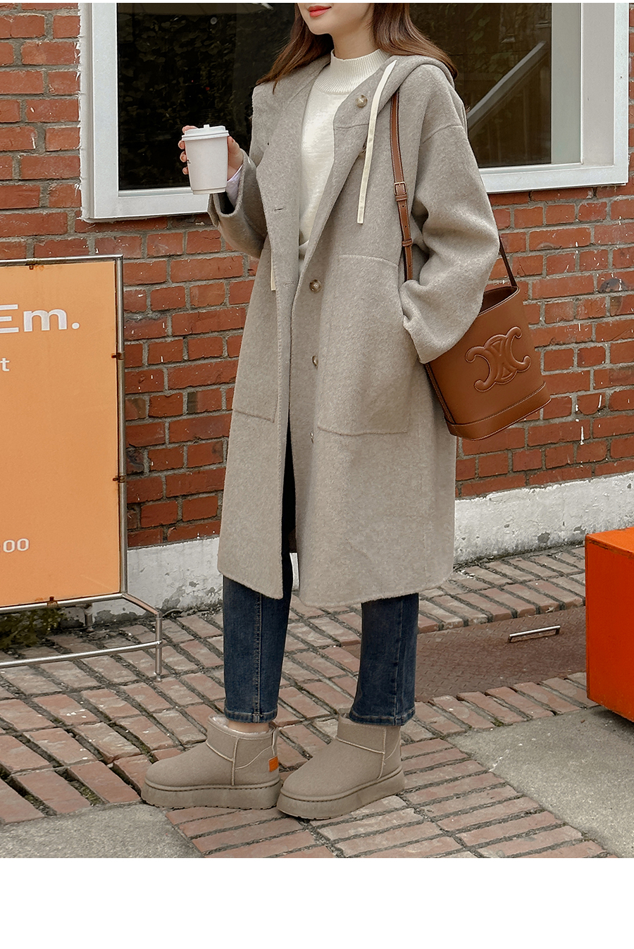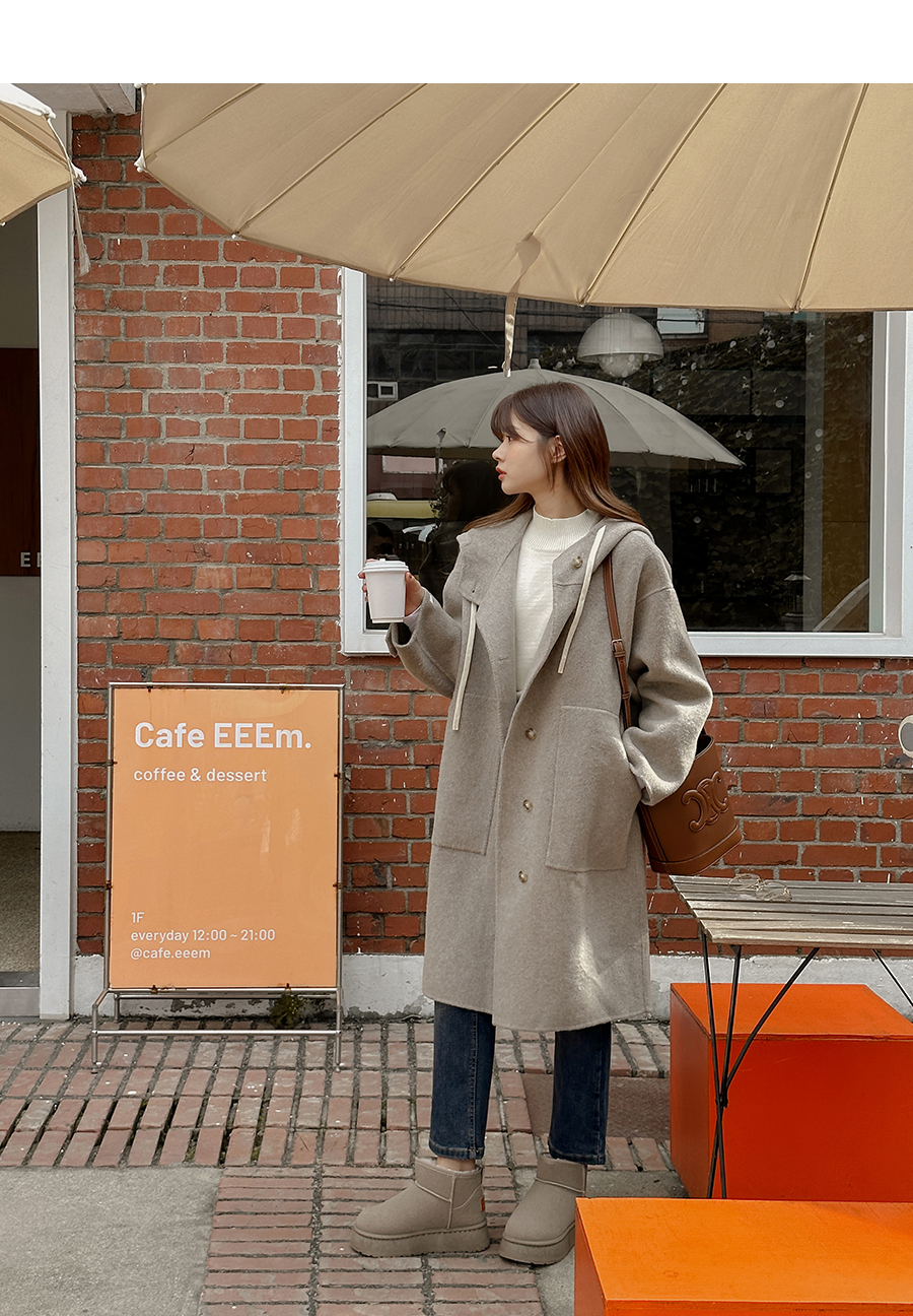 후드에서 내려오는 끈에 포인트를 주었어요