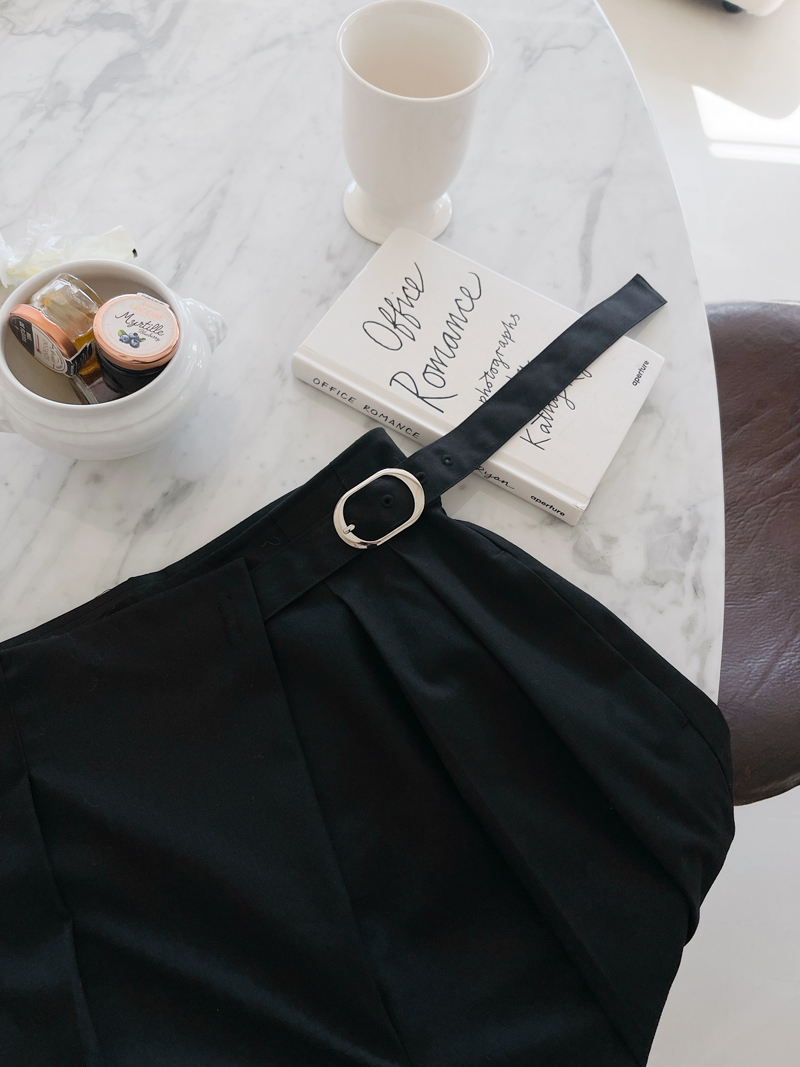 길어 보이는 레그 라인을 연출하고 핀턱 디테일로