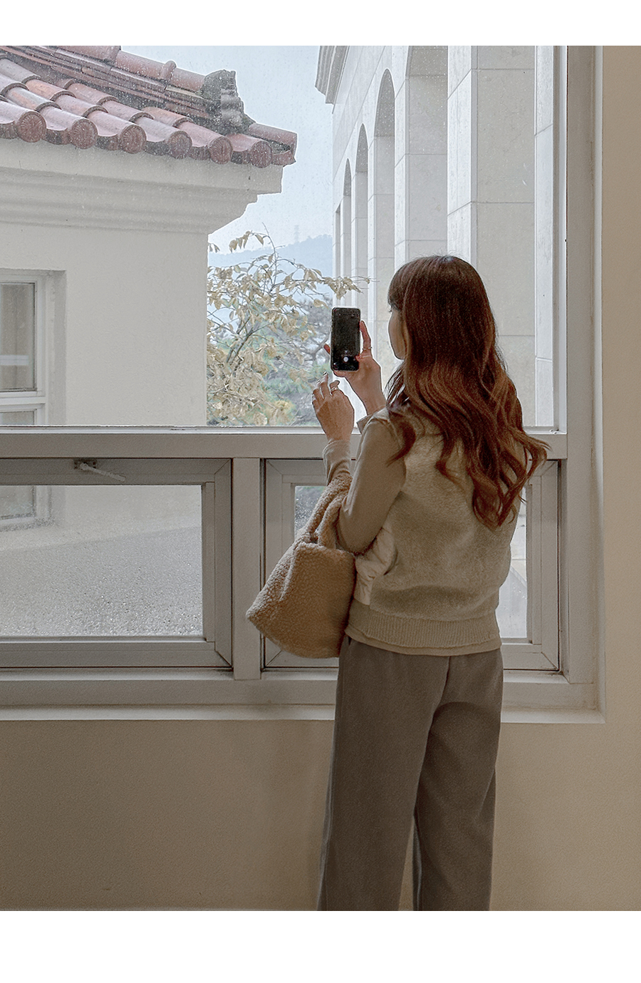 뒤는 폭닥한 울 니트 소재 배색으로