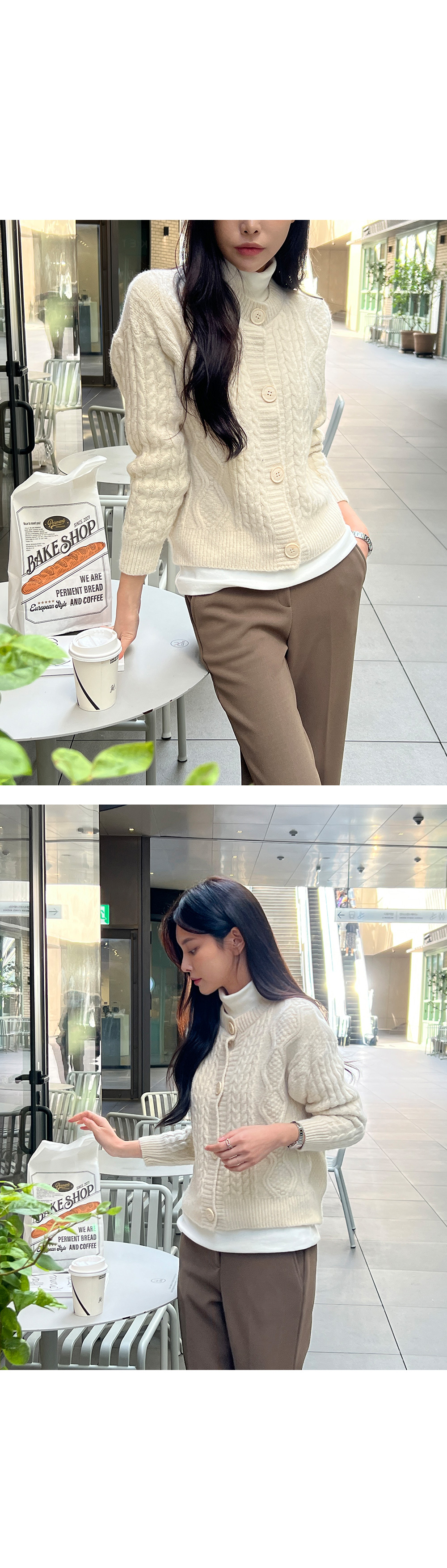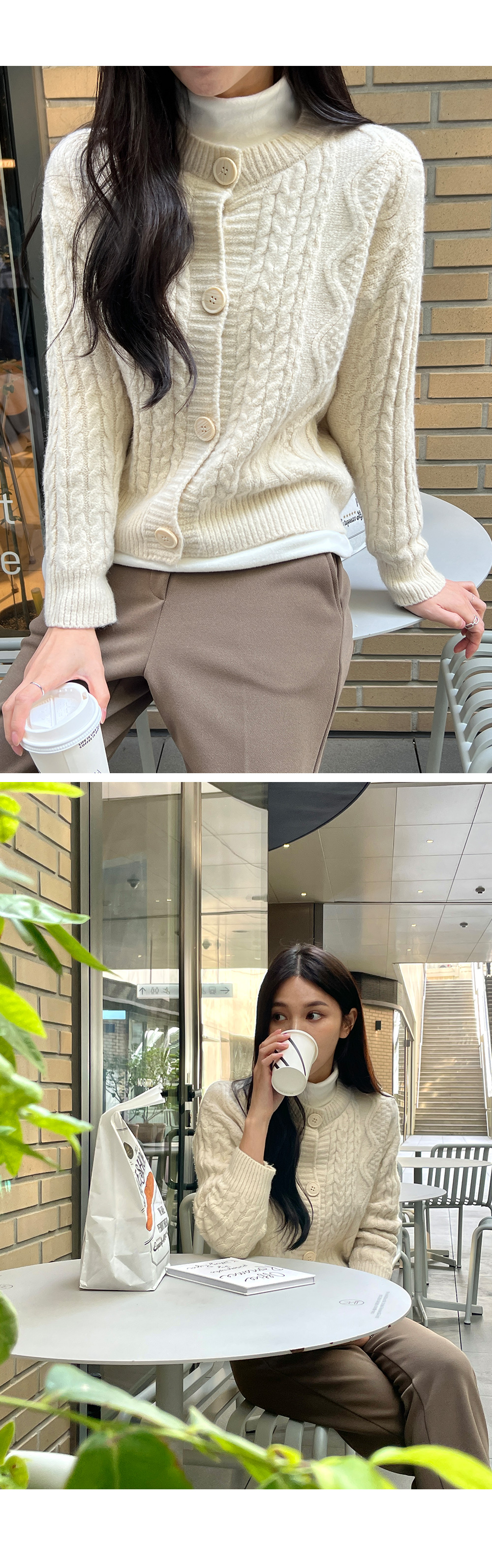꽈배기패턴 라운드넥 니트 가디건 #22402